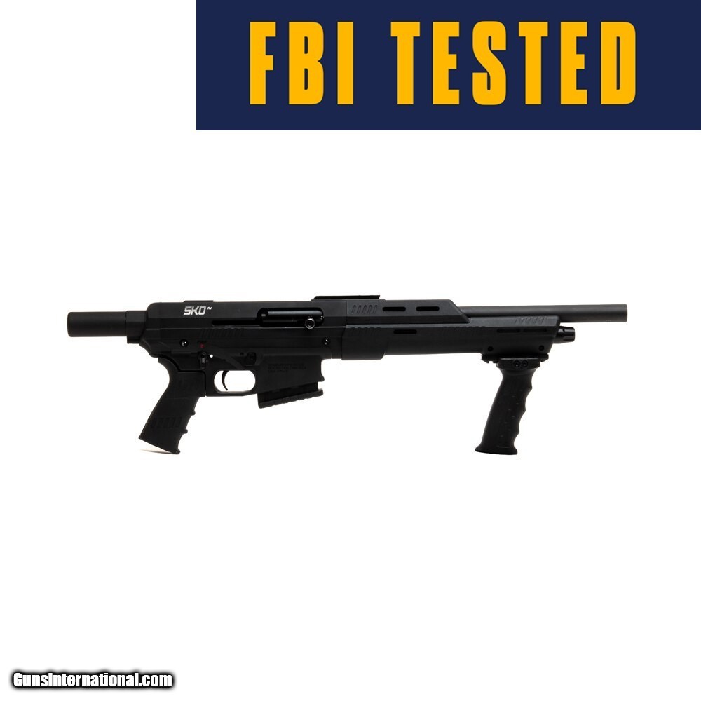 Description: APPROVED BY THE FBI, DON'T CONFUSE THIS MODEL WITH CHEAP IMPORTS Standard Manufacturing’s SKO Mini, proudly made in the USA, offers superior firepower due to its fast semi-auto action and quick interchange magazines. It possesses the most reliable gas operated system available with smooth and flawless operation across a variety of loads. And even has bolt hold open after last round. Classified as an "other" firearm by the ATF, the SKO Mini is the smallest firearm of its kind on the market. It offers superior reliability because it is built on the time proven SKO and SKO Shorty platform. Machined from 7075 aircraft grade aluminum with the latest technology in CNC machining, then Mil-Spec hard anodized, the SKO Mini is both lightweight and durable. Internal components are salt bath nitride coated for optimum lubricity. Notable features include an ambidextrous safety, familiar AR-style controls for an easy transition to this platform, and a threaded muzzle to accept a variety of choke tubes, door breachers, and accessories. The length is 27" and has a 14 3/4” barrel made from 4140 steel that accepts both 2 ¾” and 3” shot shells; which can be loaded in the included 2 round magazine with optional 2, 5, or 10 round magazines available. **PLEASE NOTE: This item MUST be shipped to Licensed Firearms Dealer. We will contact you for a copy of the FFL that you would like to use to transfer this firearm. ** Specs: