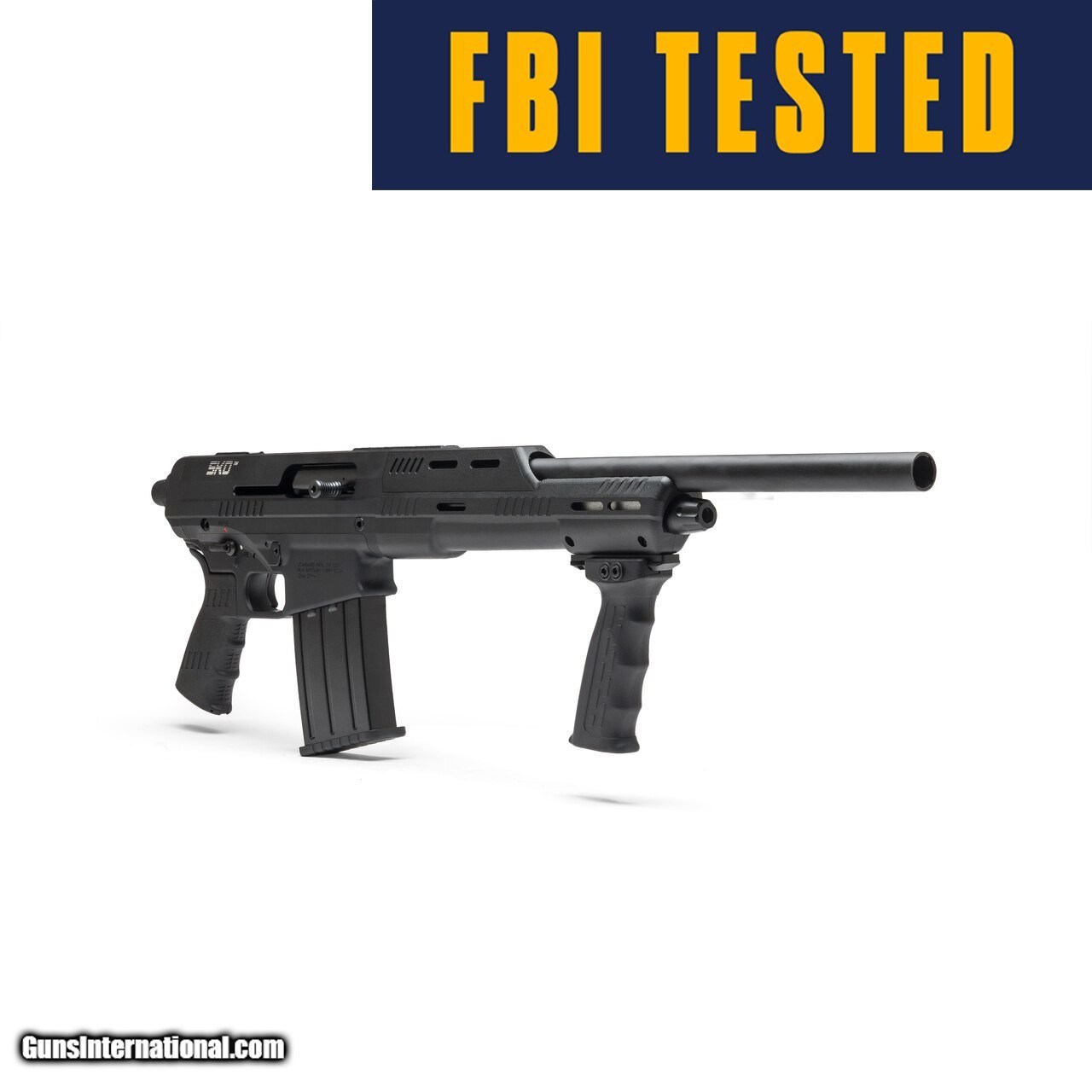 Description: THE ONLY SEMI-AUTOMATIC SHOTGUN APPROVED BY THE FBI! DO NOT CONFUSE THIS GUN WITH CHEAP IMPORTS. Standard Manufacturing’s SKO Shorty, proudly made in the USA, offers superior firepower due to its fast semi-auto action and quick interchange magazines. It possesses the most reliable gas operated system available with smooth and flawless operation across a variety of loads. And even has bolt hold open after last round. Machined from 7075 aircraft grade aluminum with the latest technology in CNC machining, then Mil-Spec hard anodized, the SKO Shorty is both lightweight and durable. Internal components are salt bath nitride coated for optimum lubricity. Notable features include an ambidextrous safety, familiar AR-style controls for an easy transition to this platform, and a threaded muzzle to accept a variety of choke tubes, door breachers, and accessories. The length is over 28 3/4" and has an 18 5/8” barrel made from 4140 steel that accepts both 2 ¾” and 3” shot shells; which can be loaded in the included 5 round magazine with optional 2, 5, or 10 round magazines available. **PLEASE NOTE: This item MUST be shipped to Licensed Firearms Dealer. We will contact you for a copy of the FFL that you would like to use to transfer this firearm. ** Specs: Caliber: 12 Gauge Overall Length: 28 ¾” Weight (w/out mag): 7.14 lbs. Barrel: 18 7/8”, chambered for 2 ¾” and 3” shells Chokes: Tru-Choke thread pattern Capacity: 5 round magazine; optional 2, 5, 10 round mags available Action: Gas operated semi-automatic Material: Receivers machined from aircraft grade 7075 aluminum; Mil-Spec hard anodized Controls: Ambidextrous Safety, AR-style mag and bolt release Grip: Polymer; accepts most AR-style grips Forend: Composite material with slots for MOE and bolt on rails; INCLUDES forward vertical grip Buttstock conversion kit available: With Buttstock click here, Without Buttstock click here THE SKO SHORTY IS UNAVAILABLE TO PURCHASE IN THE STATES OF NEW YORK AND CALIFORNIA. YOU NEED TO BE AT LEAST 21 YEARS OF AGE TO OWN THIS WEAPON. $50.00 Shipping SOLD |