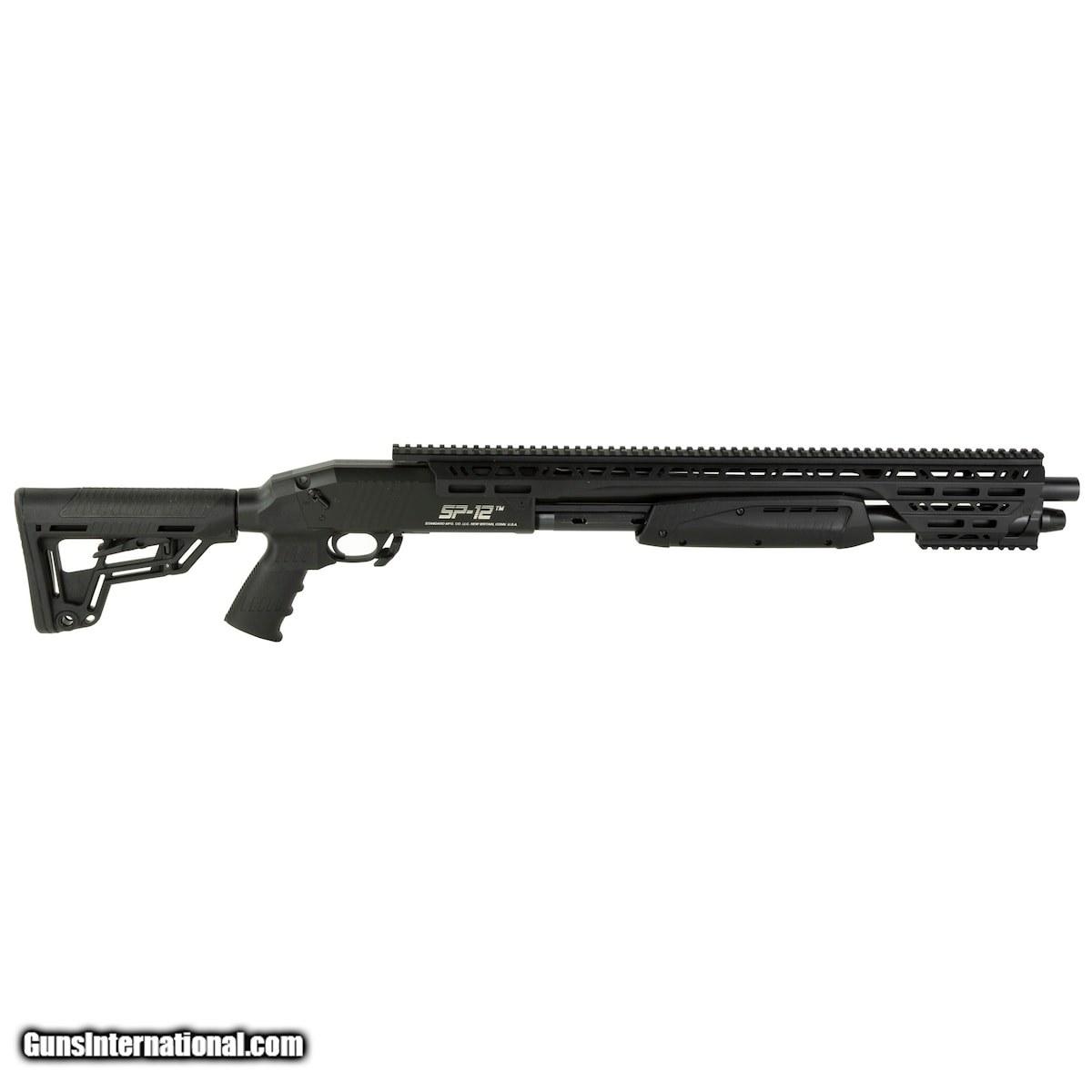Description: Guns Listing ID: 493178 The new SP12 is the only truly ambidextrous pump action shotgun on the market, all controls are equally accessed from either side while shells are fed and ejected through the bottom of the receiver. The SP12 features a full length M-LOK mounting system, aluminum receiver machined from a billet of aircraft grade 7075 aluminum, and a threaded barrel which is designed to accept choke tubes and other accessories. - CHAMBER 12GA. 3\" - MAGAZINE TUBE 7rd capacity - CHOKE Threaded Cylinder Bore - HANDGUARD M-LOK - STOCK Collapsible w/ Pistol Grip SOLD Manufacturer: STANDARD MFG. Model: SP-12 Condition: new Barrels: 18.5" BARREL Gauge Info: 12 GA. Finish: BLACK ANODIZED |