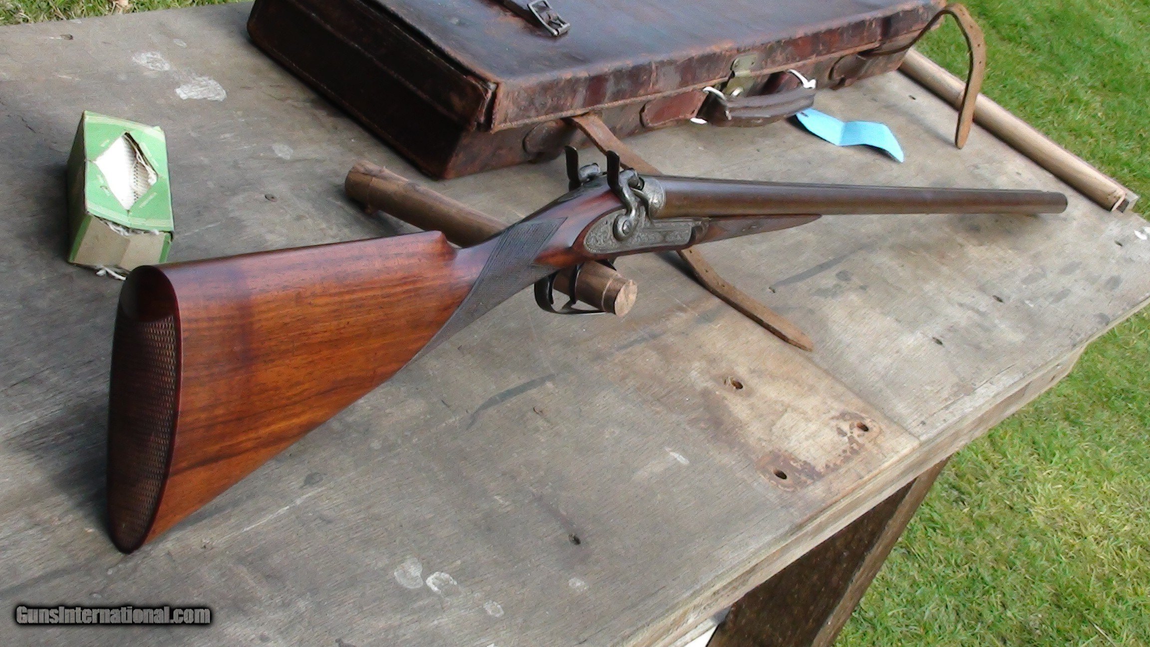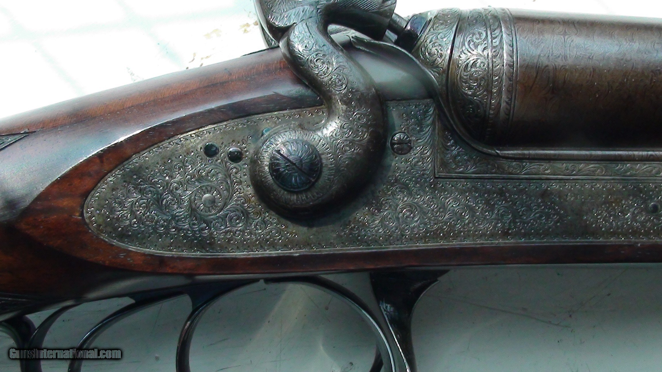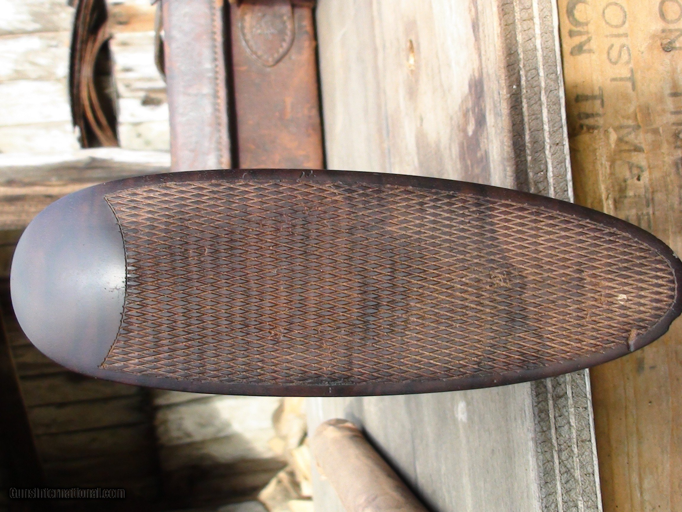 Description: Stephen Grant s/n 2768. Very good condition , 30" Damascus barrels - re browned, gun was re-jointed and re London prooved 2 1/2 in 2007. New pins fitted where needed, some parts re-blacked and a light wood re-finish and stored ever since then. Barrels 30" measure 0.24 & 0.24 walls, cylinder & cylinder - gun was made before chokes. Purdey thumb lever. Stock measurements - bend 1 3/8 x 2 1/16, LOP 14 1/2, Slight right hand cast. Last gun made by Grant in 1869, see "British guns" Nigel Brown volume 1 page 109 SOLD Antique: Yes Manufacturer: Grant Model: Hammer Gun Serial Number: 2768 Bore: 12 see proof marks Chambers: 2 1/2 Ejectors: NO Condition: good Metal Condition: good Wood Condition: good Bore Condition: good Action: s x s Triggers: Double Stock: straight Stock Dimensions: 14 1/2 Stock Drop: 1 3/8 x 2 1/16 Stock Comb: 1 3/8 Stock Heel: 2 1/16 Stock Cast: Slight RH Fore End: Splinter Butt Pad: no LOP: 14 1/2 Rib: Game Finish: Oil Weight: 6 3/4 Sights: bead Manufacture Date: 1869 Chokes: no Engraving: Small scroll Case: none original Item Location: U.K Proof:Nitro: Nitro Minimum Wall Thickness Left: 0.24 Minimum Wall Thickness Right: 0.24 |