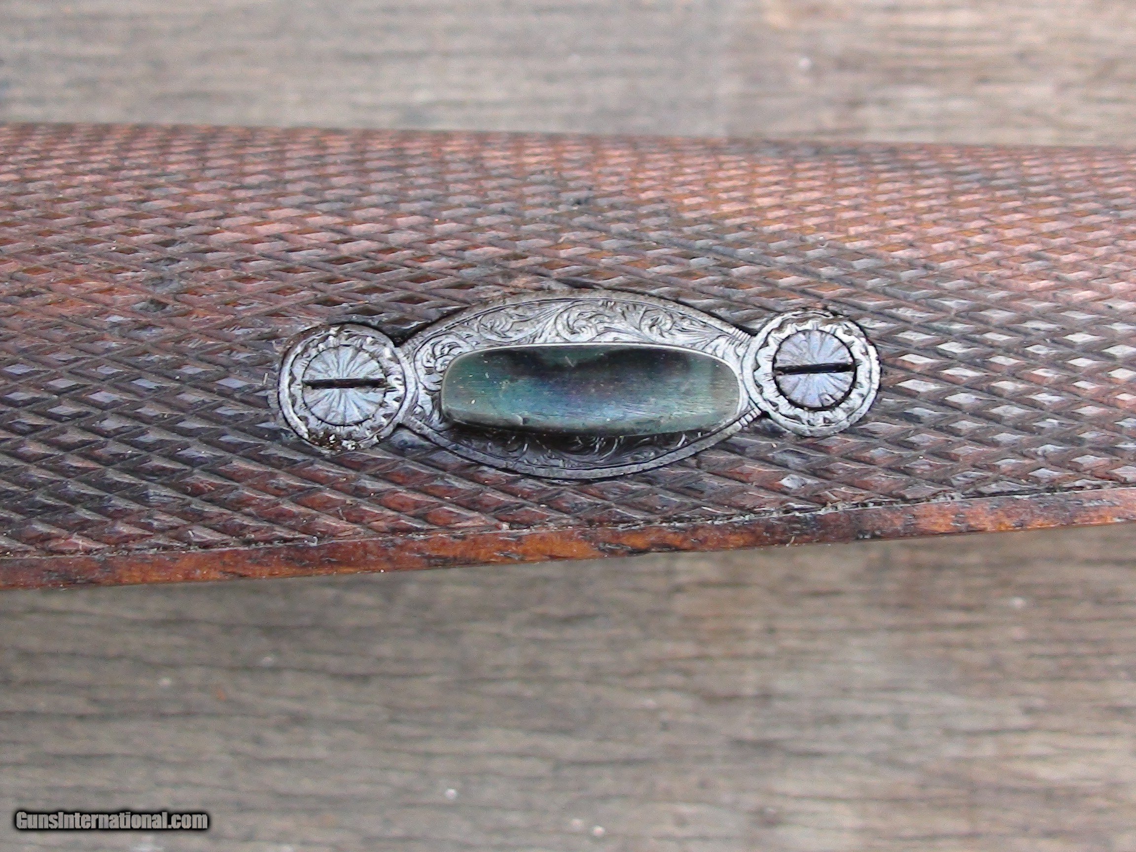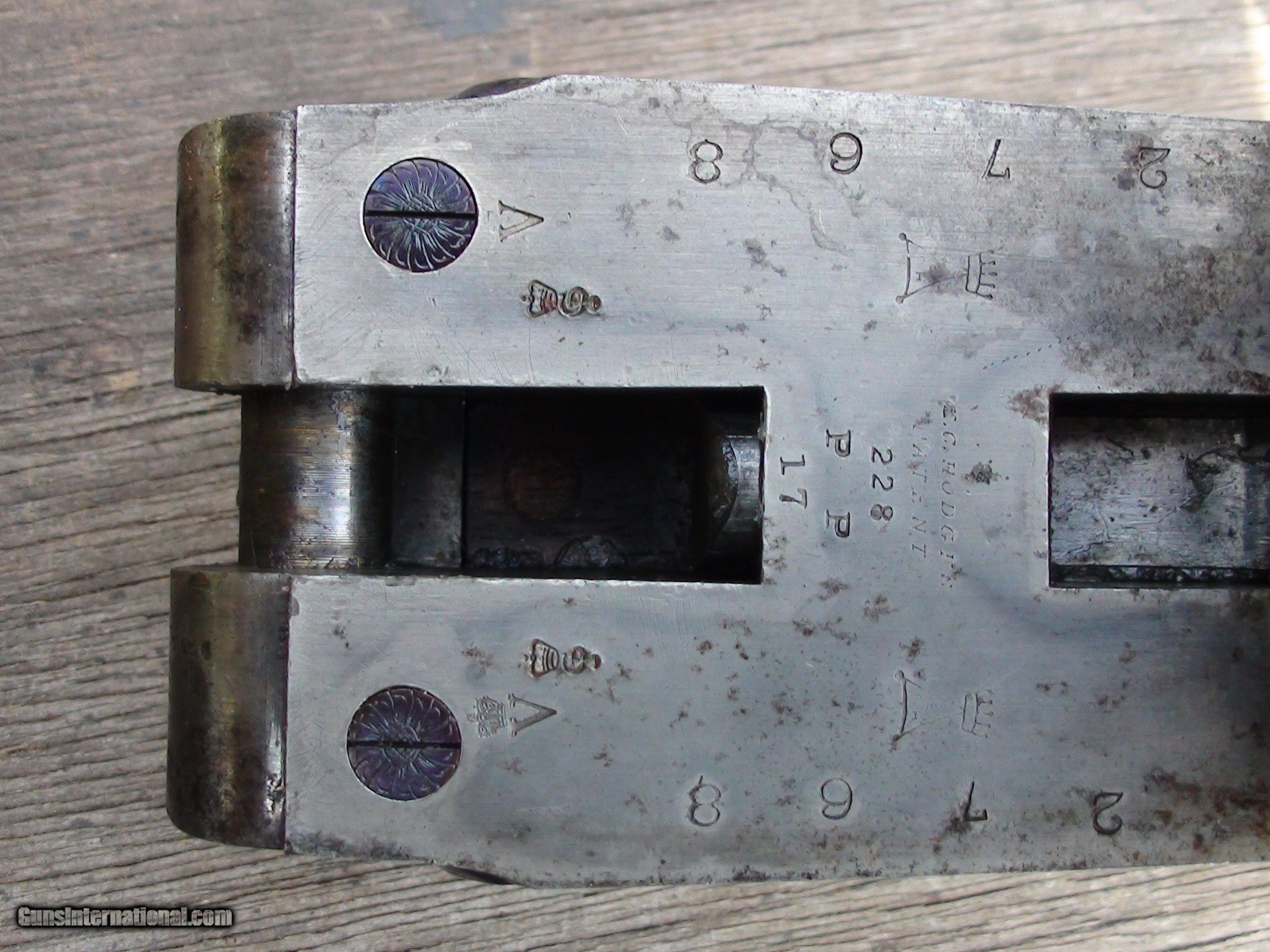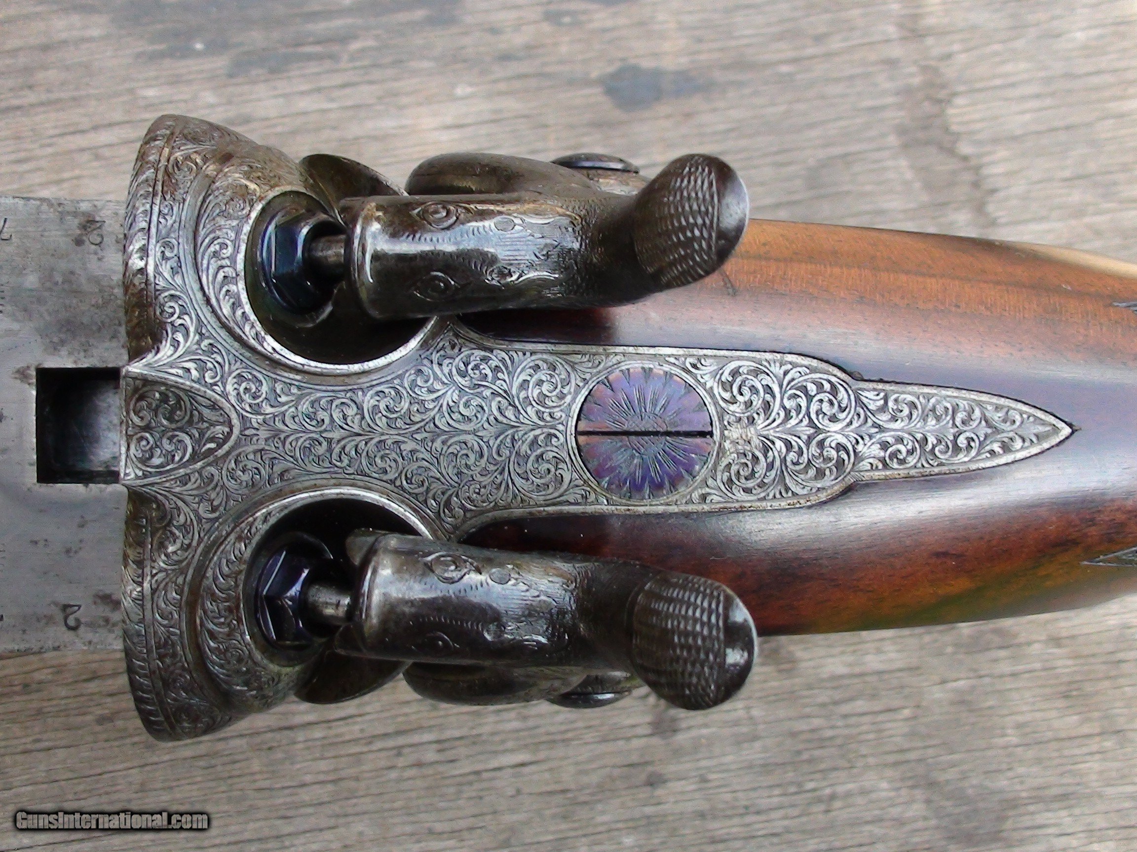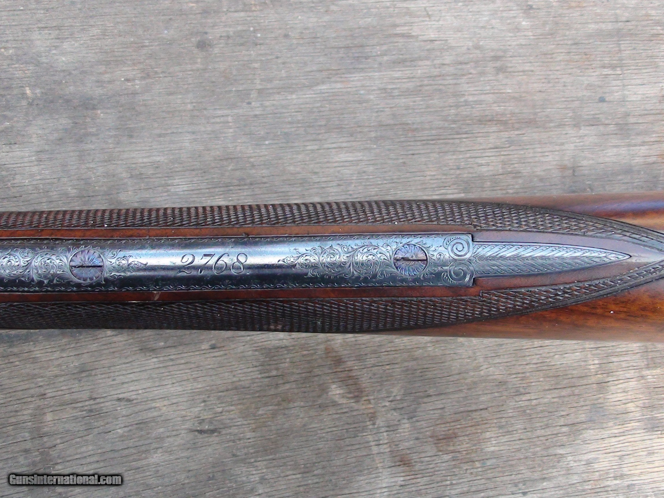 Description: Stephen Grant s/n 2768. Very good condition , 30" Damascus barrels - re browned, gun was re-jointed and re London prooved 2 1/2 in 2007. New pins fitted where needed, some parts re-blacked and a light wood re-finish and stored ever since then. Barrels 30" measure 0.24 & 0.24 walls, cylinder & cylinder - gun was made before chokes. Purdey thumb lever. Stock measurements - bend 1 3/8 x 2 1/16, LOP 14 1/2, Slight right hand cast. Last gun made by Grant in 1869, see "British guns" Nigel Brown volume 1 page 109 SOLD Antique: Yes Manufacturer: Grant Model: Hammer Gun Serial Number: 2768 Bore: 12 see proof marks Chambers: 2 1/2 Ejectors: NO Condition: good Metal Condition: good Wood Condition: good Bore Condition: good Action: s x s Triggers: Double Stock: straight Stock Dimensions: 14 1/2 Stock Drop: 1 3/8 x 2 1/16 Stock Comb: 1 3/8 Stock Heel: 2 1/16 Stock Cast: Slight RH Fore End: Splinter Butt Pad: no LOP: 14 1/2 Rib: Game Finish: Oil Weight: 6 3/4 Sights: bead Manufacture Date: 1869 Chokes: no Engraving: Small scroll Case: none original Item Location: U.K Proof:Nitro: Nitro Minimum Wall Thickness Left: 0.24 Minimum Wall Thickness Right: 0.24 |