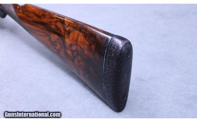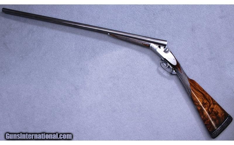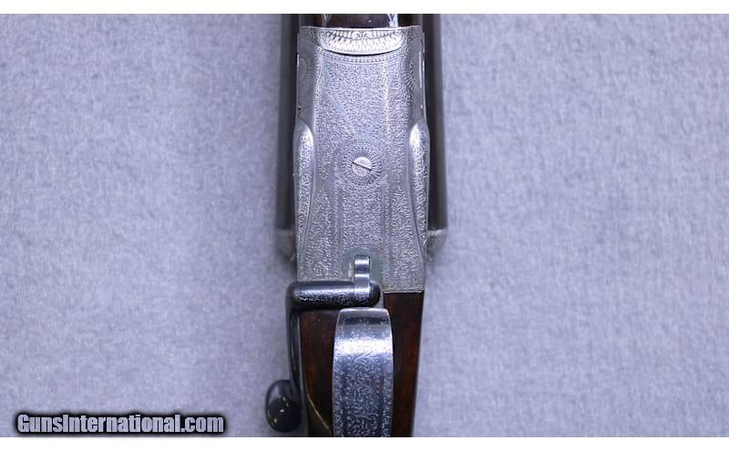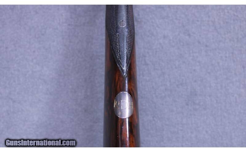 Description: Stephen Grant & Sons Sidelock Sidelever side by side shotgun chambered in 12 Gauge. 1890 estimated year of manufacture. 30-1/4 inch blued barrels with 2-3/4 inch chambers, ejectors, and fixed chokes that gauge Light Modified and Cylinder. Coin-finished sidelock receiver with fine scroll engraving covering all metal surfaces. Checkered straight (English) walnut stock with spacer and rubber buttpad. Stock escutcheon engraved with initials "RDH". Comes in a leather takedown case with cleaning tools, snap caps, and extra firing pins. 12 Gauge Chambers: 2.75 inch Metal Condition: Very Good with Minor Handling Marks Wood Condition: Refinished Very Good with Minor Handling Marks Bore Condition: Bright and Clear with No Pitting Barrels: 30.25 inch Triggers: Double Stock Dimensions: 14.75 inch LoP (Front Trigger) Sights: Single Bead Front on Concave Solid Rib Chokes: Fixed LtMod / Cyl Item Location: Fort Worth, TX Price: $7,999.99 Contact Seller |