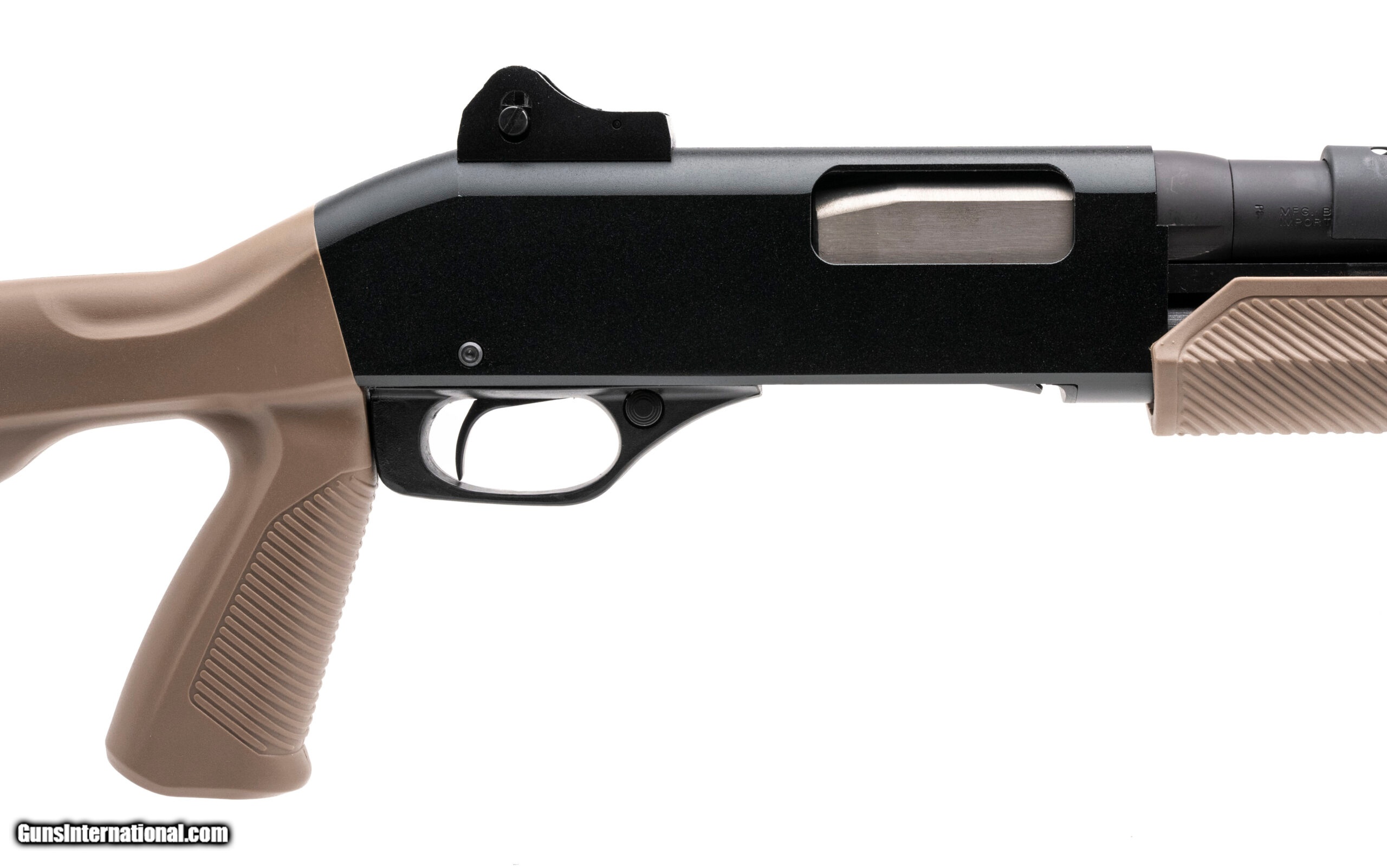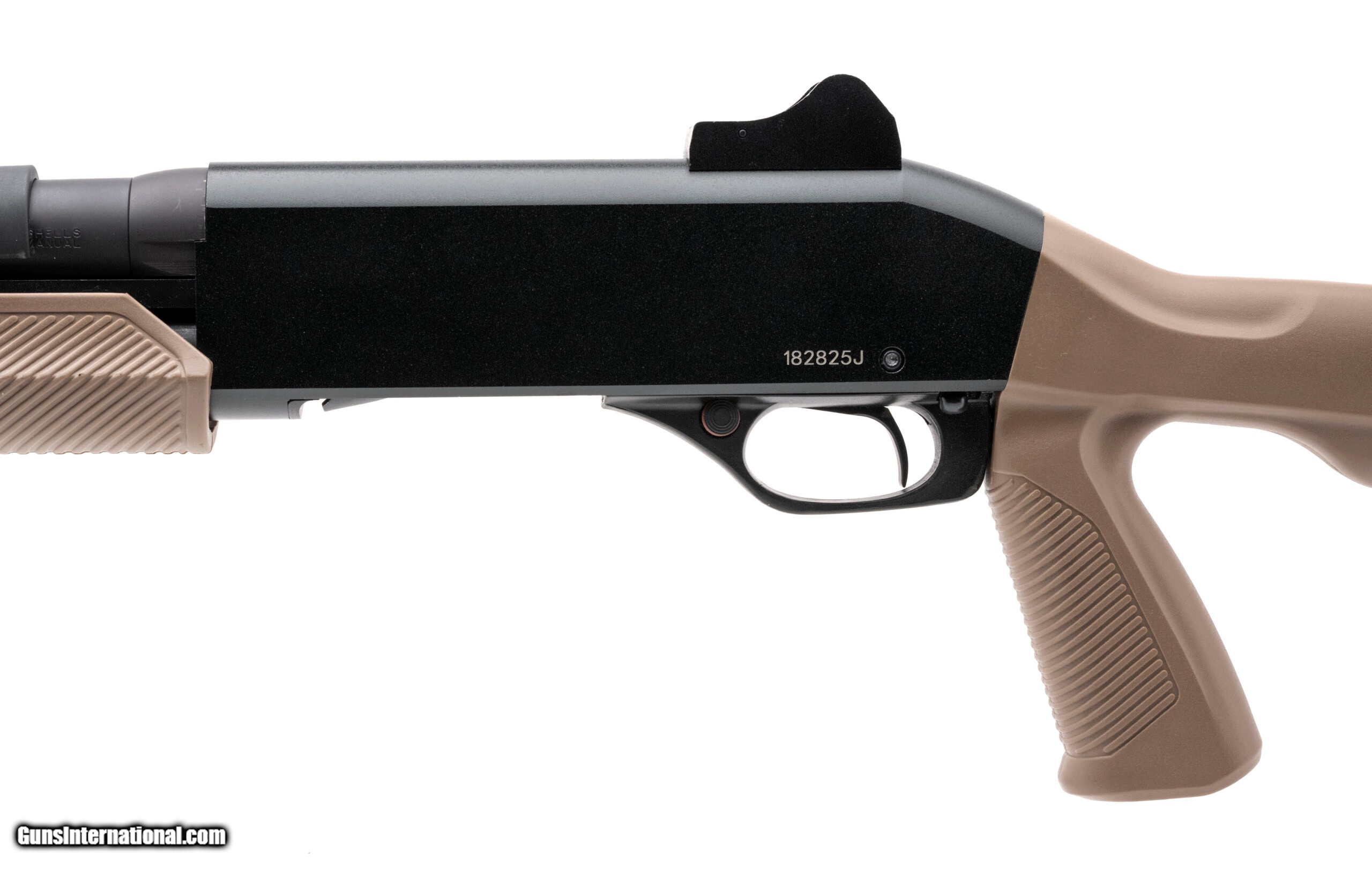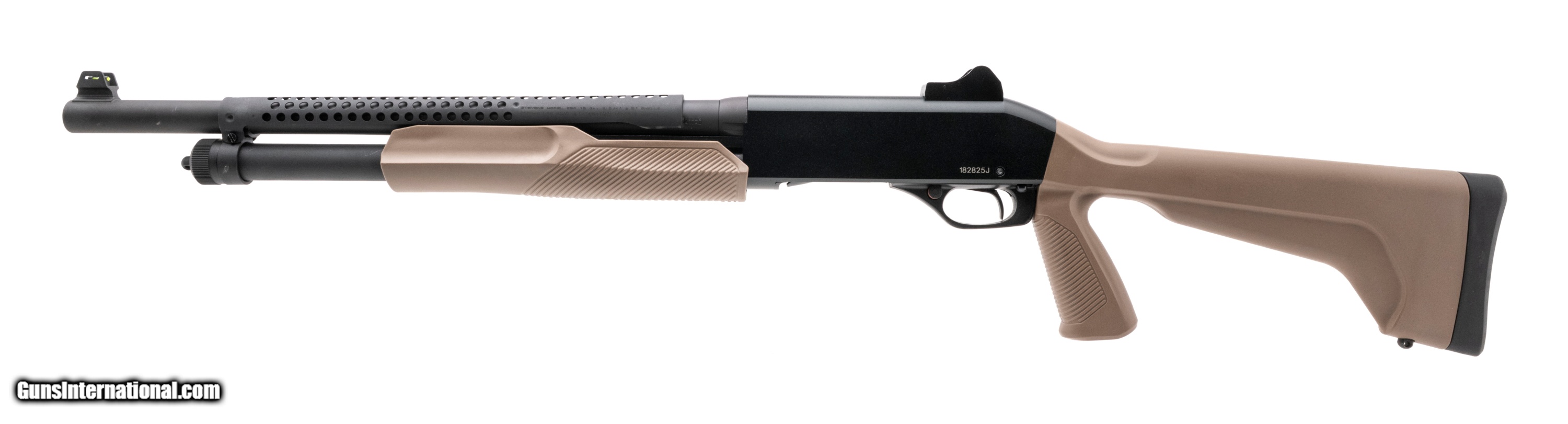 Description: "SN: 182825J. Modern production, 12 GA with 18.5"" barrel w/heat shield. Bore is in very good condition. Pump action home defense shotgun with ghost ring rear and fiber optic front sights. Overall very good condition. SOLD |