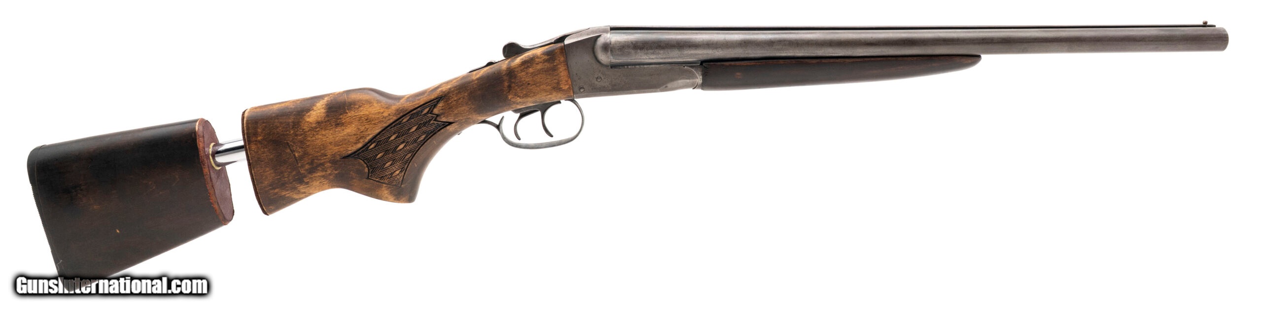 Description: "SN: None. 1960's vintage double 12ga with 19"" barrels. Cut down coach gun with unusual swivel device on the butt. Overall good condition. SOLD |