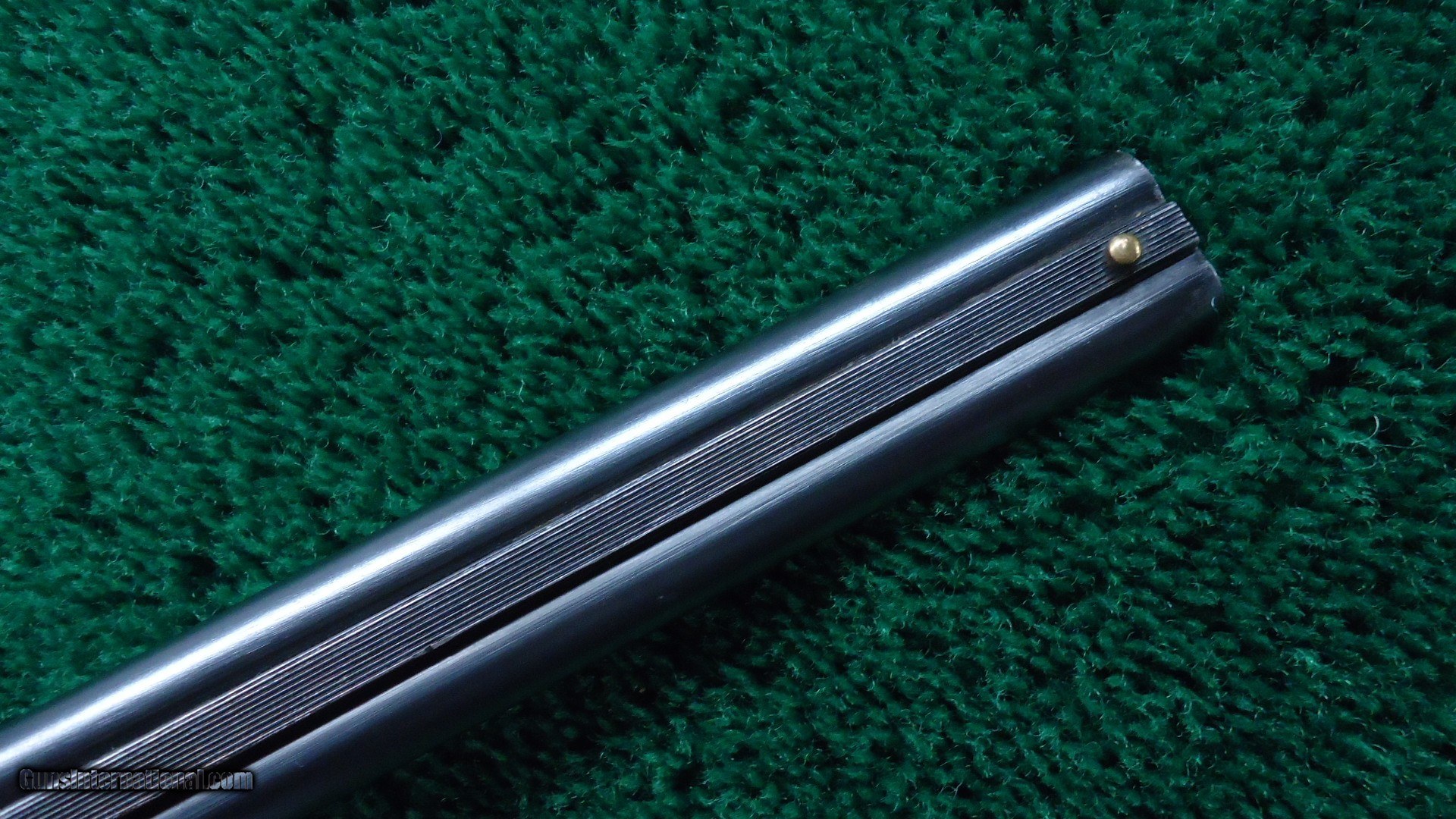 Description: 26 inch barrels with bright excellent bores choked Full & Full. The barrels retain most original blue with light wear at the muzzle and a few light handling marks. The frame retains about 50% muted casehardened color with balance faded to gunmetal gray. Smooth pistolgrip hardwood stock and forend are in solid about good condition with moderate finish flaking on the buttstock and scattered light handling marks overall. Barrels on face and features an automatic safety, double triggers and extractors. Leroy Merz Antique Firearms specializes in antique and vintage Winchesters and other fine American firearms. Since 1965 Mr. Merz has taken part in the world of firearms and has been a contributor to many well known reference books. We have hundreds of additional guns in every price range at our home online. Search for Merz Antiques in google. SOLD Curio/Relic: Yes Shotgun Gauge: .410 Gauge |