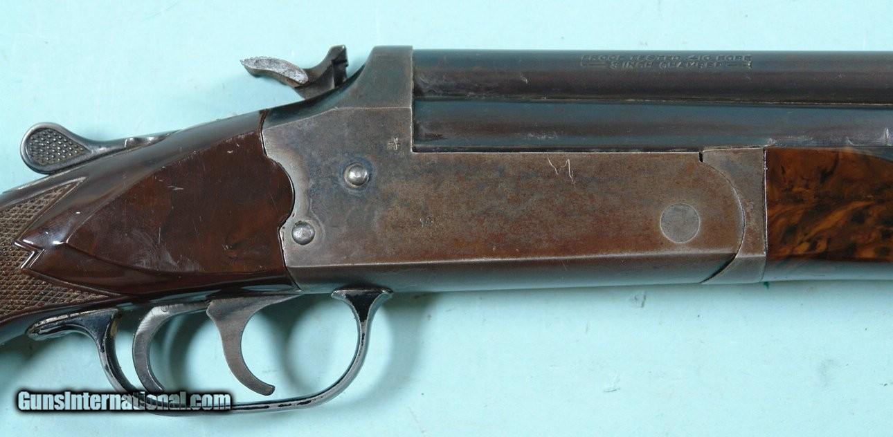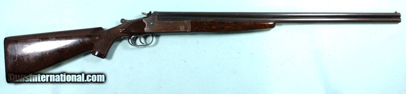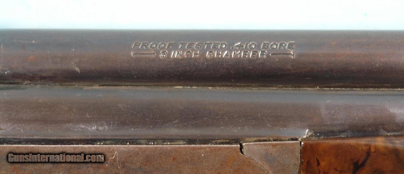 Description: 32896- J. STEVENS & CO. MODEL 240 OVER/UNDER .410 GA. HAMMER SHOTGUN. 26” barrels choked Full and Full. Double triggers, hammers, extractors. Checkered plastic stock and forend. 14” pull. 1 ½”, 2 ½” drop. Excellent all original with approximately 95% of the blue on barrels, and case colors mixed with patina on frame. Very nice overall. Bores excellent and bright. Tight working order. $750. Curio/Relic: Yes Shotgun Gauge: .410 Gauge Price: $750.00 Contact Seller |