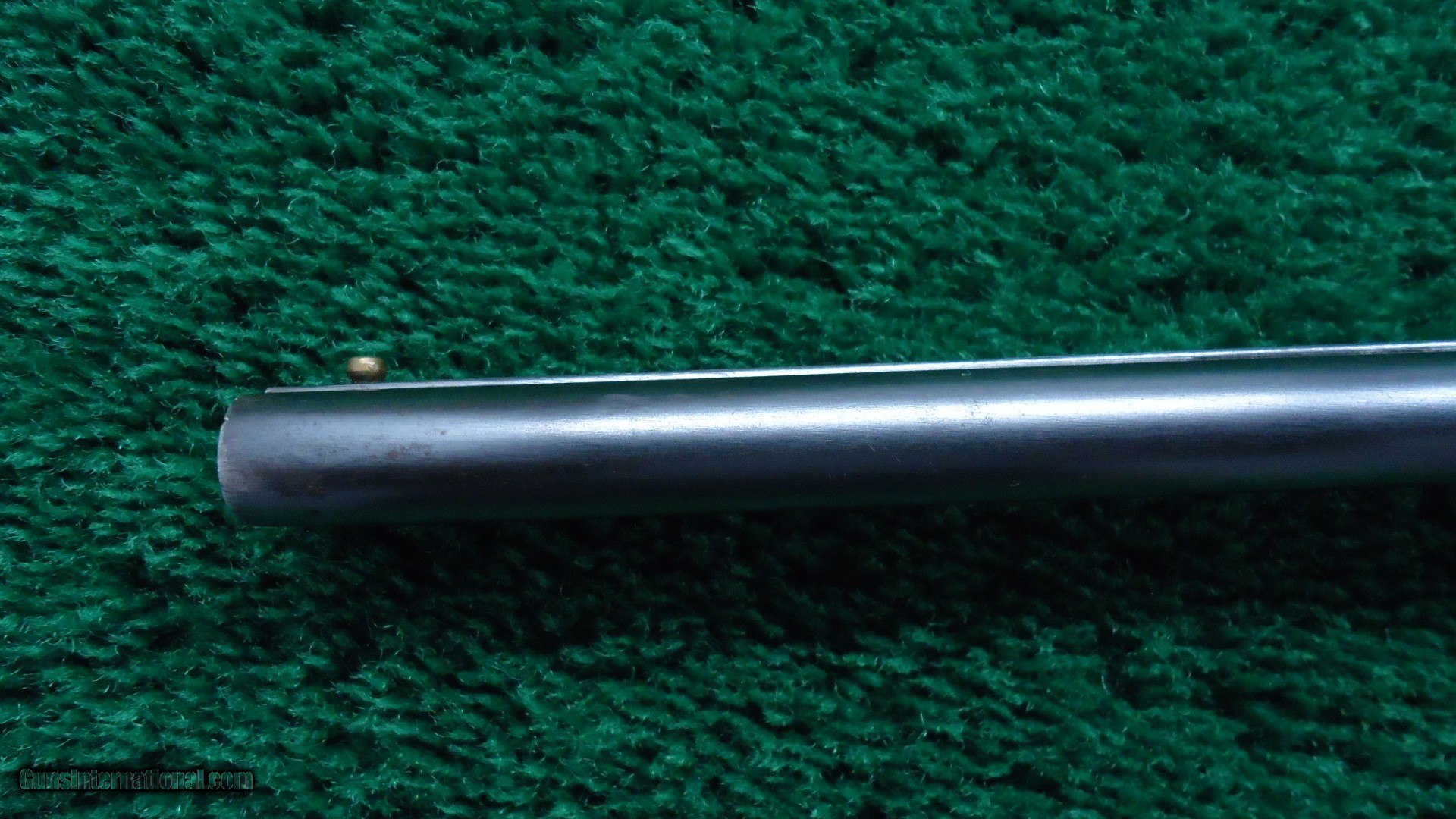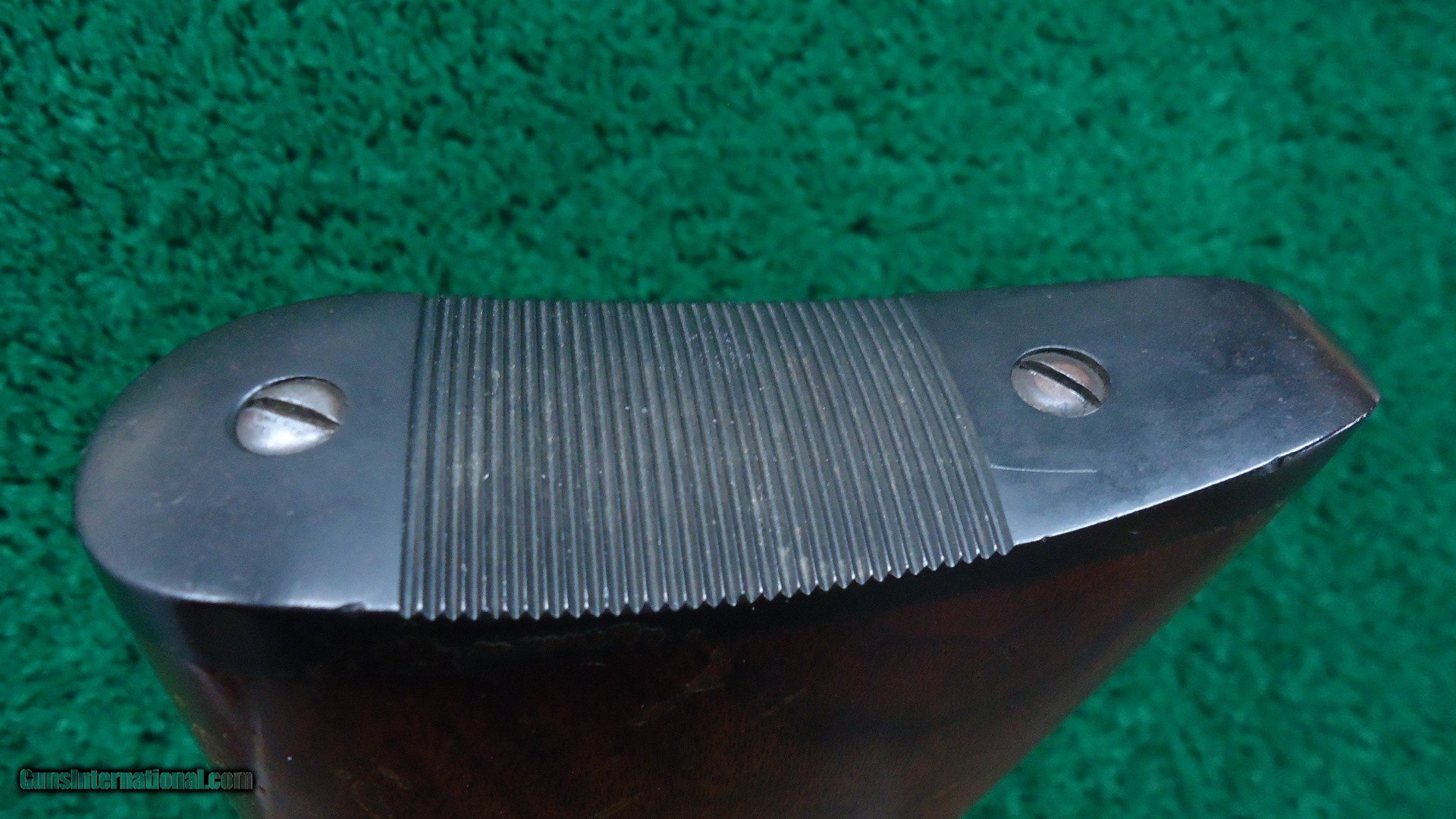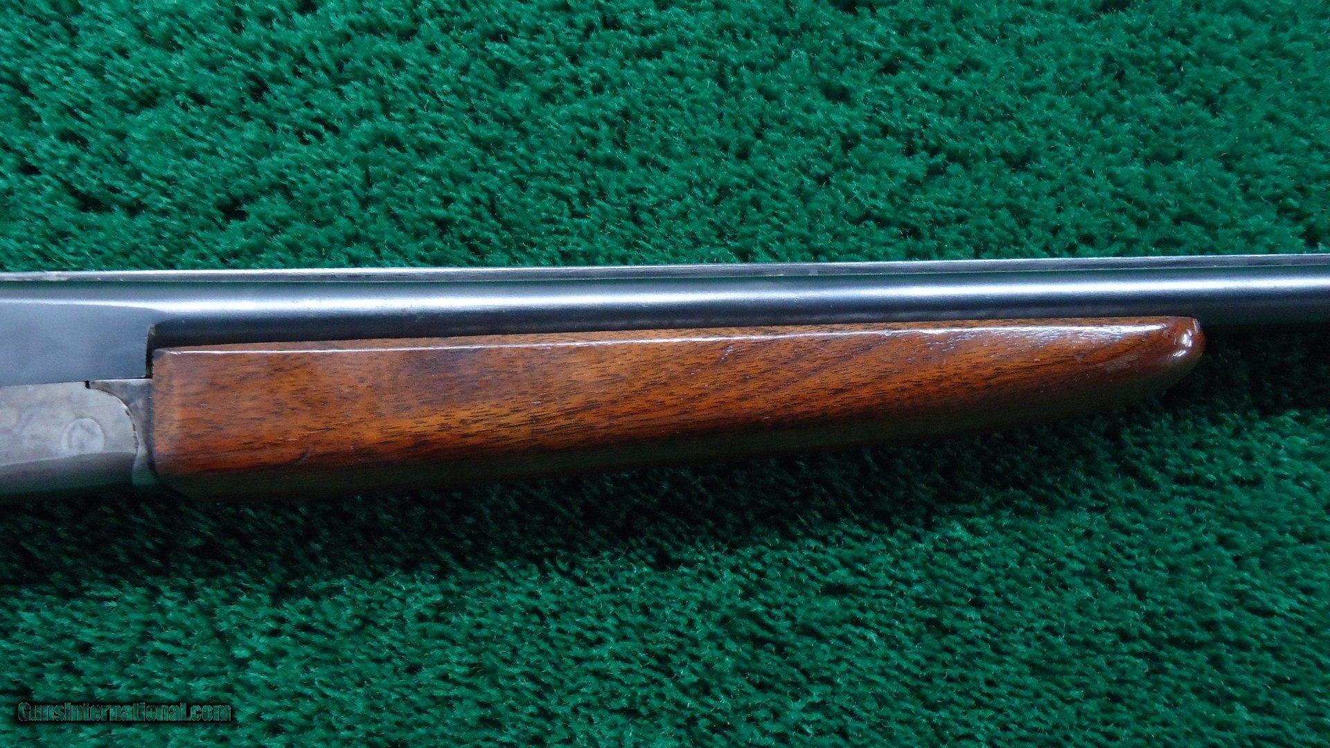 Description: 26 inch barrels with bright excellent bores choked Full & Full. The barrels retain most original blue with light wear at the muzzle and a few light handling marks. The frame retains about 50% muted casehardened color with balance faded to gunmetal gray. Smooth pistolgrip hardwood stock and forend are in solid about good condition with moderate finish flaking on the buttstock and scattered light handling marks overall. Barrels on face and features an automatic safety, double triggers and extractors. Leroy Merz Antique Firearms specializes in antique and vintage Winchesters and other fine American firearms. Since 1965 Mr. Merz has taken part in the world of firearms and has been a contributor to many well known reference books. We have hundreds of additional guns in every price range at our home online. Search for Merz Antiques in google. SOLD Curio/Relic: Yes Shotgun Gauge: .410 Gauge |