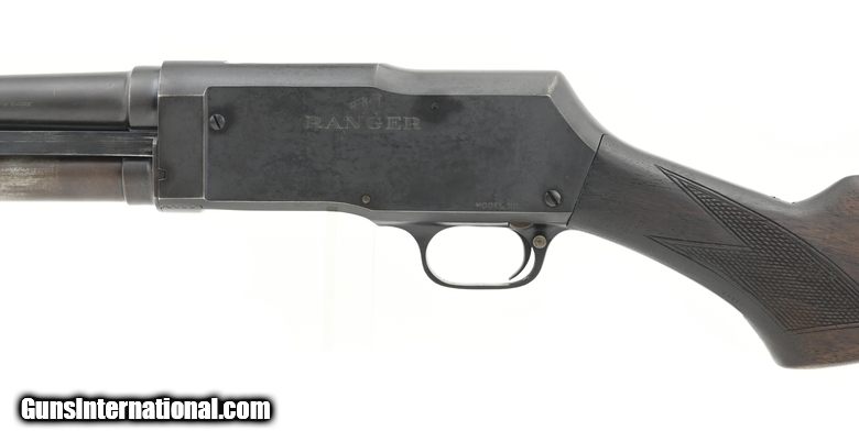 Ranger 30 12 Gauge shotgun. Pump action field gun with 30” barrel. Metal has a thinning blue turning to patina. Good overall condition.