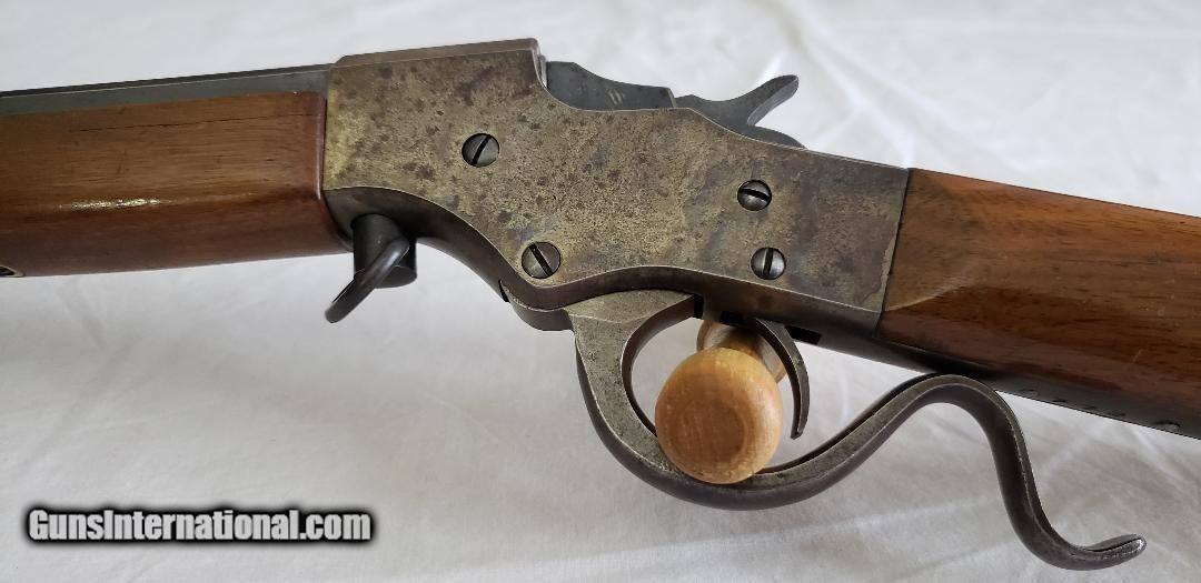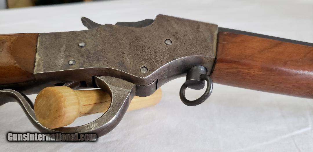 Description: This is a part octagon, part round barreled 22 cal. smoothbore for shot cartridges. It is marked J. Stevens A & T Co. Chicopee Falls, Mass. U.S.A. Pat. Apr. 17, 94. The gun is quite clean, with minimal wear and a decent bore that does show some corrosion. The barrel is without a dovetail provision for a rear sight. It has only a bead at the muzzle end, and is marked for 22-SHOT. It is just kind of a unique little piece that sparks curiosity among gun collectors and enthusiasts alike. Prefer Postal Money Order unless otherwise agreed. Dan at (608) 751-7194 SOLD Curio/Relic: Yes Manufacturer: J. Stevens Model: Favorite Serial Number: W 772 Barrel Length: 22 Bore: smooth Condition: very good Metal Condition: very good Wood Condition: 90% Bore Condition: good Barrel Type: 1/4 oct 3/4 round Action: falling block Triggers: single Butt Pad: original |