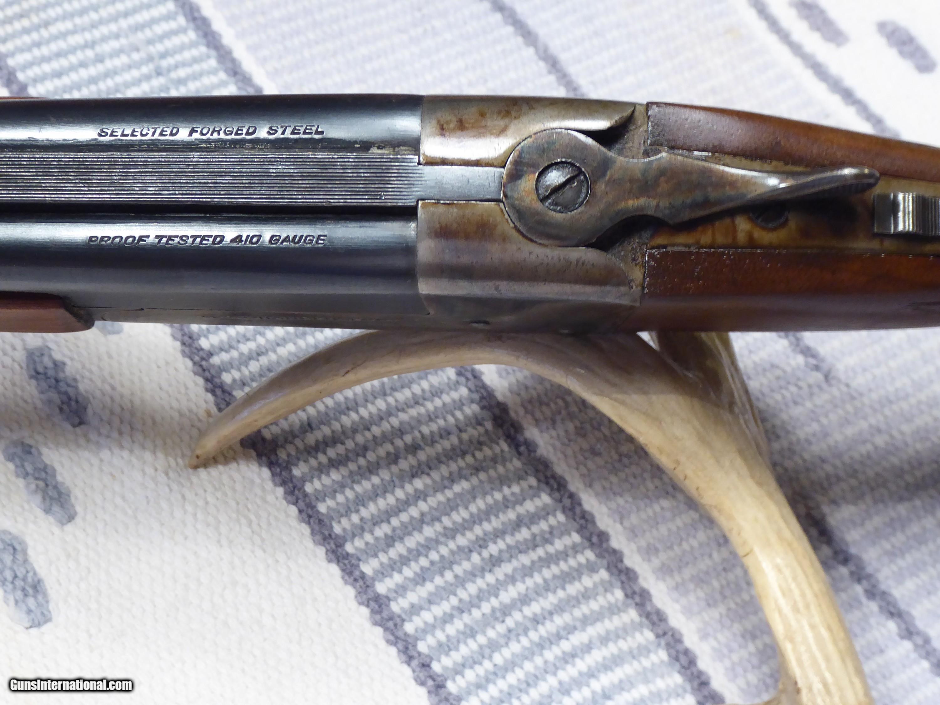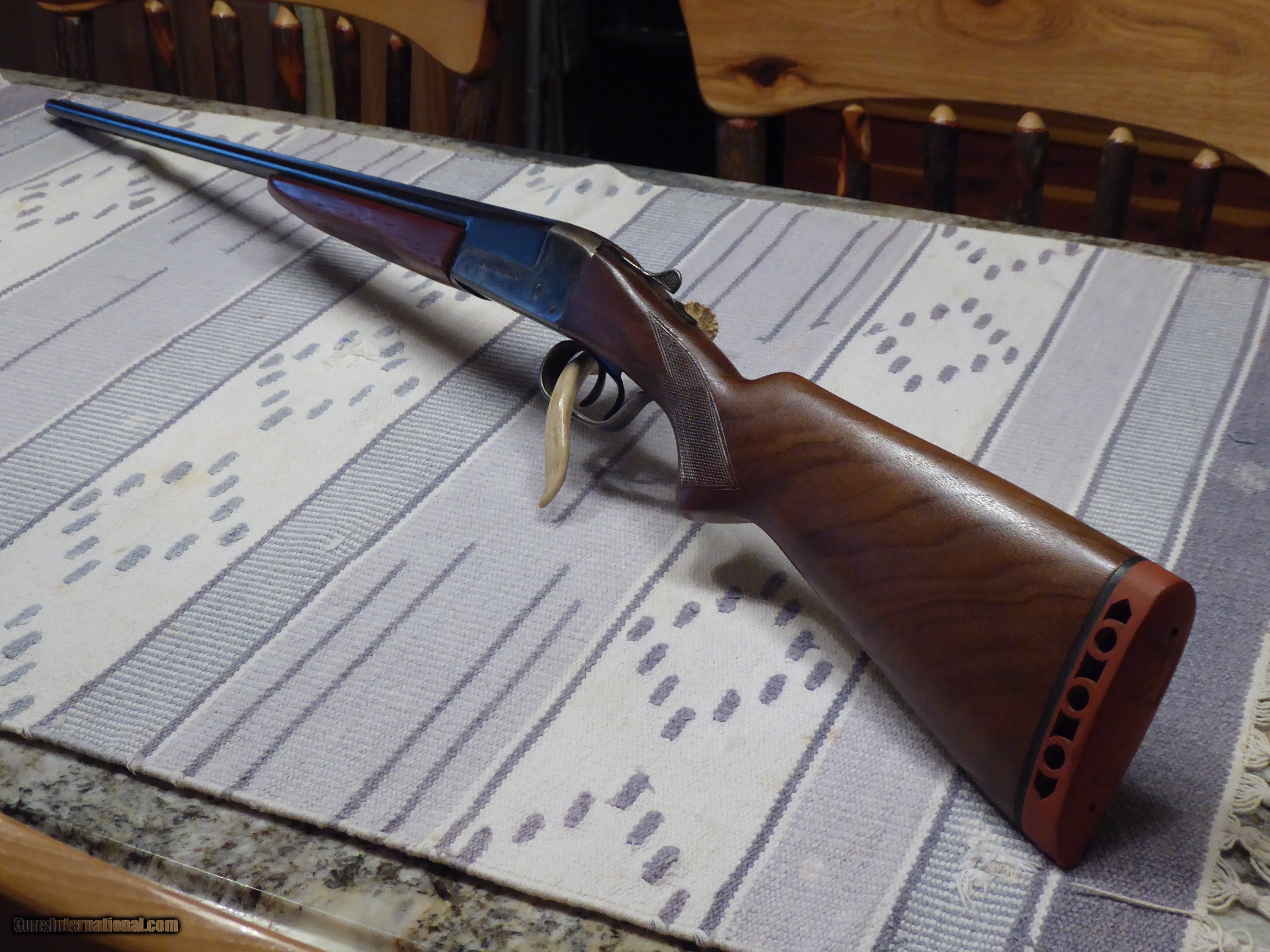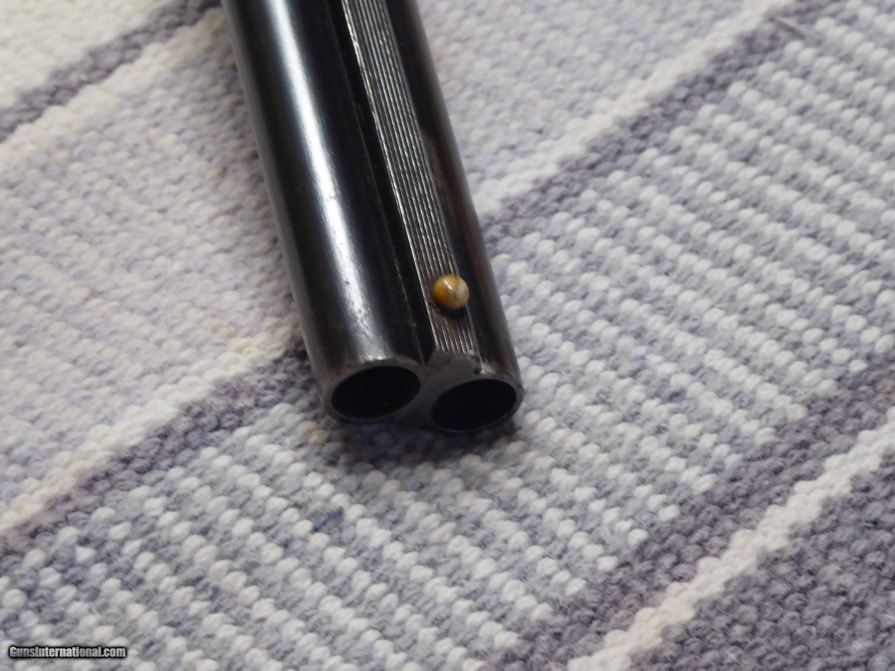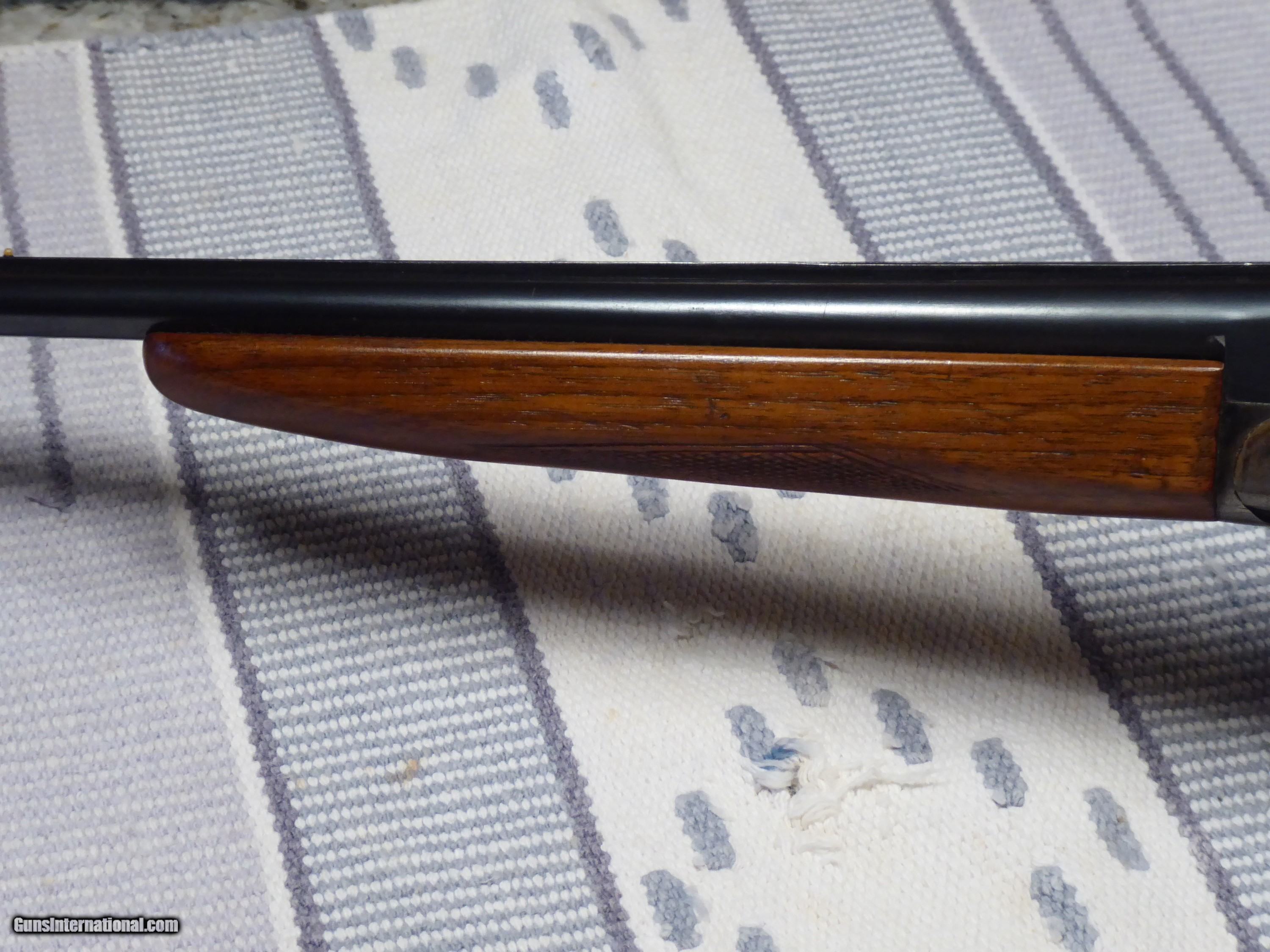 Description: Sears ordered around 200 of these from Stevens as well as 222 from the Hunter Arms Company. These guns exhibit upgraded wood hand checking as well as twin ivory sights and a factory marked recoil pad Barrels are 26" Full & Full chokes with original 3" chambers. Forend has a hairline crack that is not going any further. Whether it is the Stevens or the Hunter Arms Deluxe Models both are a real gem and a prize to own. These guns were finished a level above what the manufacturers offered in their own catalogs. SOLD Curio/Relic: Yes Shotgun Gauge: .410 Gauge Manufacturer: Stevens Model: 5000 Serial Number: C13xxx Barrel Length: 26 Chambers: Factory 3 Ejectors: No Condition: Original Metal Condition: Original Wood Condition: Original Bore Condition: Excellent Triggers: Double Fore End: Splinter Butt Pad: Original Ranger Rib: Solid Finish: Colour Harding & Blue Sights: Twin Ivory Manufacture Date: 1939 Chokes: Fixed Choke Left: Full Choke Right: Full Engraving: Ranger |