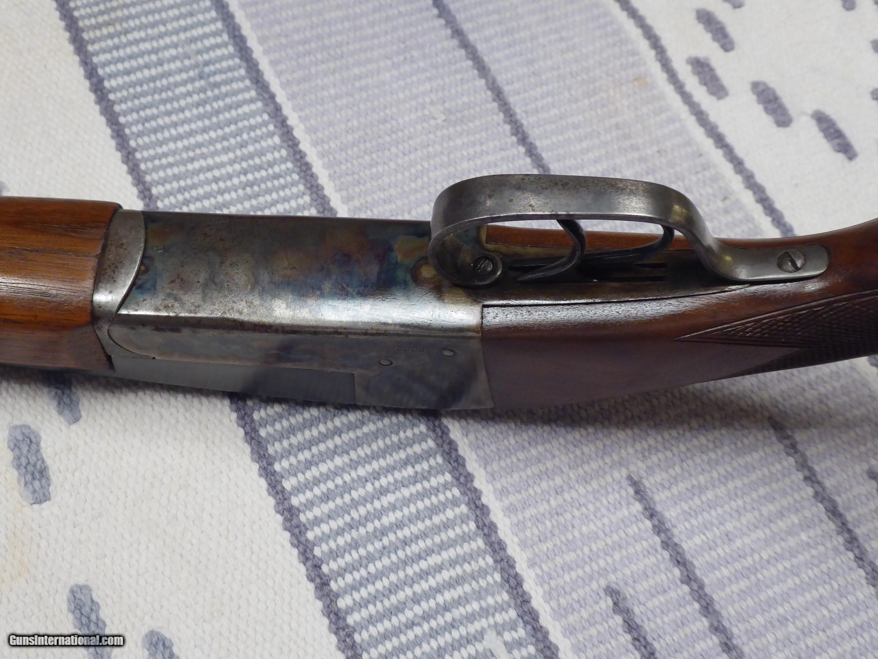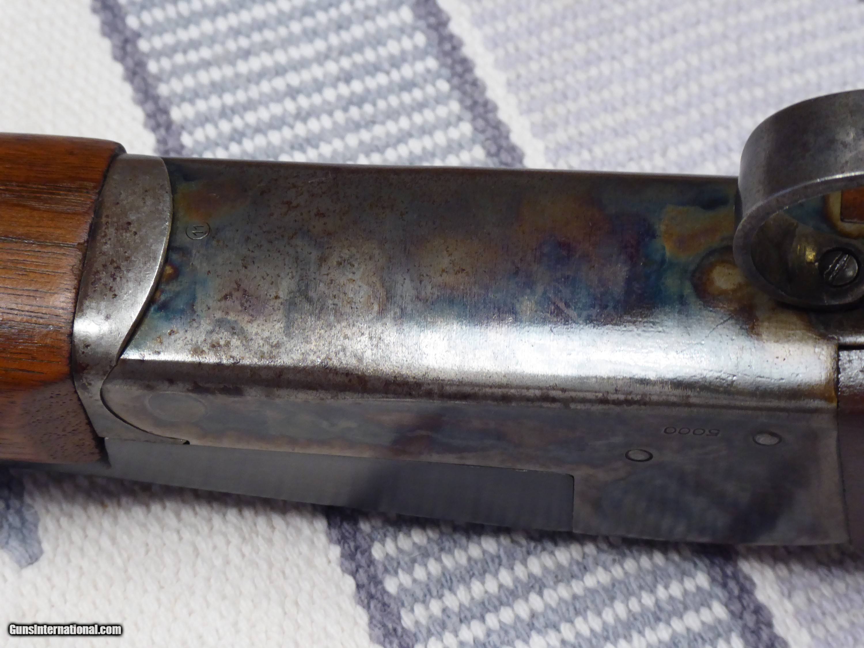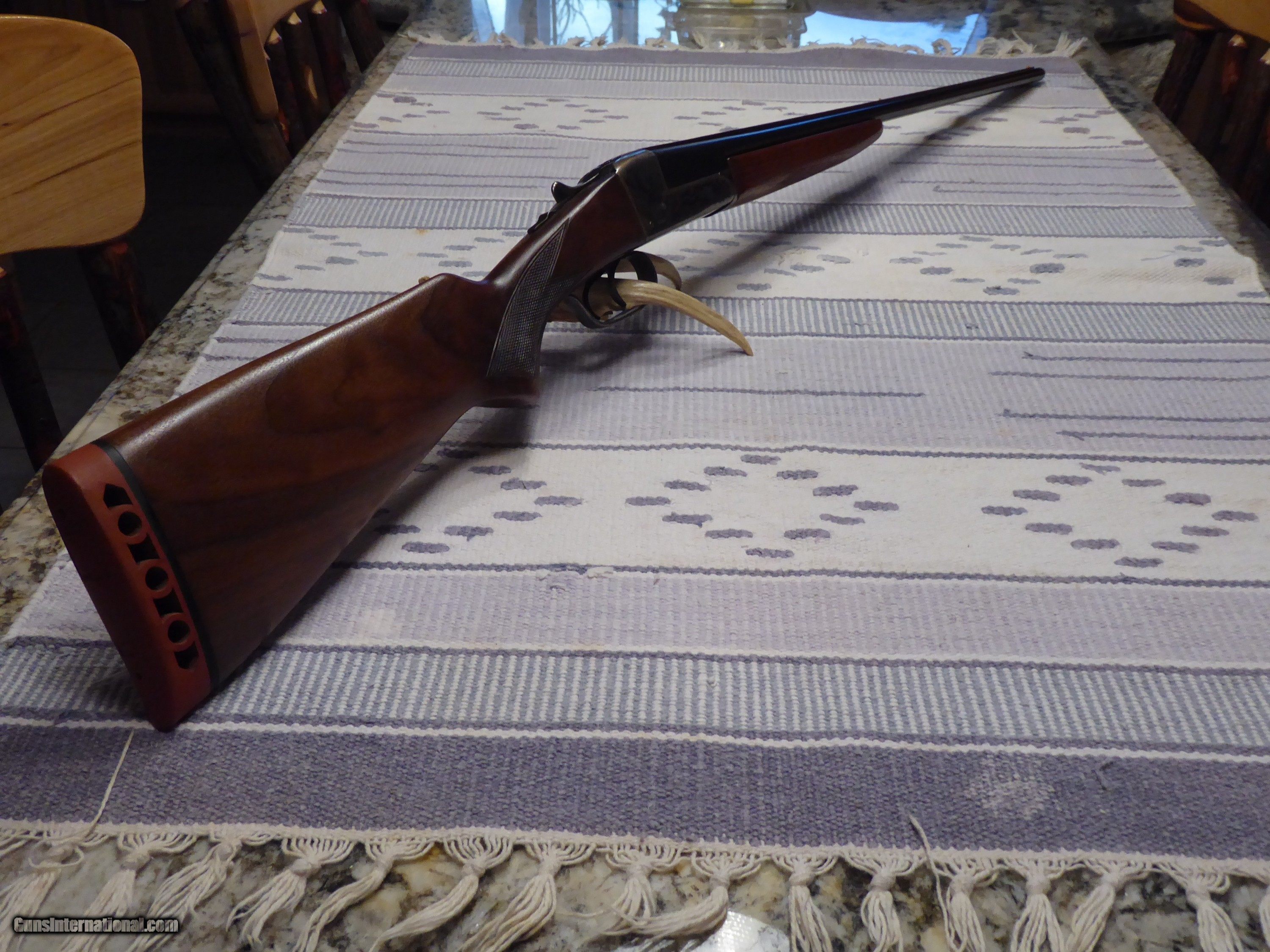 Description: Sears ordered around 200 of these from Stevens as well as 222 from the Hunter Arms Company. These guns exhibit upgraded wood hand checking as well as twin ivory sights and a factory marked recoil pad Barrels are 26" Full & Full chokes with original 3" chambers. Forend has a hairline crack that is not going any further. Whether it is the Stevens or the Hunter Arms Deluxe Models both are a real gem and a prize to own. These guns were finished a level above what the manufacturers offered in their own catalogs. SOLD Curio/Relic: Yes Shotgun Gauge: .410 Gauge Manufacturer: Stevens Model: 5000 Serial Number: C13xxx Barrel Length: 26 Chambers: Factory 3 Ejectors: No Condition: Original Metal Condition: Original Wood Condition: Original Bore Condition: Excellent Triggers: Double Fore End: Splinter Butt Pad: Original Ranger Rib: Solid Finish: Colour Harding & Blue Sights: Twin Ivory Manufacture Date: 1939 Chokes: Fixed Choke Left: Full Choke Right: Full Engraving: Ranger |