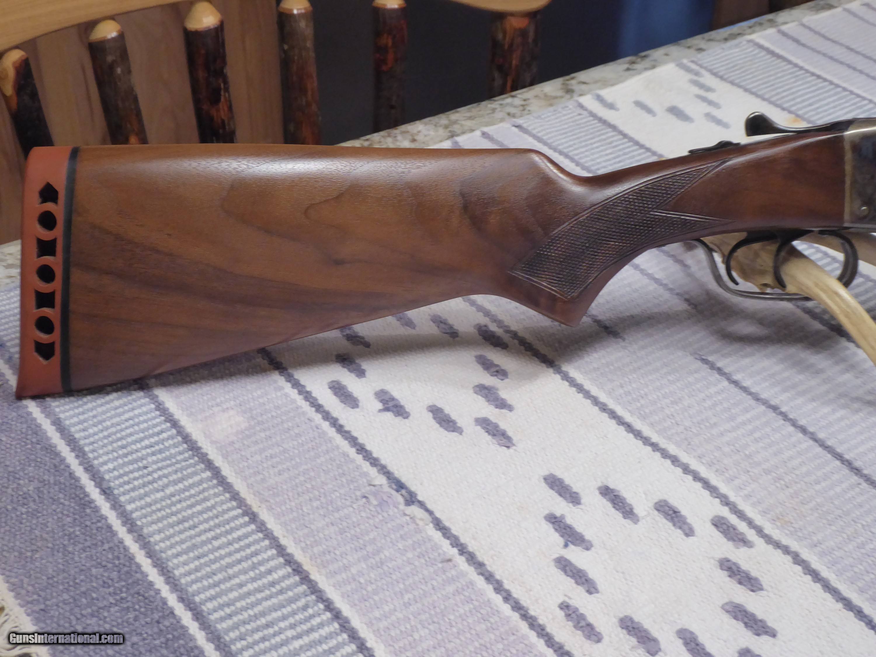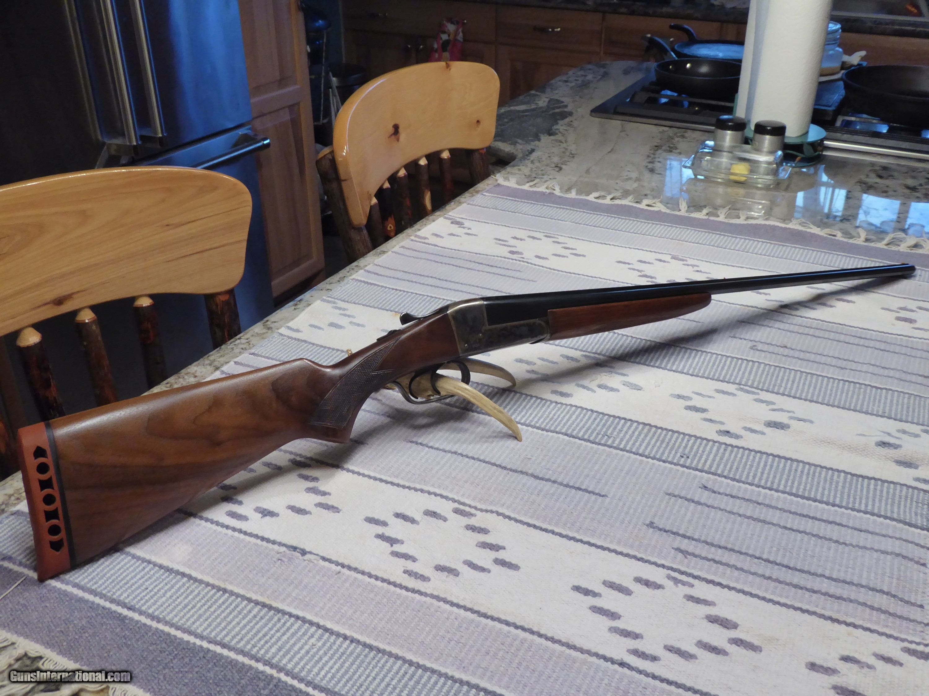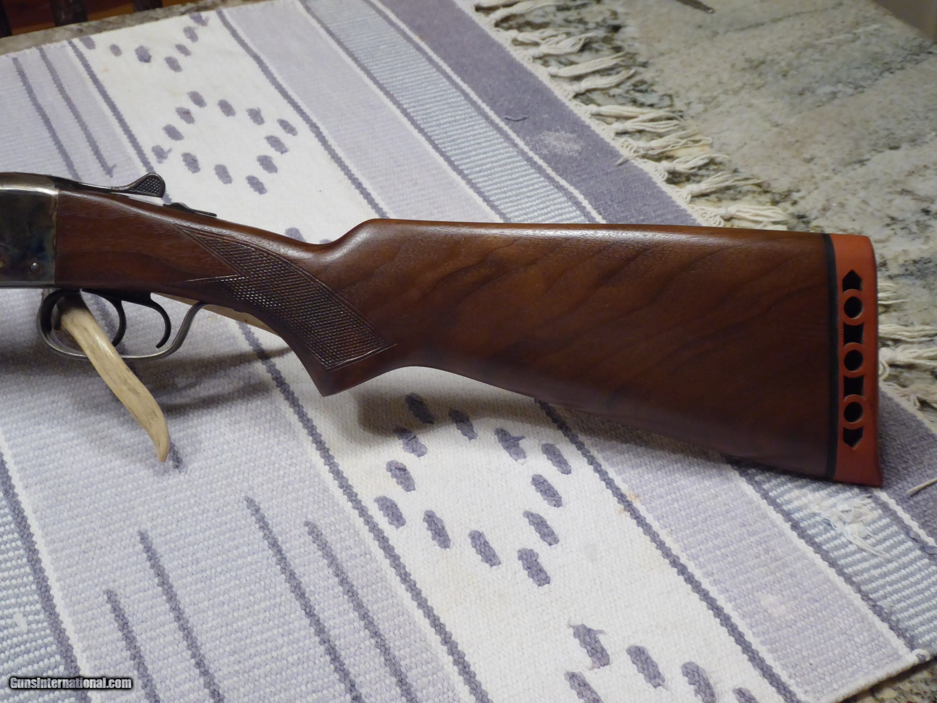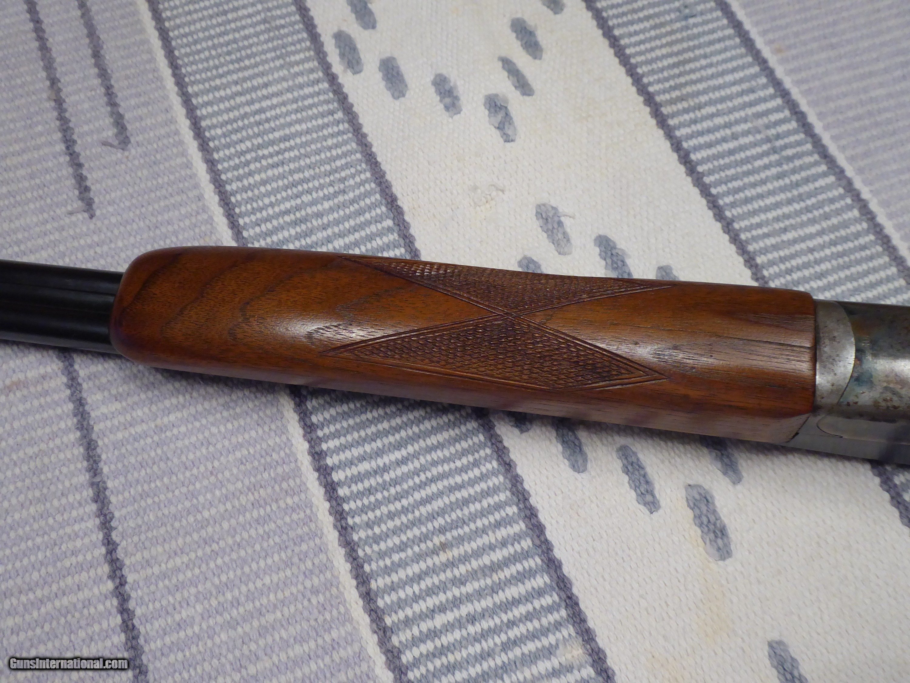 Description: Sears ordered around 200 of these from Stevens as well as 222 from the Hunter Arms Company. These guns exhibit upgraded wood hand checking as well as twin ivory sights and a factory marked recoil pad Barrels are 26" Full & Full chokes with original 3" chambers. Forend has a hairline crack that is not going any further. Whether it is the Stevens or the Hunter Arms Deluxe Models both are a real gem and a prize to own. These guns were finished a level above what the manufacturers offered in their own catalogs. SOLD Curio/Relic: Yes Shotgun Gauge: .410 Gauge Manufacturer: Stevens Model: 5000 Serial Number: C13xxx Barrel Length: 26 Chambers: Factory 3 Ejectors: No Condition: Original Metal Condition: Original Wood Condition: Original Bore Condition: Excellent Triggers: Double Fore End: Splinter Butt Pad: Original Ranger Rib: Solid Finish: Colour Harding & Blue Sights: Twin Ivory Manufacture Date: 1939 Chokes: Fixed Choke Left: Full Choke Right: Full Engraving: Ranger |