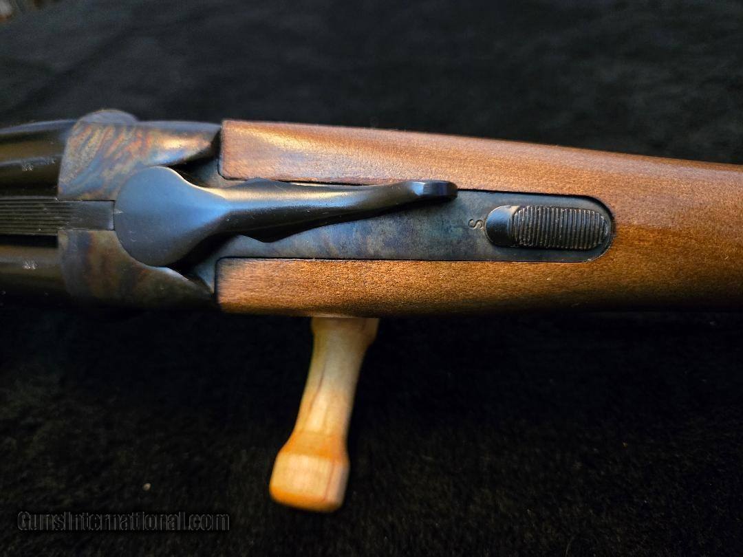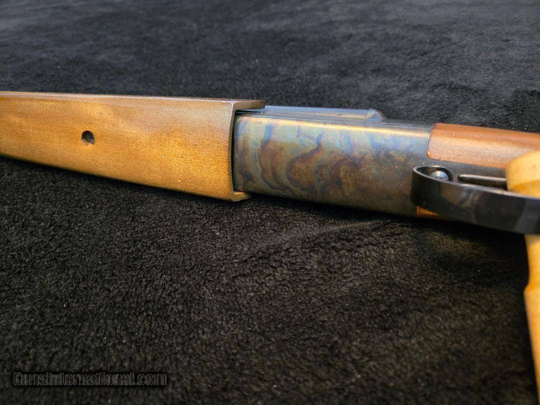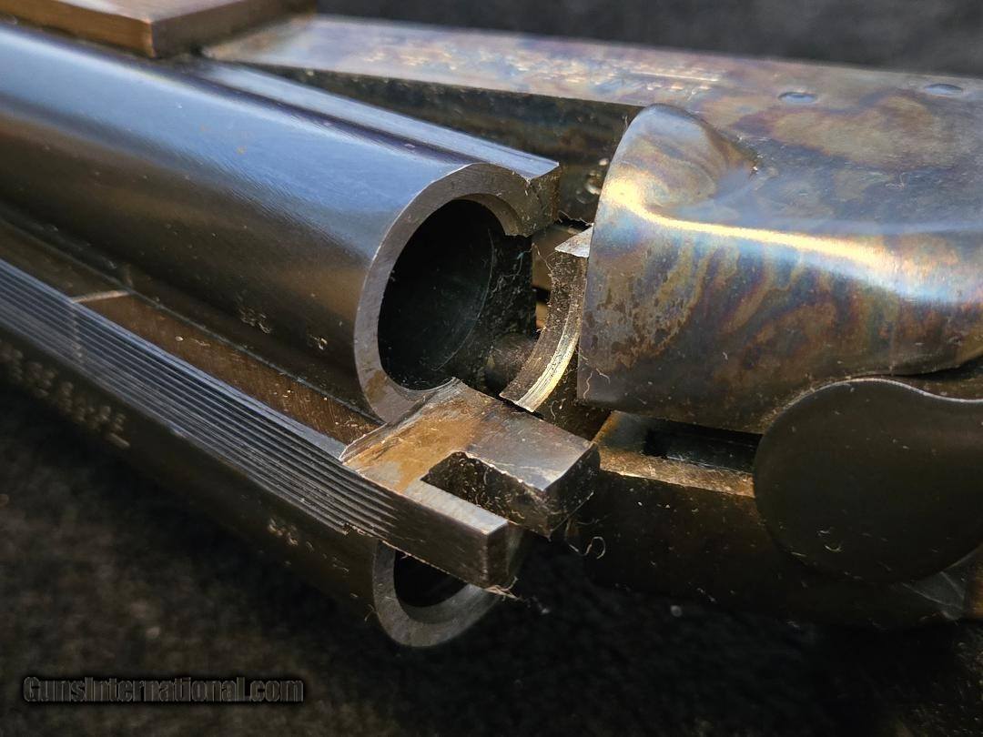 Description: This is a Springfield shotgun made by the J. Stevens Arms Company, which was a division of Savage Arms from the 1920s through the 1960s. This particular gun would fall into later production from Westfield, Mass. This gun is in 95-98% condition, with great blue and vivid case colors remaining overall. The bores of the 28" modified choked barrels are in mint condition, with a solid rib, and a single bead. This gun has a convenient tang safety, with twin triggers, and non selective extractors. The wood stocks are made of maple, with small finish blems here and there, with no cracks, chips or repairs. $695.00 by certified funds, and shipped UPS ground to an FFL in your area within the lower 48 states only. I will cover the insured shipping to a current FFL in your area. Dan at (608) 751-7194 Curio/Relic: Yes Manufacturer: Springfield Model: 511 Serial Number: B7633XX Barrel Length: 28 Bore Info: smooth Chambers: 20ga Ejectors: extractors Condition: near mint Metal Condition: near mint Wood Condition: excellent Bore Condition: mint Barrels: double Barrel Type: round Action: break open Triggers: double Stock: factory maple Butt Pad: factory composite14 Rib: solid Finish: blue Sights: factory original Manufacture Date: 1960s Chokes: MOD and MOD Price: $695.00 Contact Seller |