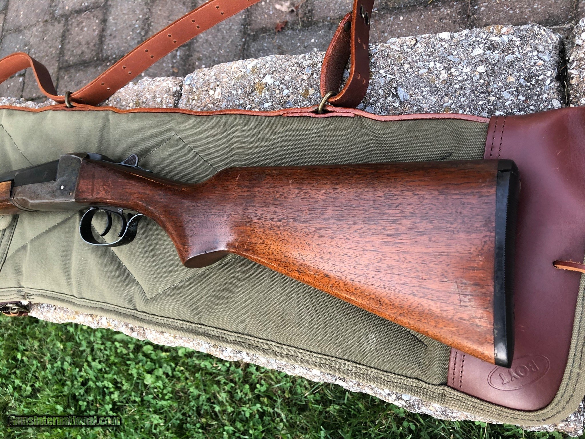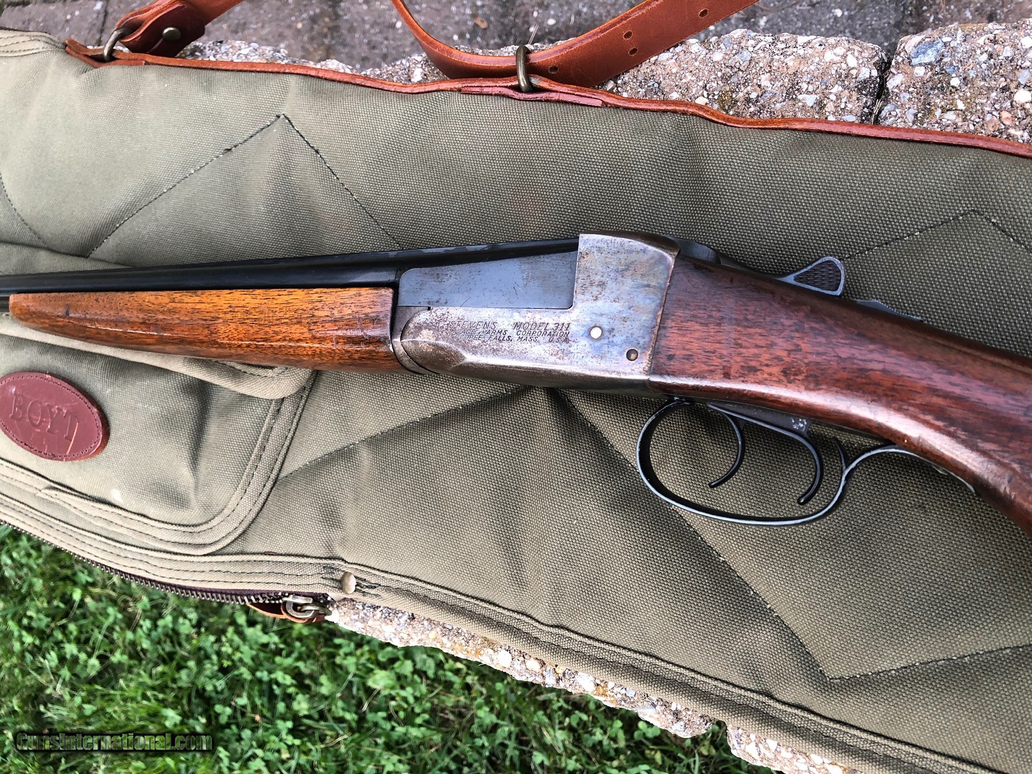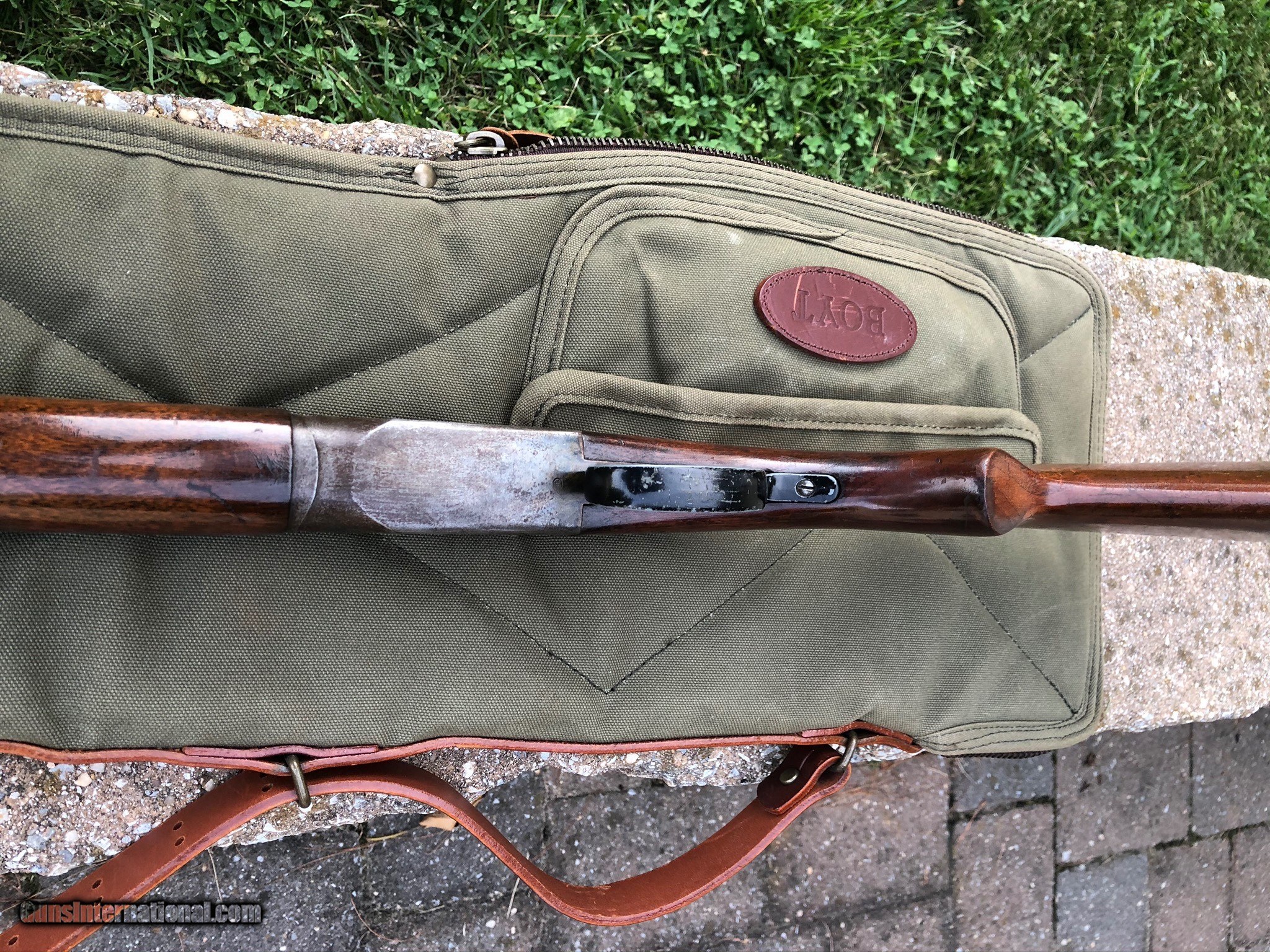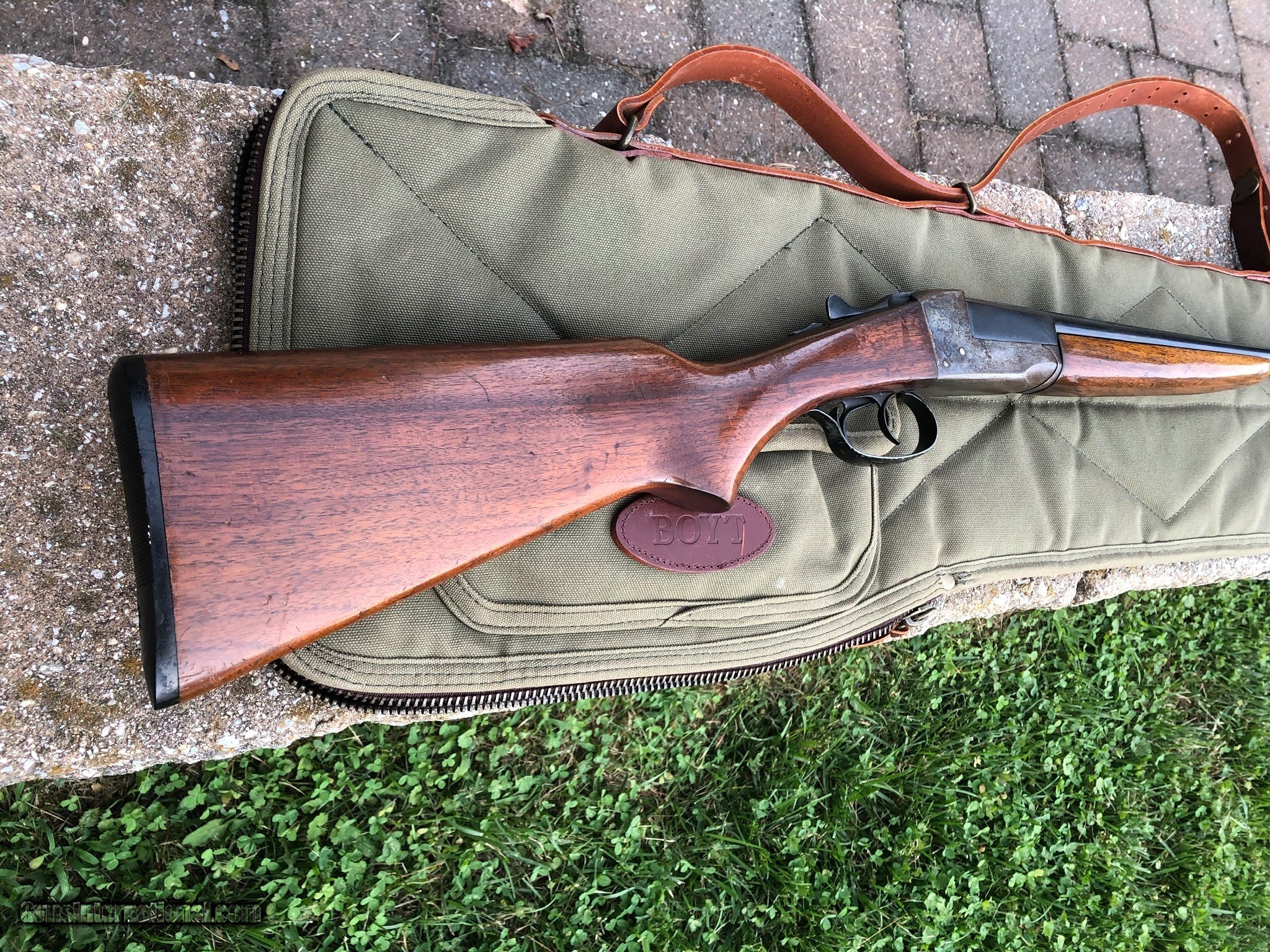 Description: 410 doubles are fun to shoot, but difficult to find and usually pricey. This Stevens Model 311 is a fun, affordable alternative. It's all factory original and a 50's vintage gun. It's got 26 inch barrels bored full & full. The bores and mechanics are excellent. The blue is VG on the barrels and the frame shows tarnish, but has never been cleaned or buffed. There is a small crack in the buttplate but it's solid. Overall a decent example on a smaller size frame that is a fun shooter at game or clays. It does have 3 inch chambers. Use Buy Now and I'll pay shipping and insurance to the lower 48. SOLD |