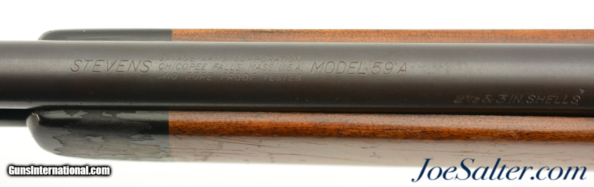 Description: Serial #NSN, .410 Gauge (2.5" & 3" shells), 24 inch barrel with a bright, excellent bore choked full manufactured from 1940-1960. This is the Stevens Model 59A bolt action, tube magazine fed shotgun. In excellent condition the barrel and frame retain about 75-80% of a mottled blue finish with scattered areas of freckling. The walnut stock is solid with light use marks and scratches. FFL or C&R SOLD Curio/Relic: Yes |