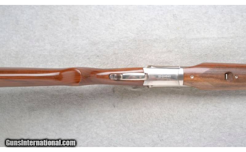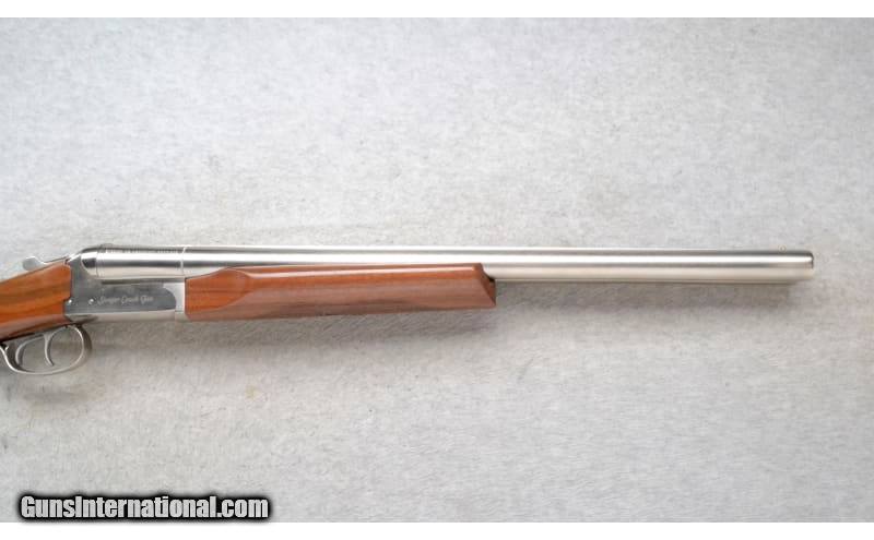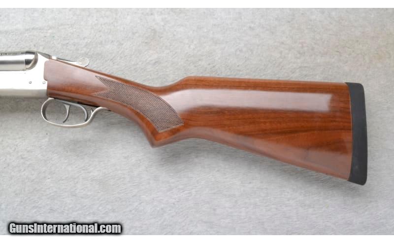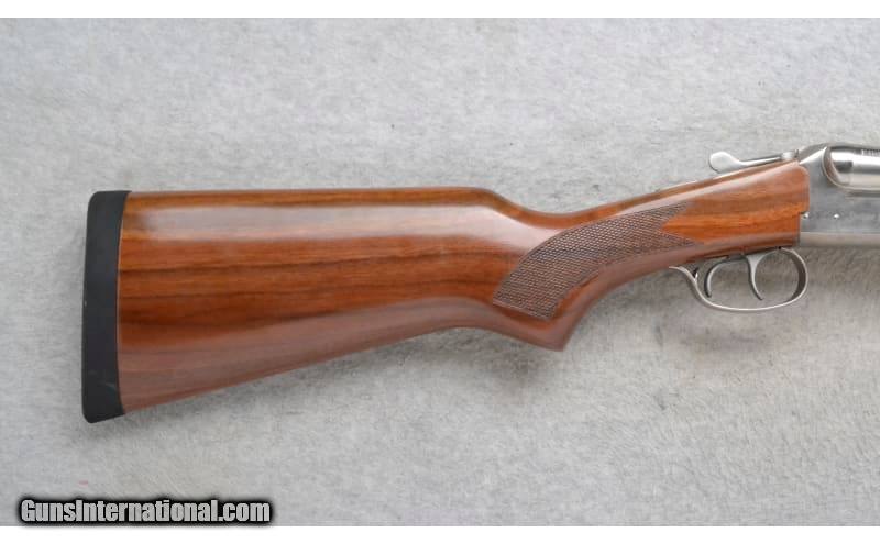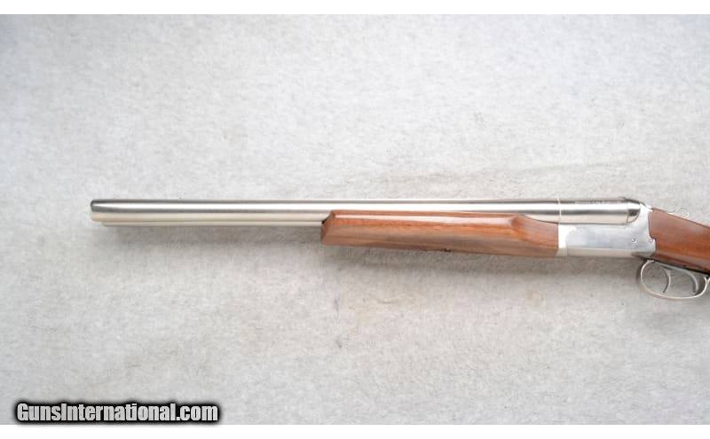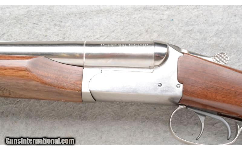 Description: This Stoeger Model Coachgun is a stainless steel side by side shotgun in 12 Ga. It has 20 inch barrels with ejectors and a solid rib. A brass bead front sight. The butt stock is a checkered grip walnut pistol grip. The forearm is a checkered grip walnut beavertail style. It has double triggers. 12 Gauge SOLD Chambers: 3 inch. Metal Condition: Very Good. Wood Condition: Very Good. A few minor handling marks. Bore Condition: Bright and shiny. Barrels: 20 inch stainless steel barrels with extractors and a solid rib. Triggers: Double. Stock Dimensions: LOP 14 1/2 inches. Fore End: Checkered grip walnut beavertail style. Butt Pad: Black Rubber. Weight: 7 Lb. 5 Oz. Sights: Brass bead front. Chokes: Comes with a M and IC choke tube. Item Location: Richfield, WI |