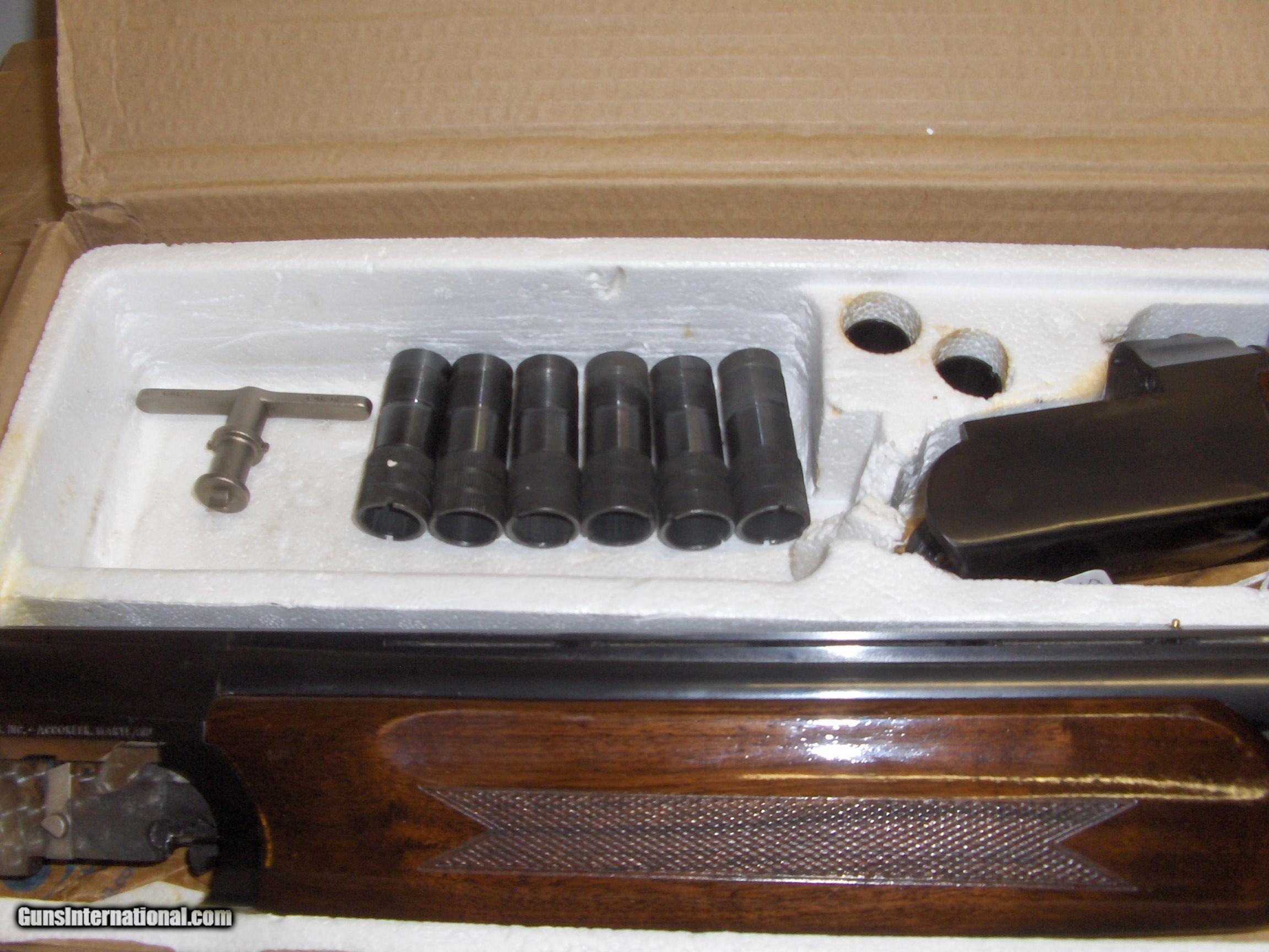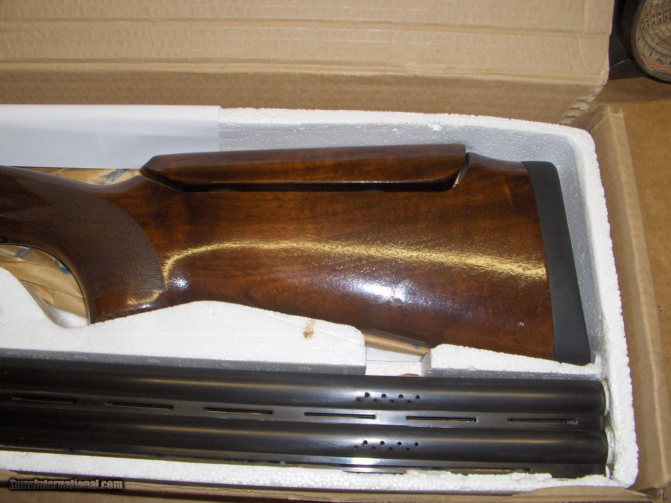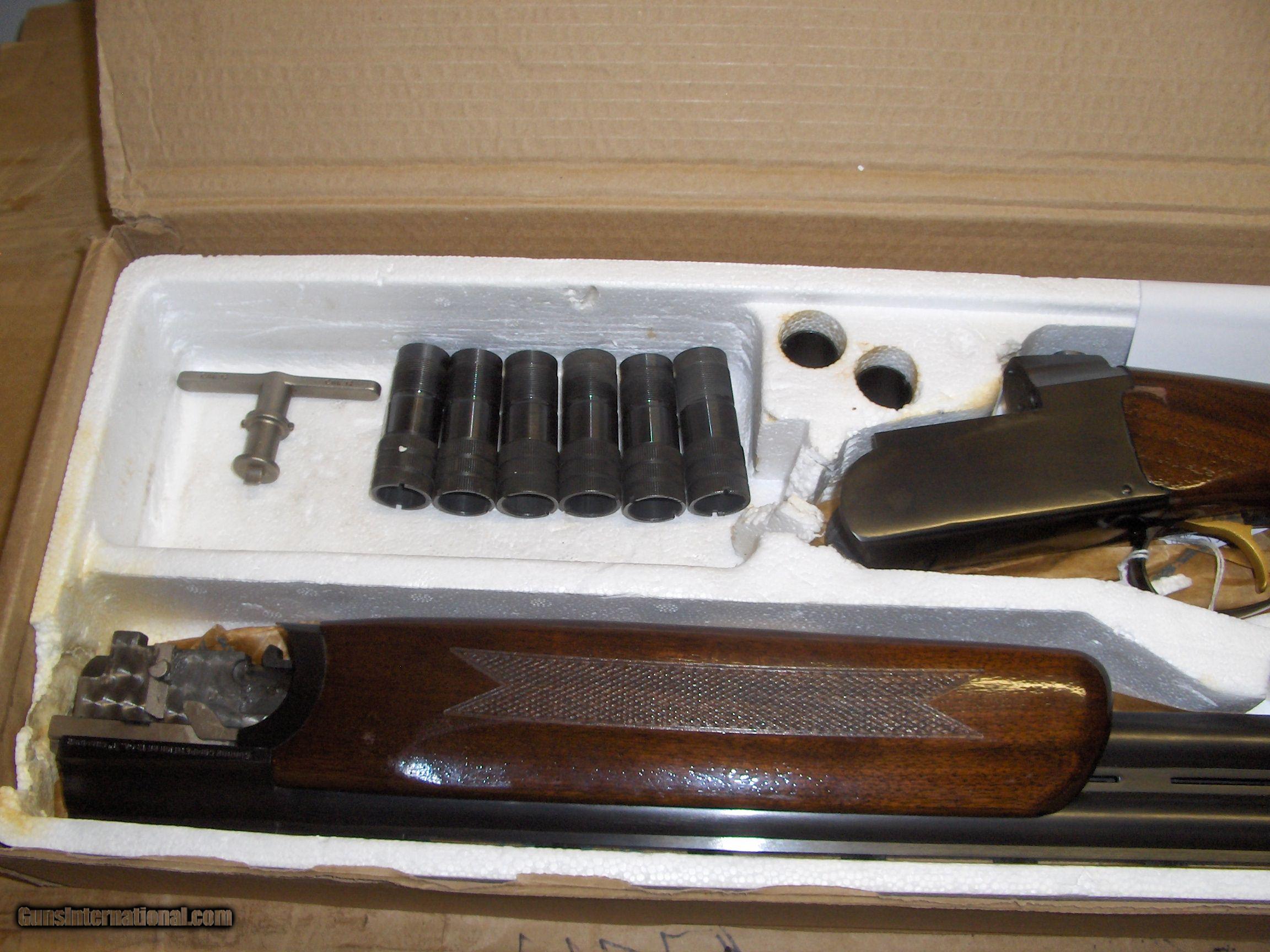 Description: Like new Sporting gun. 5 extended chokes and 2 flush with wrench. 30". Adjustable comb.In original box. Small chip on left cheek where metal meets wood. Other wise a really nice gun. SOLD |