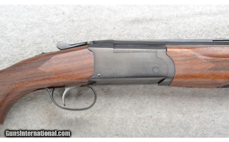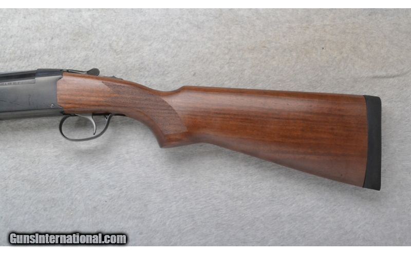 Description: This Stoeger Model Condor I is an over and under shotgun in .410 Bore. It has 26 inch barrels with extractors and a top barrel ventilated rib. A brass bead front sight. With 3 inch chambers it has fixed Full choke. A single trigger. The butt stock is a checkered grip walnut pistol grip. The forearm is a checkered grip walnut with finger grooves. .410 Bore SOLD Chambers: 3 inch. Metal Condition: Excellent. Minor surface handling blemish on receiver left side. Wood Condition: Excellent. Bore Condition: Bright and shiny. Barrels: 26 inch barrels with extractors and a top barrel ventilated rib. Triggers: Single. Stock Dimensions: 14 1/4 inches. Fore End: Checkered grip walnut. Butt Pad: Black rubber recoil pad. Weight: 7 lb. 4 oz. Sights: Brass bead front. Chokes: Fixed Full both barrels. Item Location: Richfield, WI |