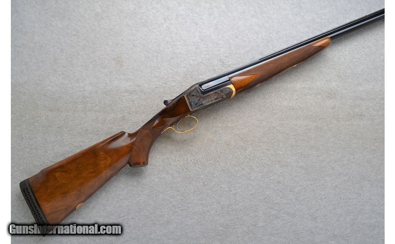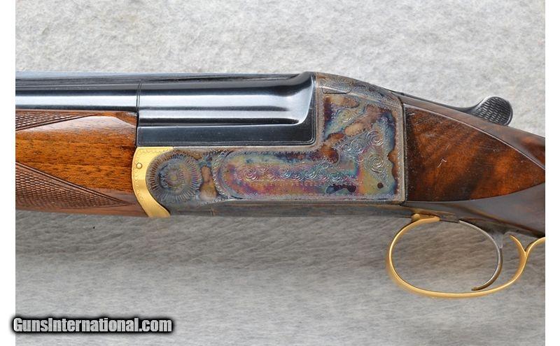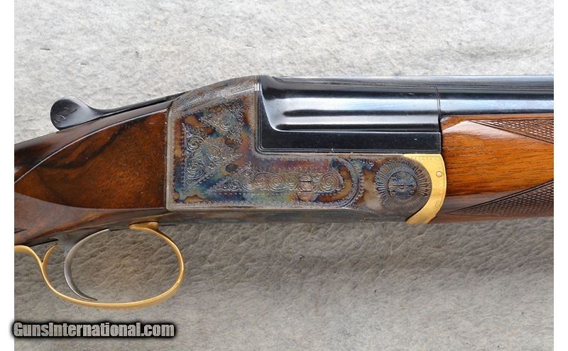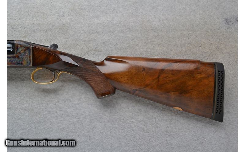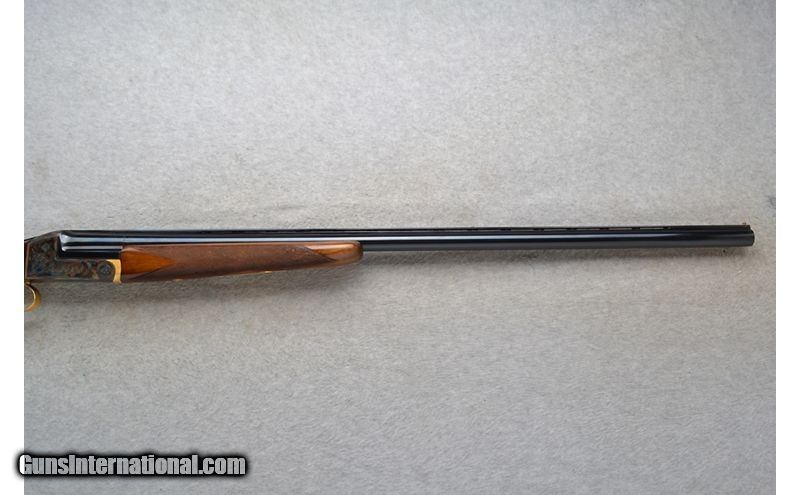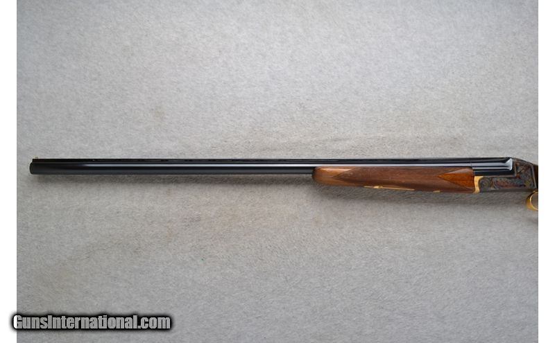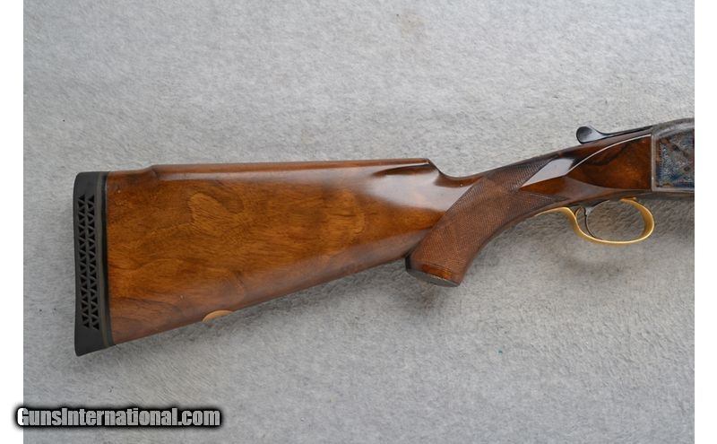 Description: This Stoeger (Gamba) Model Trap is a single shot 12 Ga. shotgun. It has a 32 inch barrel with ejector and a ventilated rib. A brass bead front sight and a metal bead middle sight. With a 2 3/4 inch chamber it has a fixed Full choke. The butt stock is a checkered grip walnut pistol grip with a checkered aluminum cap. The forearm is a checkered grip walnut. It has a nicely engraved case colored receiver with some golden highlights. 12 Gauge SOLD Chambers: 2 3/4 inch. Metal Condition: Excellent. Wood Condition: Good with some light handling marks. Bore Condition: Bright and shiny. Barrels: 32 inch with ejector and ventilated rib. Stock Dimensions: LOP 14 1/2 inches. Fore End: Checkered grip walnut. Butt Pad: Black rubber recoil pad. Weight: 8 lb. 2 oz. Sights: Brass bead front. Metal middle bead. Chokes: Fixed Full. Item Location: Richfield, WI |
