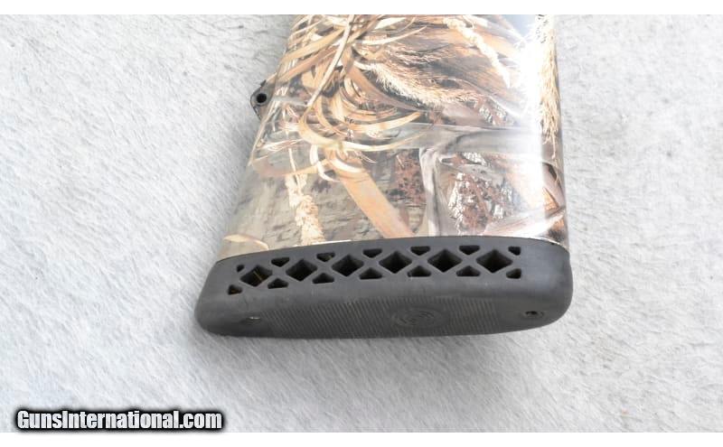 Description: This Stoeger Model M3500 is a right hand semi-auto shotgun in 12 Ga. It has a 28 inch barrel with a ventilated rib. A red high visibility front sight. With 3.5 inch chamber it comes with a Full choke tube in the gun. The butt stock is a checkered grip polymer pistol grip. The forearm is a checkered grip polymer with finger grooves. Comes in Realtree Max-5 Camo. 12 Gauge SOLD Chambers: 3.5 inch. Metal Condition: Good. A little camo edge wear. Bore Condition: Shiny. Barrels: 28 inch ventilated rib barrel. Stock Dimensions: LOP 14 1/2 inches. Fore End: Checkered grip polymer with finger grooves. Butt Pad: Black rubber recoil pad. Weight: 7 lb. 12 oz. Sights: Red high visibility front. Chokes: Comes with a Full choke tube in the gun. Item Location: Richfield, WI |