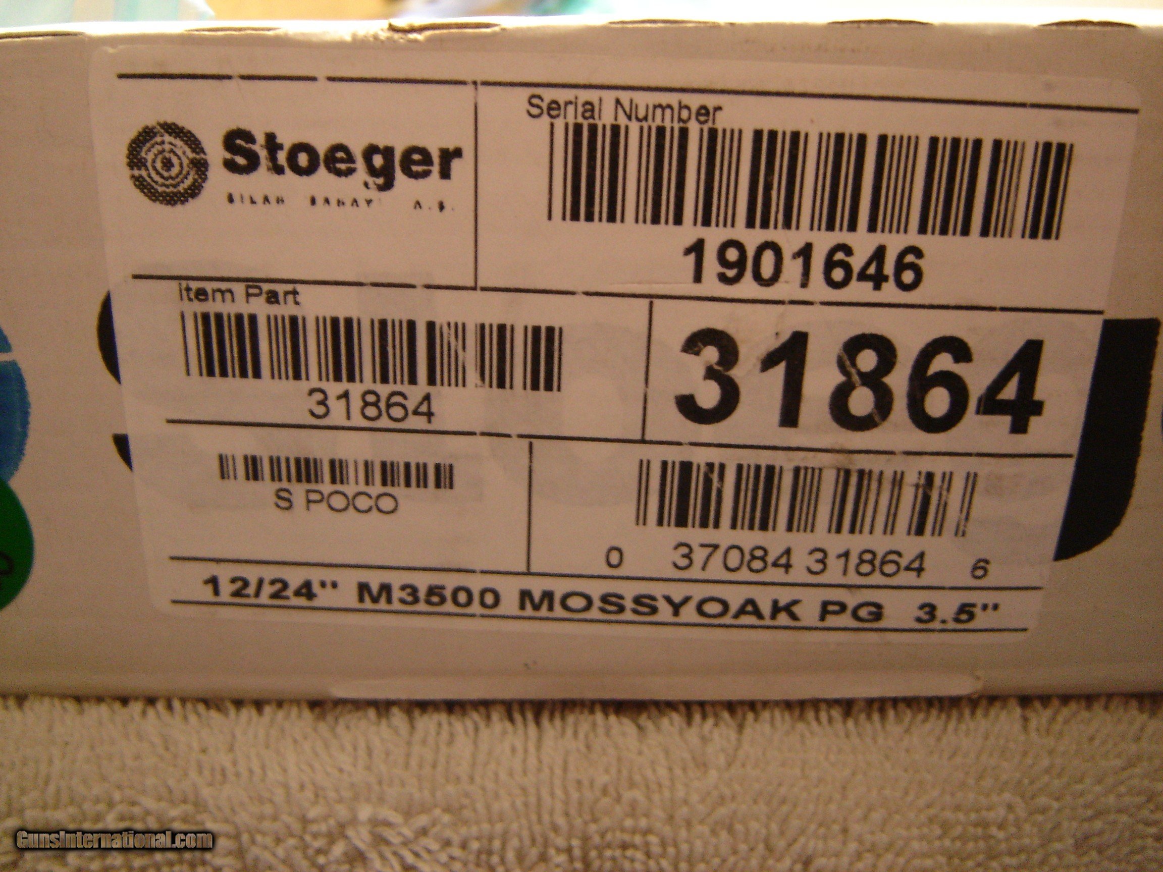Description: Stoeger M3500 Mossy Oak Steady Grip 12 ga- 3 1/2 ' chamber /24" barrel with choke tubes. As new in box. test fired only. No California Sales. SOLD Manufacturer: Stoeger Model: 3500 Serial Number: 1901646 Barrel Length: 24 Caliber Info: 12- 3 1/2 Condition: ANIB |