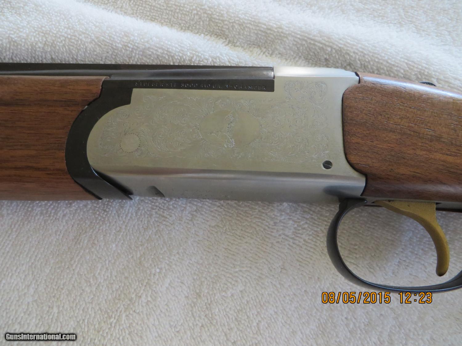Description: Sold Pending Funds Stoeger STF 3000 O/U 410 Shotgun. The gun is in 97-98% condition with its original box and book. Metal is like new and the wood has a couple of small hunting dings. The gun has 26" fixed choke 3" barrels M/M (?) and Extractors. Single, Non-Selective Gold Trigger. No California Sales, sorry. This gun, like all used guns, should be inspected by a trusted gunsmith before firing. Shipping, Packaging and Insurance at actual cost. This is a nice little gun. SOLD |