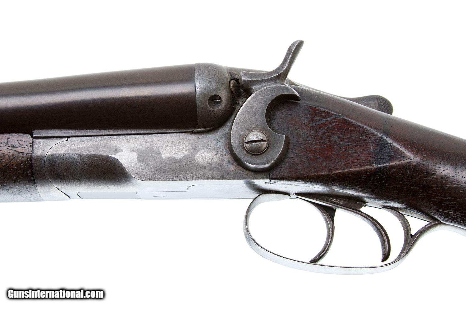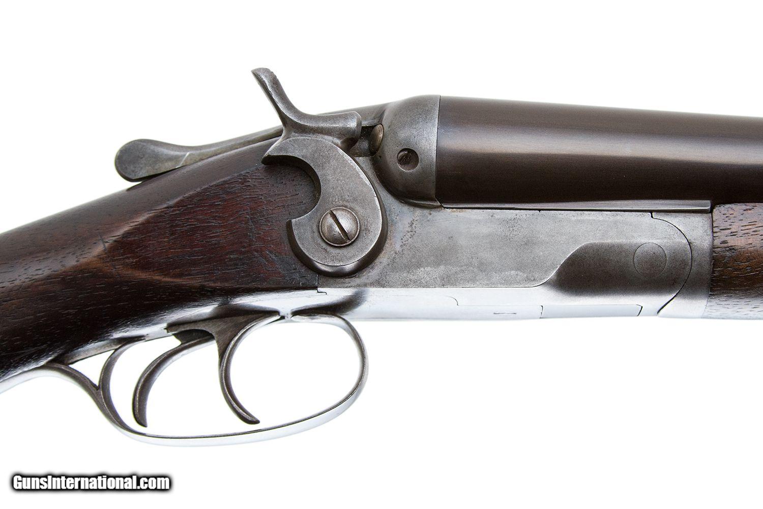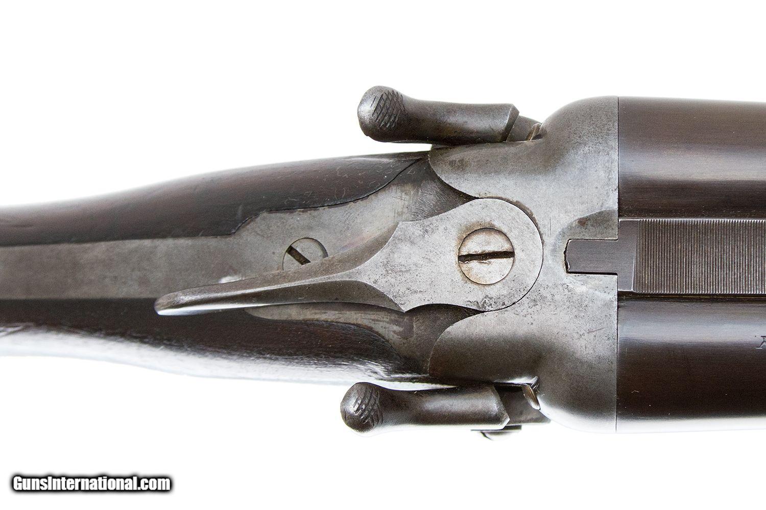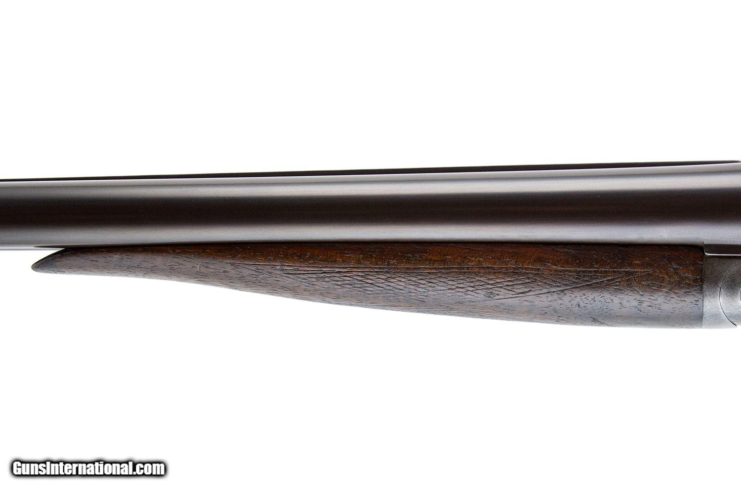 Description: 30" TRIPLETT STEEL BARRELS MOD AND FULL 2 1/2" CHAMBERS DOUBLE TRIGGER EXTRACTORS SPLINTER FOREARM PISTOL GRIP EXCELLENT MECHANICALLY ORIGINAL CONDITION WITH LIGHT WEAR 7LBS 1 OZ 3 DAH 1 5/8 DAC 14 1/8 LOP SOLD |