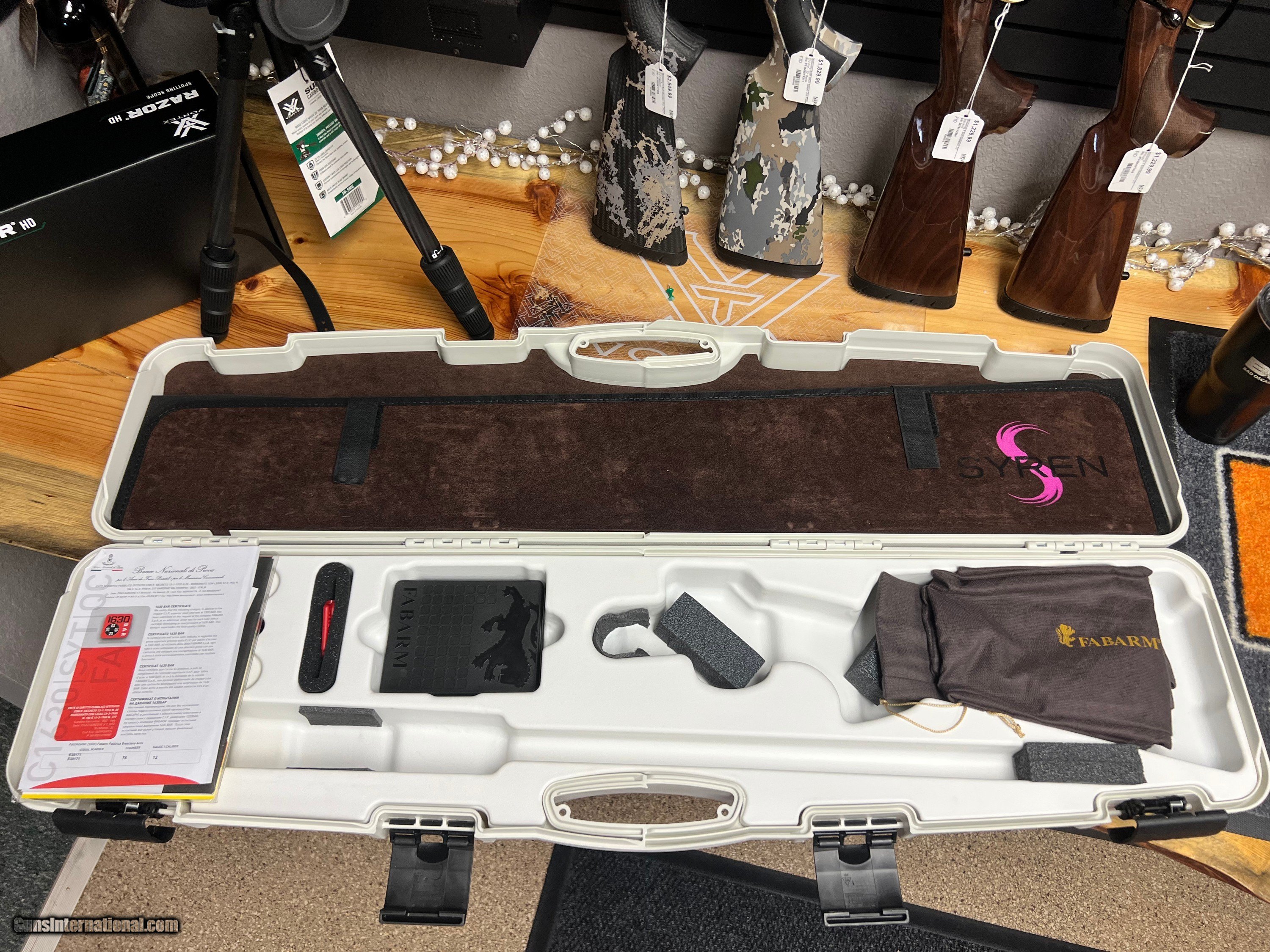 Description: On Consignment...Like New, Only 100 Rounds Shot Through! This Syren Elos N2 Elevate Left Hand allows lady shooters to adjust all critical specifications making it easy to fine-tune the gun to your shooting style. Point-of-impact, stock fit, trigger system, recoil characteristics, and overall weight and balance are all customizable. The geometry of the Elevate allows for an upright shooting stance, making your gun mount more comfortable while reducing felt recoil. The result is less strain on your neck and shoulders allowing you to concentrate on only the target. Also, thanks to the Quick Release Rib system, the Elevate has the ability to swap ribs for various shooting configurations in order to compete in multiple disciplines like Trap, Skeet and Sporting Clays. Two ribs come standard, one at 50/50 POI and the other at 65/35. This firearm is in prestine condition with only 100 rounds shot through it! For more information contact Don at 715-388-8411 or 414-305-9595 SOLD Shotgun Gauge: 12 Gauge Manufacturer: Fabarm Model: Syren Elos N2 Elevate LH Serial Number: E39171 Chambers: 3 Ejectors: Auto Condition: Like New Condition Metal Condition: Like New Conditon Wood Condition: Like New Condition Bore Condition: Like New Condition Barrels: Over Under Barrel Type: Steel Action: Break Triggers: Inertia adjustable position Stock: Turkish Walnut with TRIWOOD ™ finish Stock Comb: 1.5 Stock Heel: 2.5 Butt Pad: Soft black rubber (Microcell 22mm) LOP: 13.9" Rib: 10mm to 8mm tapered, ventilated, set of two Q.R.R. (Quick Release Ribs) included with one at 50/50 P.O.I. and the second rib at 65/35 P.O.I. Weight: 7lb. 10oz. Sights: White front bead Chokes: 5 EXIS HP™ Competition Choke Tubes Case: Hard case with cloth gun sleeves Item Location: Wisconsin |