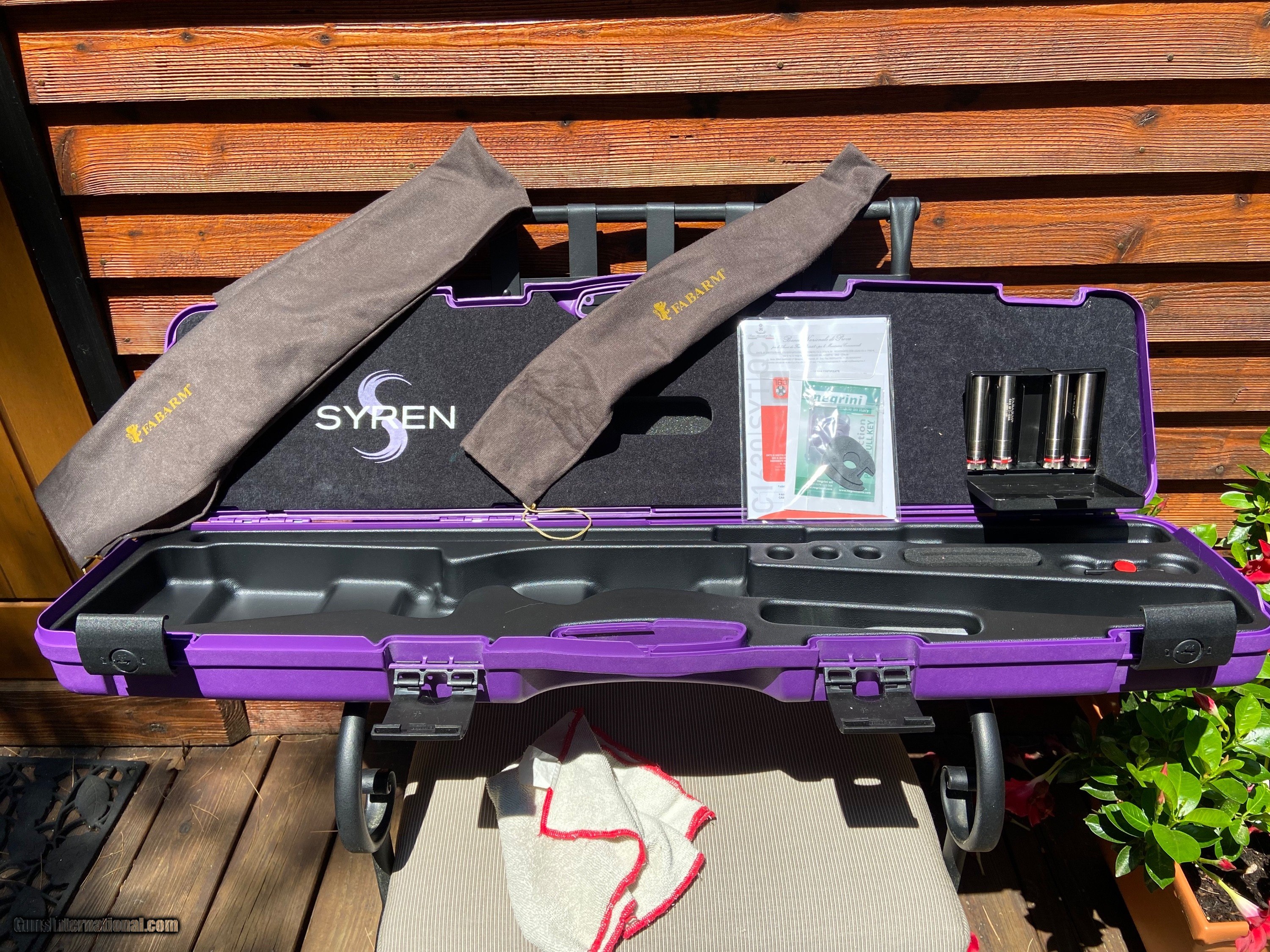 Description: Purchased new in 2022 for my wife, she shot one round of clays and decided it wasn't for her. Gun is is 100% as new with absolutely no imperfections. Gun comes with all factory components including: case, gun sleeves, chokes, tools and manual. Please message me if you have questions or special requests for additional photos. From Syren If you want light weight and low recoil, this is the ideal shotgun for you. Our Syren L4S semi-automatic target shotgun offers very low recoil without the heavier weight of an over-under style gun. We made the forend shorter and trimmer to reduce weight and improve the overall balance making the L4S easy to handle and shoot. The L4S incorporates a reliable gas operating system that significantly softens the recoil of even heavy 12 gauge target loads. The gas system is calibrated specifically for target loads. This allows the gun to function with the kind of light, low-recoil ammunition other semi-automatic shotguns can’t handle. These features make the L4S one of the most enjoyable 12 gauge shotguns available to women shooters. Inline with our no-compromises approach, we’ve included all of the serious competition features you’ve come to expect. The barrels feature our TRIBORE™ tapered bore, EXIS HP™ hyperbolic chokes and tapered top rib. The stock has an easily interchanged shim system and available interchangeable recoil pads that allow you to perfectly fine-tune the fit. All of the controls such as the bolt release, safety and bolt handle are oversized competition style for easy use. The combination of innovative design features and a passion for making a great semi-auto target shotgun for women, makes the Syren L4S Sporting a great choice for any shooter. SOLD Shotgun Gauge: 12 Gauge Manufacturer: Syren Model: L4S Barrel Length: 28” Chambers: 2.75” Condition: Excellent Metal Condition: Excellent Wood Condition: Excellent Bore Condition: Excellent Barrels: 28” Action: Auto Stock Drop: 1.75” Stock Comb: 1.5” Stock Heel: 2.5” Stock Cast: .125” LOP: 13.6” Rib: 11 to 8 mm Weight: 6 lbs. 12 ounces Manufacture Date: 2022 Chokes: IC,S,M,IM,F Case: Factory Item Location: NY |