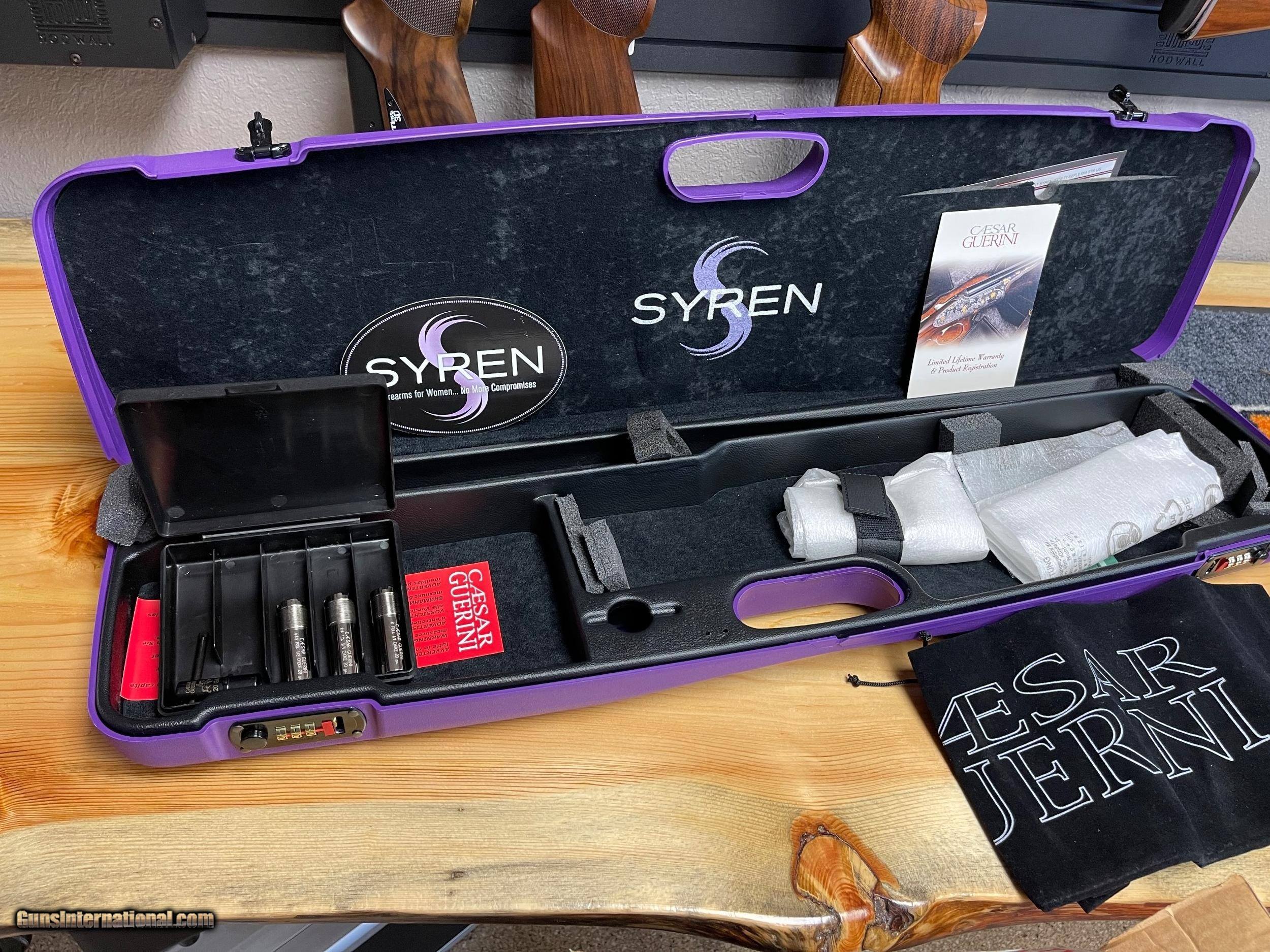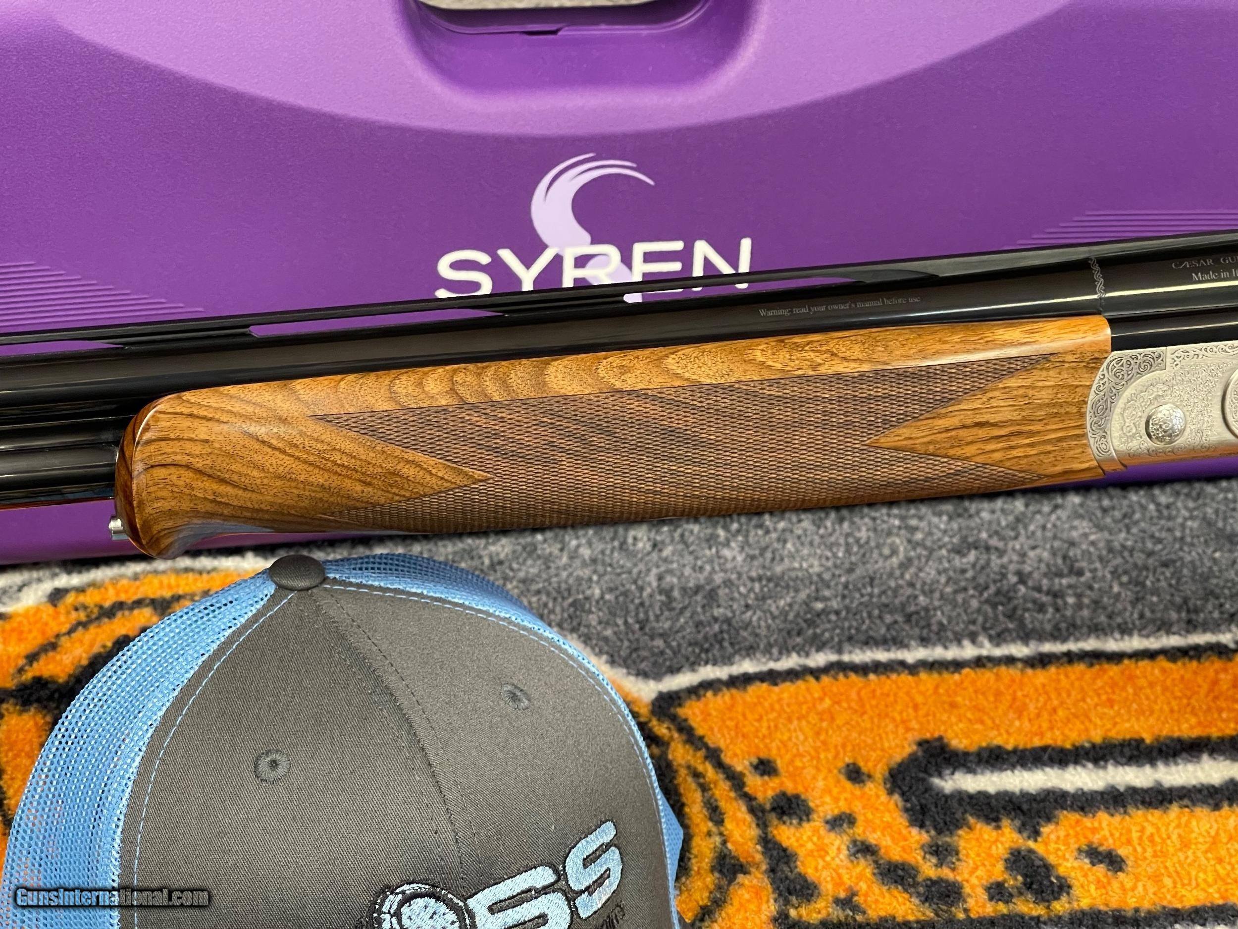 Description: The Syren Tempio Light 20 Gauge... This more than a field gun, more than just a compact... Syren has designed to their guns specifically for women. They considered everything that impacts the proper fit for the lady hunter and shooter. While other companies shorten the length of pull and call it a ladies gun or a youth model, Syren took it much further! Cast off, shortened LOP, smaller forearm, Monte Carlo Comb, smaller pistol grip, and proper balance and weight distribution. Oh did I forget amazing recoil management! The Tempio Light comes with the Caesar Guerini Life Time Warranty and the Pis Stop Program... Caesar Guerini has the best customer service reputation in the industry. This one is hard to get and has been for the past 2-1/2 years. Did you know that a Ruffed Grouse can accelerate to fifty miles an hour in just a few yards, while flying through heavily wooded terrain? During a covey rise a Bobwhite quail can reach 40mph in a short distance, but usually with a number of birds going in different directions simultaneously. With birds this fast you need something to help improve your odds. The Syren Tempio light is just the advantage you are looking for. With its exceptionally light weight and quick pointing characteristics it is the perfect match for the fastest game birds on the planet. Weighing between 5.25lbs and 6lbs it will also be a dream to carry during long days in the field. If you are passionate about pursuit of upland game birds, the new Syren Tempio Light is the perfect companion. Please feel free to call us at 414-915-9609 or email us at donbossllc Thank you Bad Oscar Shooting Sports, LLC SOLD Shotgun Gauge: 20 Gauge Manufacturer: Syren / Caesar Guerini Model: Syren Tempio Light Serial Number: 172002 Chambers: 3 Ejectors: Auto Condition: NEW Metal Condition: NEW Wood Condition: NEW Bore Condition: NEW Barrels: O/U Barrel Type: Steel Blued Action: Break Triggers: Single selective Stock: High Grade Turkish Walnut Hand rubbed oil Stock Comb: Monte Carlo Stock Heel: Pitch 7° Stock Cast: Cast at heel .25" / Cast at toe .5 Fore End: Schnabel Butt Pad: Wood LOP: 13.9 Rib: Width 6mm (.24”) parallel and ventilated Finish: Nickel Alloy finish with Invisalloy™ protective finish Weight: 5 lbs 10oz Sights: Silver front bead Manufacture Date: 2022 Engraving: Detailed Gold In-Lay Case: Negrini Syren Fitted Case |