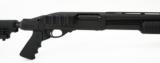 Remington 870 20 Gauge shotgun. AI&P Custom Tactical pump riot gun with sliding stock, extended magazine tube, 18 ½” Remchoke barrel, and dual shell carriers. Front night sights. A neat gun in excellent condition.