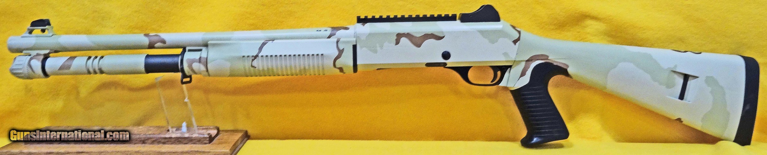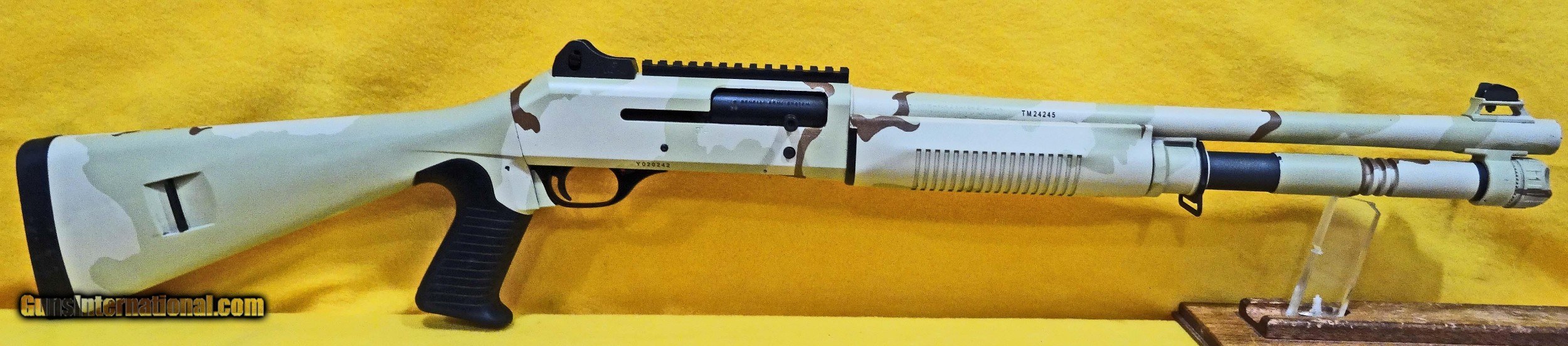 Description: BENELLI M4 IN 12 GA. CAL., WITH 18 1/2" BARREL. COLOR DESERT CAMO. CONDITION 98%. SERIAL NUMBER Y020242. BENELLI MODEL M4, SEMI AUTO, MIRROR BORE, STOCK AND FORE ARM EXCELLENT, DESERT CAMO, 98% OVERALL CONDITION, OUR STOCK # D806 SOLD |