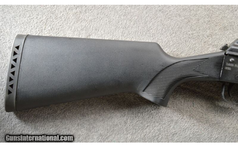 Description: If you are in the market for an AK style 12 gauge shotgun this is a good gun at a fair price. The shotgun has a matte black finish on all of the metal and synthetic butt stock. The shotgun has a top rail and short rail under the barrel as well has fixed sights. The barrel is a 20 inch with a screw in choke (Win Choke, Browning Invector and Weatherby) should work. The shotgun is straight from Century Arms to us and comes in the factory box. SOLD Manufacturer: Newer production. Caliber Info: 12 Gauge. Chambers: 2 ¾ and 3 inch semi-auto. Metal Condition: Very good with a few scuffs in the matte finish. Wood Condition: The stock is as new. Bore Condition: Bright and shiny. Barrels: 20 inch matte black with sights and a screw in choke. Triggers: Single blue. Stock: Black synthetic with a checkered pistol grip. Stock Dimensions: 14 inch LOP. Fore End: Matching black synthetic upper and lower. Butt Pad: Black rubber vented butt pad. Weight: 8 Lbs 13 Oz. Sights: Fixed sights and a top rail. Chokes: Screw in, Win Choke, Browning Invector and Weatherby style. Extras: Comes in the factory box with a 5 round mag. Item Location: Owatonna, MN |
