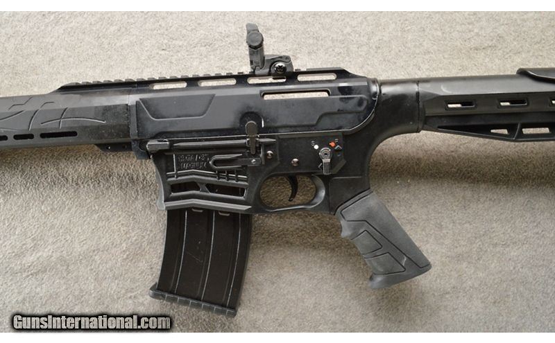 Description: This is an AR style 12 gauge with 2 10 round steel magazines. The shotgun is new from the maker and comes with the factory box, 5 chokes. Choke tube wrench, extra 10 round magazine and paperwork. The shotgun has a fixed butt stock with an adjustable comb and rubber butt pad. This NEW shotgun is priced to sell. 12 Gauge SOLD Chambers: Semi-auto 10 round. Metal Condition: New in the box. Wood Condition: The stock is new in the box. Barrels: 18" black with a shroud and hand guard. Triggers: Single. Stock Dimensions: 14 1/8 inch LOP. Fore End: AR style upper with vents, upper and lower rails. Butt Pad: Adjustable comb and a black rubber butt plate. Weight: 7 lbs. 15 oz. Sights: Rail mounted pop up sights, Adjustable rear aperture and front pin. Chokes: Comes with 5 chokes. Item Location: Owatonna, MN |