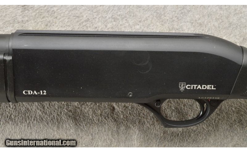 Description: This is a new in the box Citadel CDA-12 Home Defense 12 gauge shotgun. The shotgun has a 20 inch matte black barrel with a front sight and a grooved receiver for your scope or Red Dot sight. The black synthetic stock has a checkered pistol grip and the forearm has a bottom rail for a light. This new semi-auto 3 inch 12 gauge is ready to go. 12 Gauge SOLD Chambers: Semi-auto 4+1 for 3 inch shells. Metal Condition: ANIB. Wood Condition: The stock is ANIB. Bore Condition: ANIB. Barrels: 20 inch matte black with a front sight. Triggers: Single. Stock Dimensions: 13 ¾ inch LOP. Fore End: Checkered black synthetic with a bottom rail. Butt Pad: Soft black rubber butt pad. Weight: 6 Lbs. 5 Oz. Sights: Front sight blade and a grooved receiver. Chokes: Screw in, comes with an IC. Item Location: Owatonna, MN |