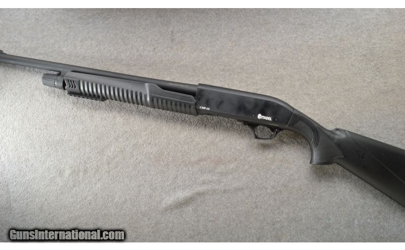 Description: This is a New in box Citadel CDP-12 home defence/field shotgun. The shotgun has a 20 inch matte black barrel with a front blade. The blue receiver is grooved for a scope mount. The black synthetic stock and textured forearm are as new. This shotgun has a sight rail at the front/bottom of the pump handle. The shotgun has a screw in Cylinder choke for slugs or shot. 12 Gauge SOLD Chambers: 3 inch pump action repeater. Metal Condition: NIB. Wood Condition: The stock is NIB. Barrels: 20 inch matte black with a front sight blade. Triggers: Single blue. Stock Dimensions: 14 inch LOP. Fore End: Matching black with grooves and a sight rail. Butt Pad: Black rubber vented butt pad. Sights: Blade front and a grooved receiver. Chokes: Screw in, comes with a cylinder. Item Location: Owatonna, MN |