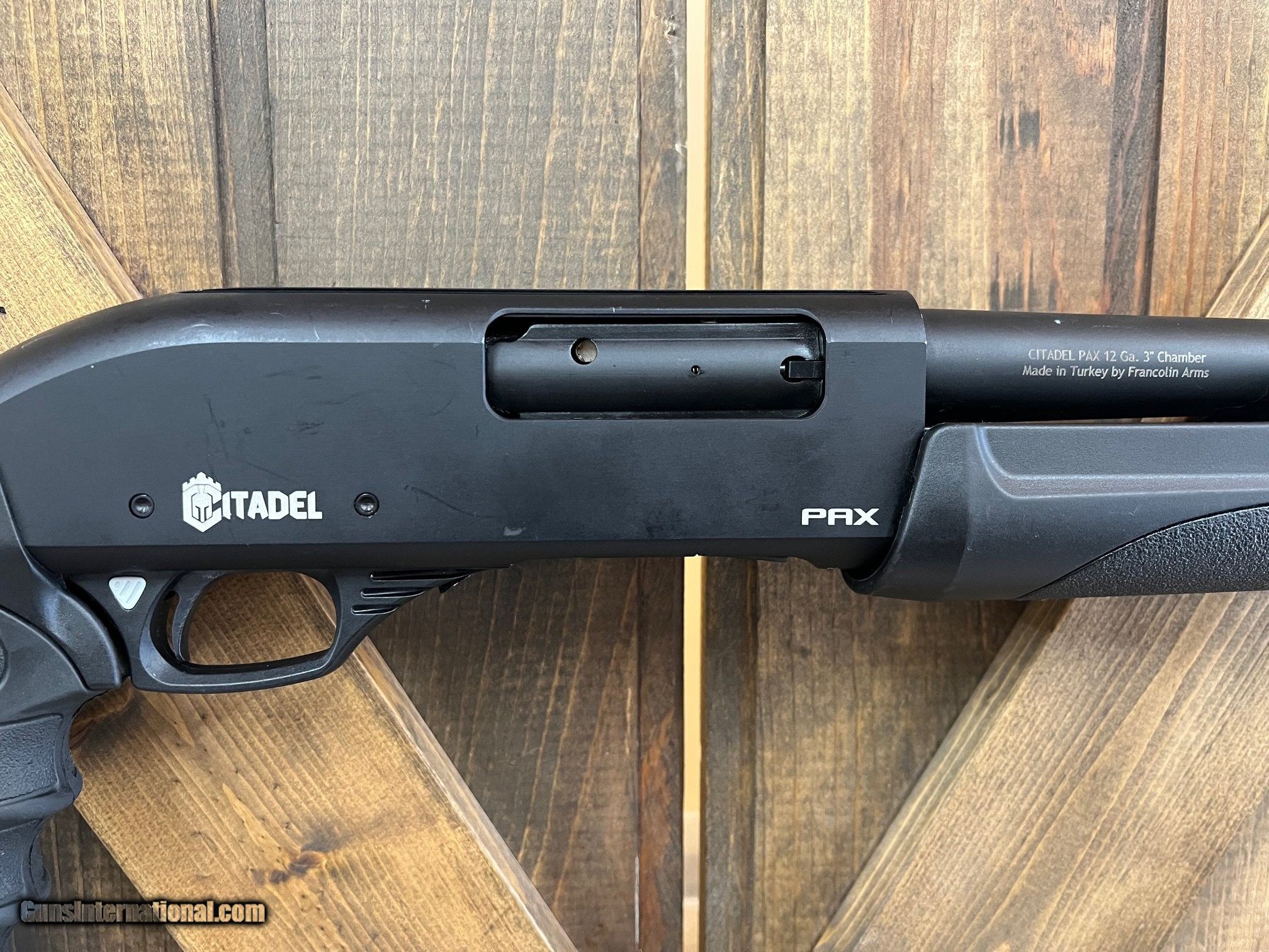 Description: Guns Listing ID: 602955 FRANCOLIN ARMS CITADEL PAX SHOT GUN - 12 GA - 20\" BARREL - 3 ROUND. SERIAL NUMBER 20-39869. OVERALL LENGTH: 41\" WEIGHT: 6.2 LBS. Manufacturer: CITADEL Model: PAX Condition: Used - Non-Certified Barrels: 20" BARREL Action: PUMP ACTION Gauge: 12 GA Finish: black Price: $199.99 Contact Seller |