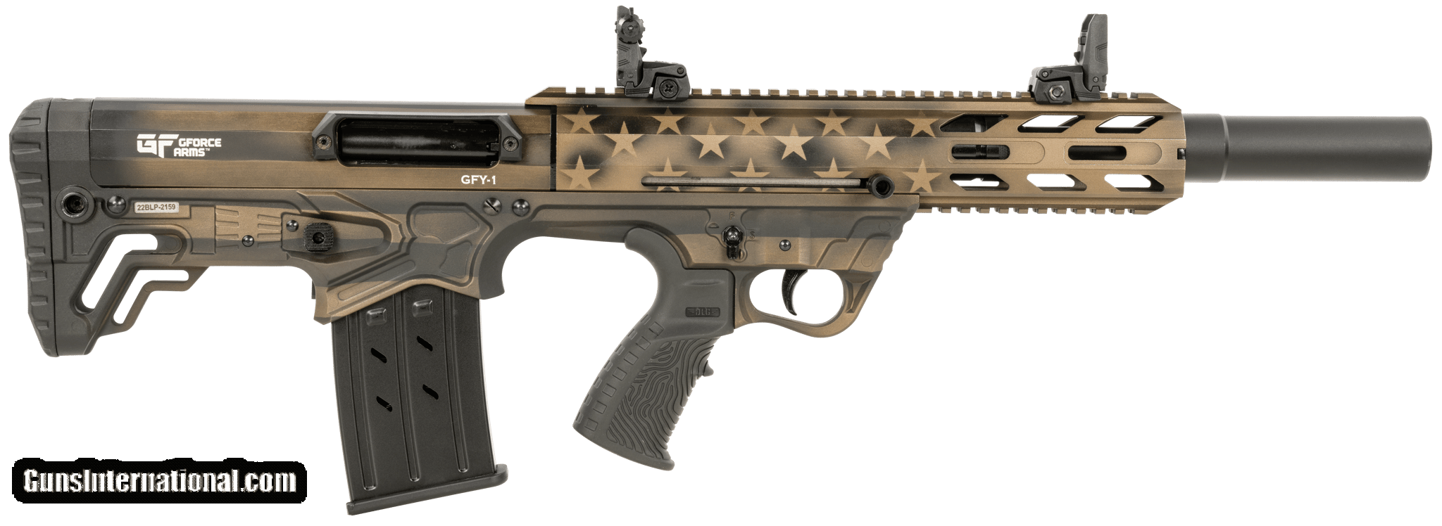 Description: Guns Listing ID: 276204 The GFY-1 is a short and handy Shotgun in the classic bullpup configuration with the action and magazine behind the trigger. Bullpup shotguns accommodate a longer barrel without adding unnecessary length, and allow you to hold the weapon closer to your body. The GFY-1 is just 28.5\" long, making it ideal for the narrow corridors of home defense and tactical use. The GFY-1 comes standard with flip-up sights, top and bottom Picatinny rails for optics and accessories, and a Mobil Benelli-style MOD choke. The Shotgun is gas operated and compatible with AR-12 pattern mags and drums so you have years of aftermarket support. Burnt Bronze American Flag. Manufacturer: GFORCE ARMS Model: GFY-1 Condition: new Barrels: 18.5" BARREL Action: SEMI AUTOMATIC Gauge: 12 GA Finish: BRONZE FLAG Weight: 7.7 lbs. Price: $399.99 Contact Seller |