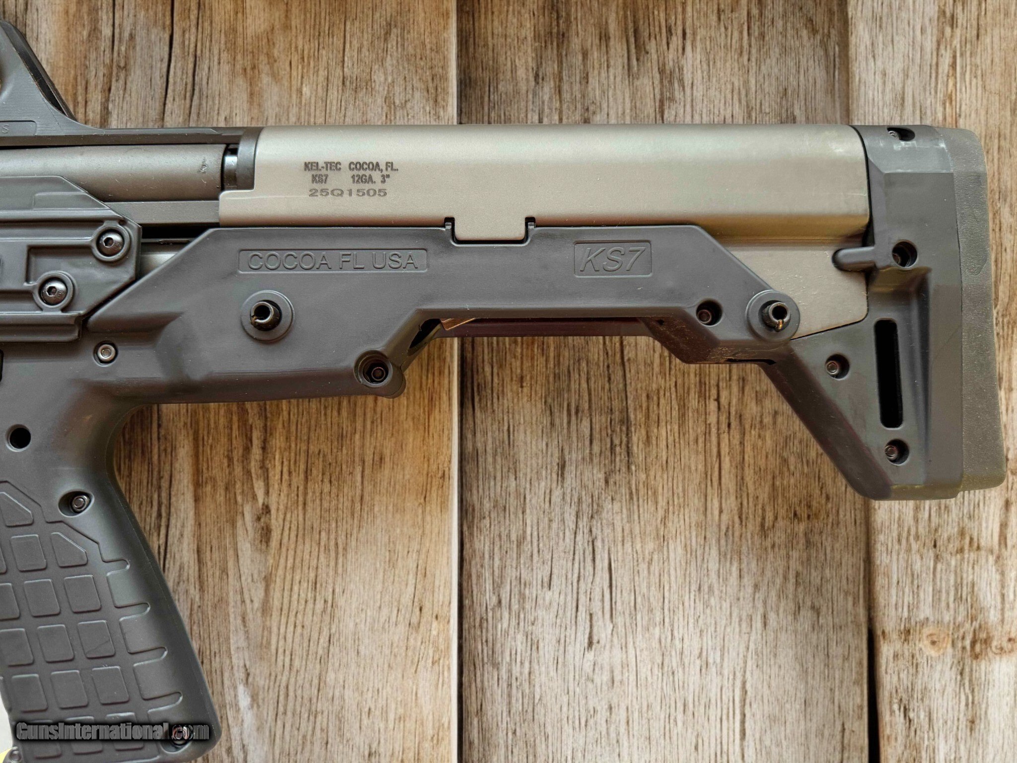 Description: The Kel-Tec KS7 is a compact, bullpup-style 12-gauge pump-action shotgun engineered for simplicity, balance, and maneuverability. This Gen 1 KS7, manufactured in 2025, features an 18.5-inch barrel housed in a streamlined bullpup configuration, allowing it to maintain a short overall length without sacrificing full-power 12-gauge capability. Its lightweight polymer construction helps reduce overall weight, making it easy to handle in tight spaces. Designed with practicality in mind, the KS7 uses a bottom-ejecting system that is fully ambidextrous and minimizes debris exposure. The carry handle situated on the top of the firearms allows for ease of transport, while the minimalist controls keep operation straightforward and reliable. **add 3% for all credit cards **shipping cost is actual shipping costs plus insurance **shipping must be to a licensed FFL Shotgun Gauge: 12 Gauge Manufacturer: Kel-Tec Model: KS7 Serial Number: 25Q1505 Barrel Length: 18.5 Chambers: 2 3/4" , 3 Condition: New Metal Condition: New Bore Condition: New Action: Pump Action Triggers: 1 Finish: Parkerized Manufacture Date: 2025 Extras: Carry Handle Item Location: New Hudson, MI Price: $559.00 Contact Seller |