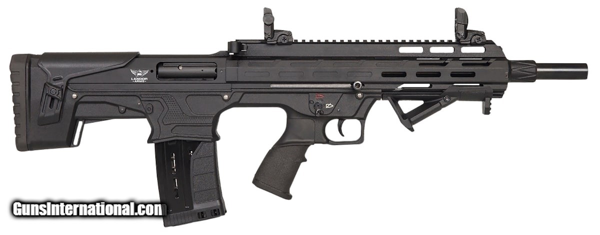 Description: Guns Listing ID: 220095 The Landor BPX902-G2 Bullpup semi-auto shotgun is gas operated and features a 18.50\" barrel with 3 chokes. It has a black fixed bullpup stock, folding front and rear sights and a sling swivel. The Gen 2 includes an AR style charging tab along with a side-mounted charging handle. Includes two 5rd and one 2rd magazines. SOLD Manufacturer: LANDOR ARMS Model: BPX 902-G2 Condition: new Barrels: 18.5" BARREL Gauge Info: 12 GA Finish: BLACK |