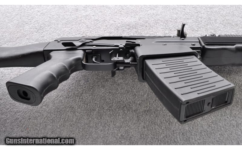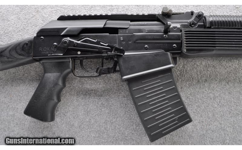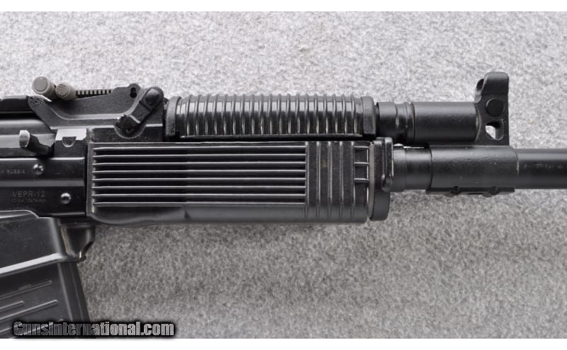 Description: The Molot Vepr-12 is a semi-auto shotgun no longer imported from Russia. Its design is based on the RPK standard rifle. 12 Gauge SOLD Chambers: 12 Gauge 3" chamber in five round detachable magazines Metal Condition: Metal appears in very good condition. Some slight operation marks on the bolt. Wood Condition: The buttstock is wood laminate and shows a few field marks. The left side sling swivel is missing Bore Condition: Bright Barrels: 22 Triggers: Two stage Stock Dimensions: 12 1/2" LOP Fore End: Ribbed polymer with upper handguard and sling slot Butt Pad: Wood butt plate Weight: 8 Lbs. 4 Oz. Sights: "Protected post front, Tangent leaf rear Chokes: External thread barrel choke system Item Location: Grand Junction, CO |