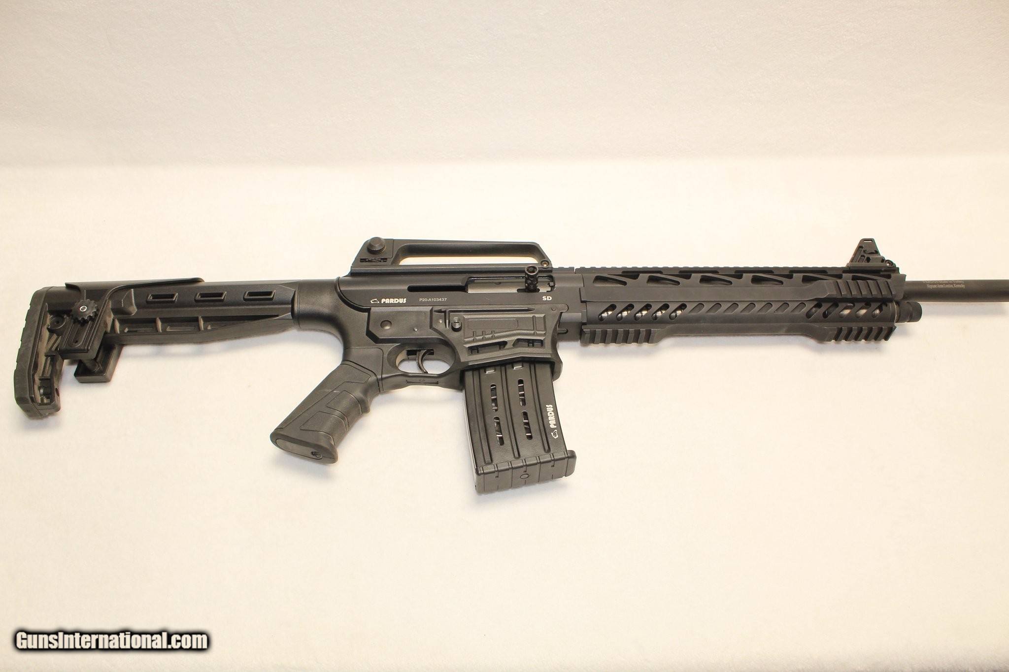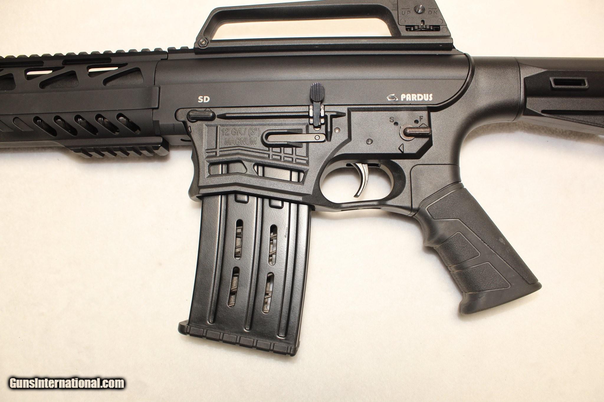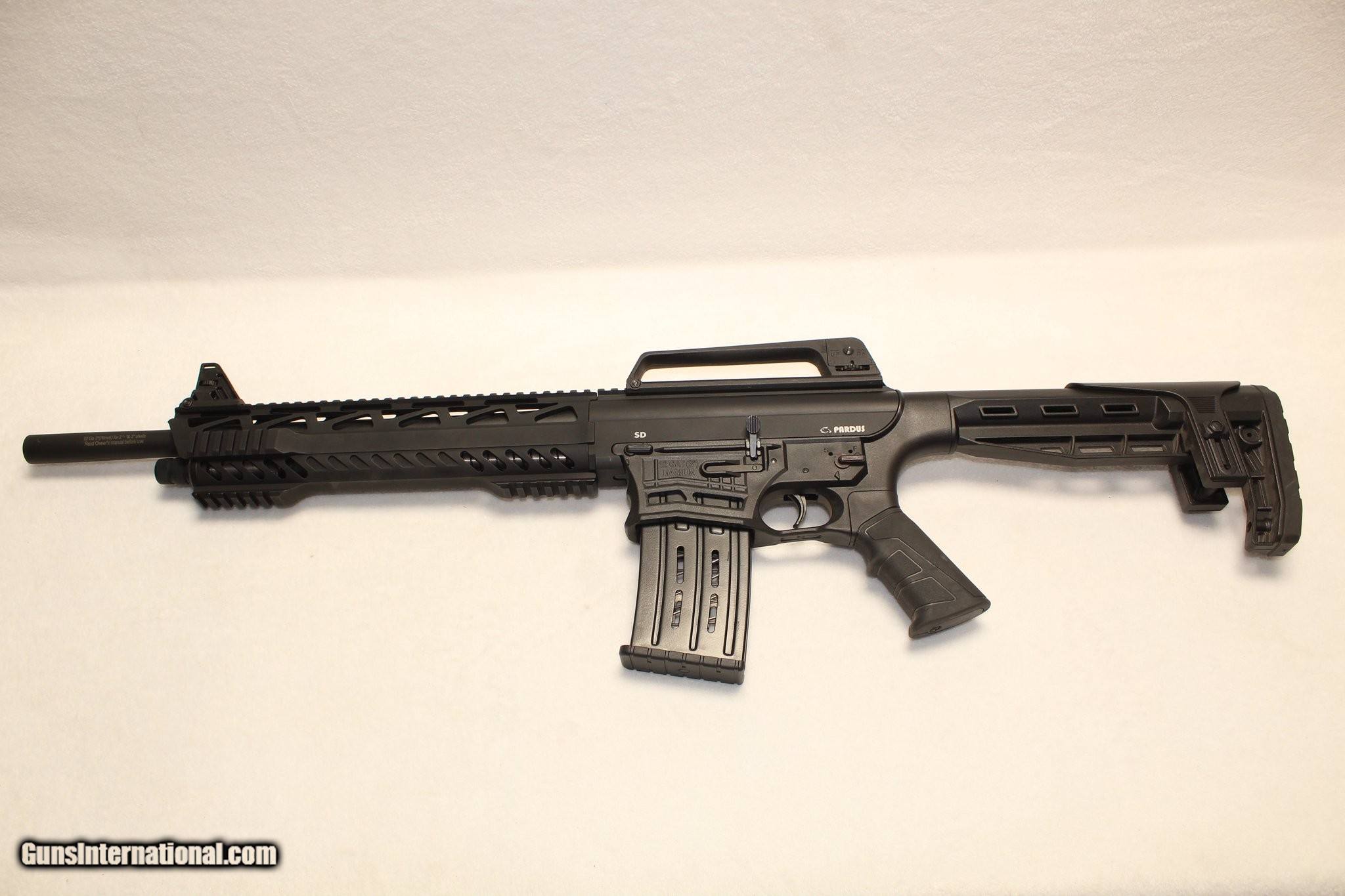 Description: Guns Listing ID: 601615 Description: Pardus SD Semi Auto Tactical 12ga shotgun. This shotgun features a Black finish, a barrel length of 18.5 inches with a 3in chamber, a carry handle with a rear sight & an adjustable front, a synthetic stock with an adjustable comb, and it comes with a 5 round magazine. These shotguns feature familiar AR-15 style controls with features to answer the requirements of personal defense, defense and law enforcement authorities. 5-round box magazine, easy targeting sight systems, multi purpose weaver rails, and adjustable stock comb height provide many tactical advantages to the defense and law enforcement staff. Manufacturer/Importer: Pardus/ Neptune Arms London Model: SD Type: Shotgun Caliber: 12GA Action: Semi Capacity: 5rnd Barrel Length: 18in Frame Material: polymer Sights: iron sights Manufacturer: PARDUS Model: SD Condition: Used - Non-Certified Barrels: 18" BARREL Action: SEMI AUTOMATIC Gauge: 12 GA Finish: black Price: $399.99 Contact Seller |