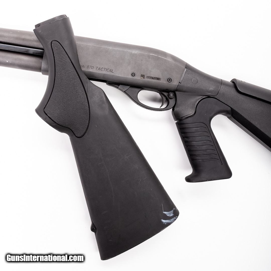 Description: Guns Listing ID: 399514 The Remington 870 shotgun is one of the most heavily used and widely produced firearms on the market. Hunters, law enforcement agencies, the U.S. military, and countless private citizens have all relied on this shotgun for different applications. This specific model is a Remington 870 Tactical with an 18.5\" barrel. It‚‚s the perfect choice for home-defense, duty use, and personal protection more broadly. 12 gauge 2 3/4 - 3\" smooth bore. The stock is a Mesa Tactical Urbino, original included SOLD Manufacturer: REMINGTON Model: 870 TACTICAL Condition: Used - Certified Barrels: 18.5 BARREL Gauge Info: 12 GA Finish: BLACK |