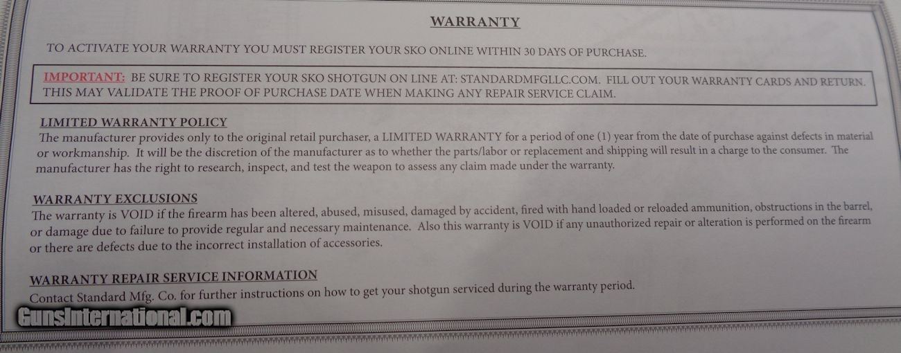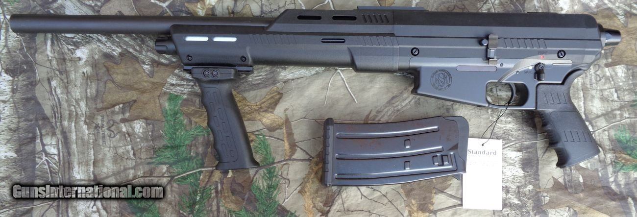 Description: *** SOLD *** SOLD *** "New in Box" Standard Mnufacturing SKO-12 Shorty personal defense 12 gauge (serial # SKO-04586) semi automatic shotgun, 18 1/2” barrel with screw in choke that qualifies the SKO-12 Shorty as a shotgun that has a 26 1/2” overall length and is the defintion of "bad to the bone" in personal defense. The ultimate "go ahead-make my day!" to the bad guy in protection of your loved ones, your home or yourself. Similar to the pump shotguns currently on the market, like the Remington Tac-14 and Mosserg Shockwave, but much faster and with ease of operation being semi-auto. Competes directly with the Remington V3 Tac13, but at less than 1/3 the price of the Remington Tac 13. Quick change of magazines that come in 2,5,and 10 round capacity, bolt open on last shot for safety and rapid reloading. Most reliable gas operation system available with smooth operation, AR style controls, safety on the left and right side. Made in the USA with a precision machined 7075 aircraft grade aluminum receiver, muzzle threaded to accept a wide variety of choke tubes and door breechers. Hard anodized finish on upper and lower receiver. Comes with one 5 round magazine, plus 1 in the chamber, about 7 lb overall weight, two polymer pistol grips for ultimate control when firing, much easier to control compared to the Remington V3 Tac 13. The forward tactical pistol grip can be removed though, if desired, possibly for a light mount. The shotgun pictured is the one you will receive, not generic pictures from the factoy photos. $50 S&H to most of the lower 48. Eight far west states at $60 S&H. Post office money orders preferred for payment, with checks taking 2 or 3 days to clear. Factory warranty. Lay-a-way is available! SOLD Shotgun Gauge: 12 Gauge Manufacturer: Standard Manufacturing Model: SKO-12 Shorty Serial Number: SKO-04586 Barrel Length: 18 1/2 Chambers: 2 3/4" and 3 inch Condition: factory new Metal Condition: factoy new Wood Condition: factory new Bore Condition: factory new Barrel Type: threaded for choke tubes Action: semi-auto Stock: two pistol grips Manufacture Date: 2021 Extras: low price for semi-auto |