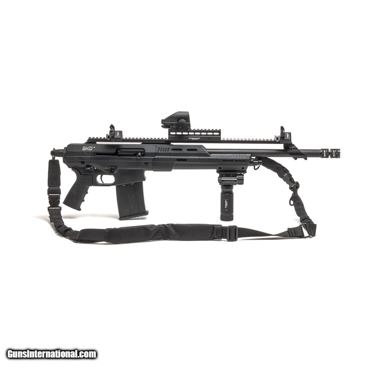 Description: Standard Manufacturing’s SKO Shorty, proudly made in the USA, offers superior firepower due to its fast semi-auto action and quick interchange magazines. It possesses the most reliable gas operated system available with smooth and flawless operation across a variety of loads. And even has bolt hold open after last round. Machined from 7075 aircraft grade aluminum with the latest technology in CNC machining, then Mil-Spec hard anodized, the SKO Shorty is both lightweight and durable. Internal components are salt bath nitride coated for optimum lubricity. Notable features include an ambidextrous safety, familiar AR-style controls for an easy transition to this platform, and a threaded muzzle to accept a variety of choke tubes, door breachers, and accessories. The length is over 26” and has an 18 5/8” barrel made from 4140 steel that accepts both 2 ¾” and 3” shot shells; which can be loaded in the included 5 round magazine with optional 2, 5, or 10 round magazines available. Large 22” picatinny top rail which provides ample room for optics, lasers, and illumination devices. **PLEASE NOTE: This item MUST be shipped to Licensed Firearms Dealer. We will contact you for a copy of the FFL that you would like to use to transfer this firearm. ** Specs: Caliber: 12 Gauge Overall Length: 28 ¾” Weight (w/out mag): 7.14 lbs. Barrel: 18 7/8”, chambered for 2 ¾” and 3” shells Chokes: Tru-Choke thread pattern Capacity: 5 round magazine; optional 2, 5, 10 round mags available Action: Gas operated semi-automatic Material: Receivers machined from aircraft grade 7075 aluminum; Mil-Spec hard anodized Controls: Ambidextrous Safety, AR-style mag and bolt release Grip: Polymer; accepts most AR-style grips Forend: Composite material with slots for MOE and bolt on rails; INCLUDES forward vertical grip The Works Package includes: Reflex Sight CXHD113 Aluminum Tactical Grip with Red Laser & Flashlight Flip up Iron AR-15 Style Backup Sights 1” High 13 Slot Riser 45° Offset Sight Mounts 2 Point Black Tactical Sling 1” Swivel Set Front Mounting Rail with Screw Door Buster Door Breaching Chokes (DP1990 Stiletto Chokes available for an additional $75) * The accessories do not come assembled onto the SKO Shorty. We offer assembly at an additional charge of $175.00 * THE SKO SHORTY IS UNAVAILABLE TO PURCHASE IN THE STATES OF NEW YORK AND CALIFORNIA. $25.00 shipping $1,100 SOLD |