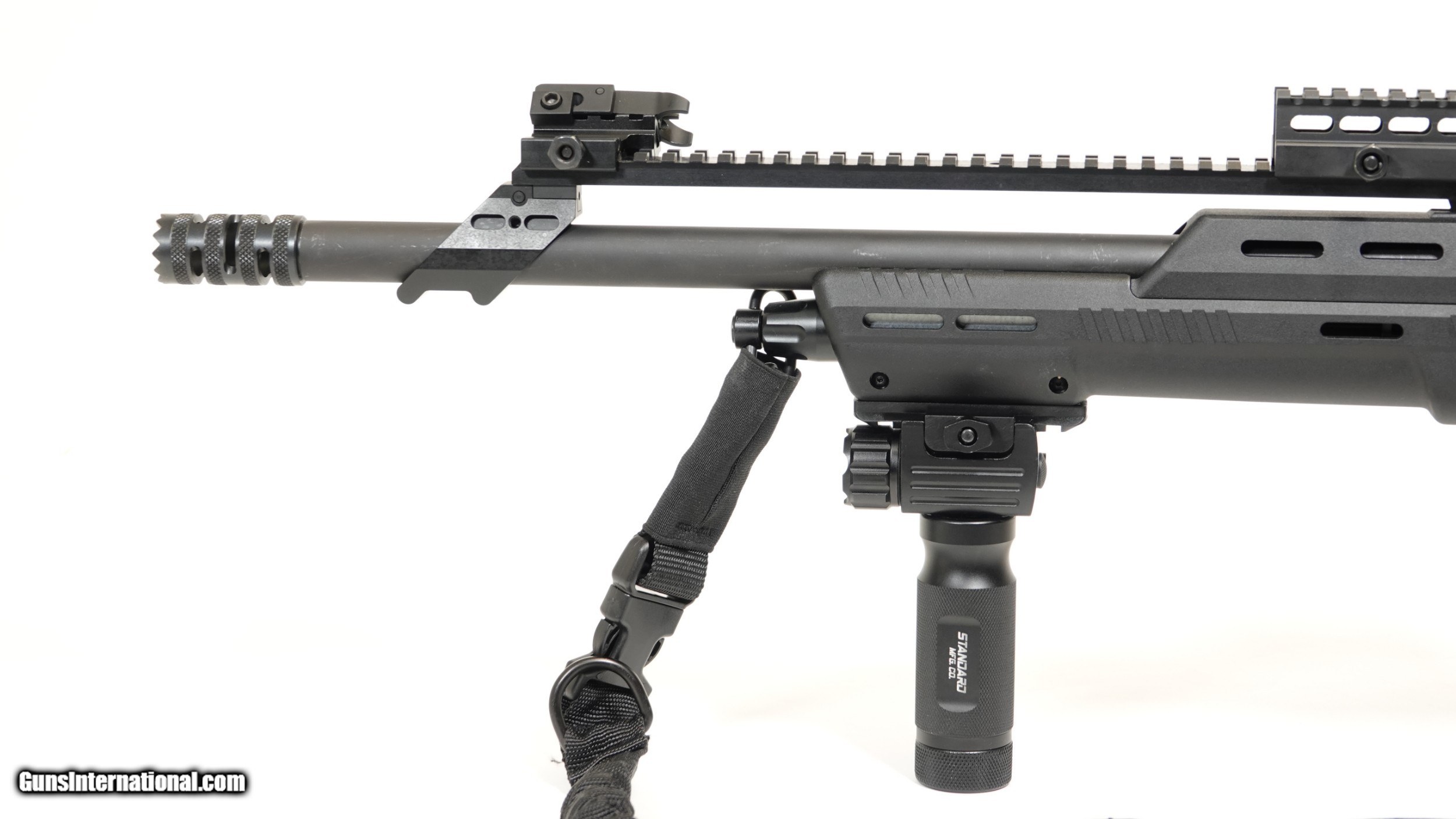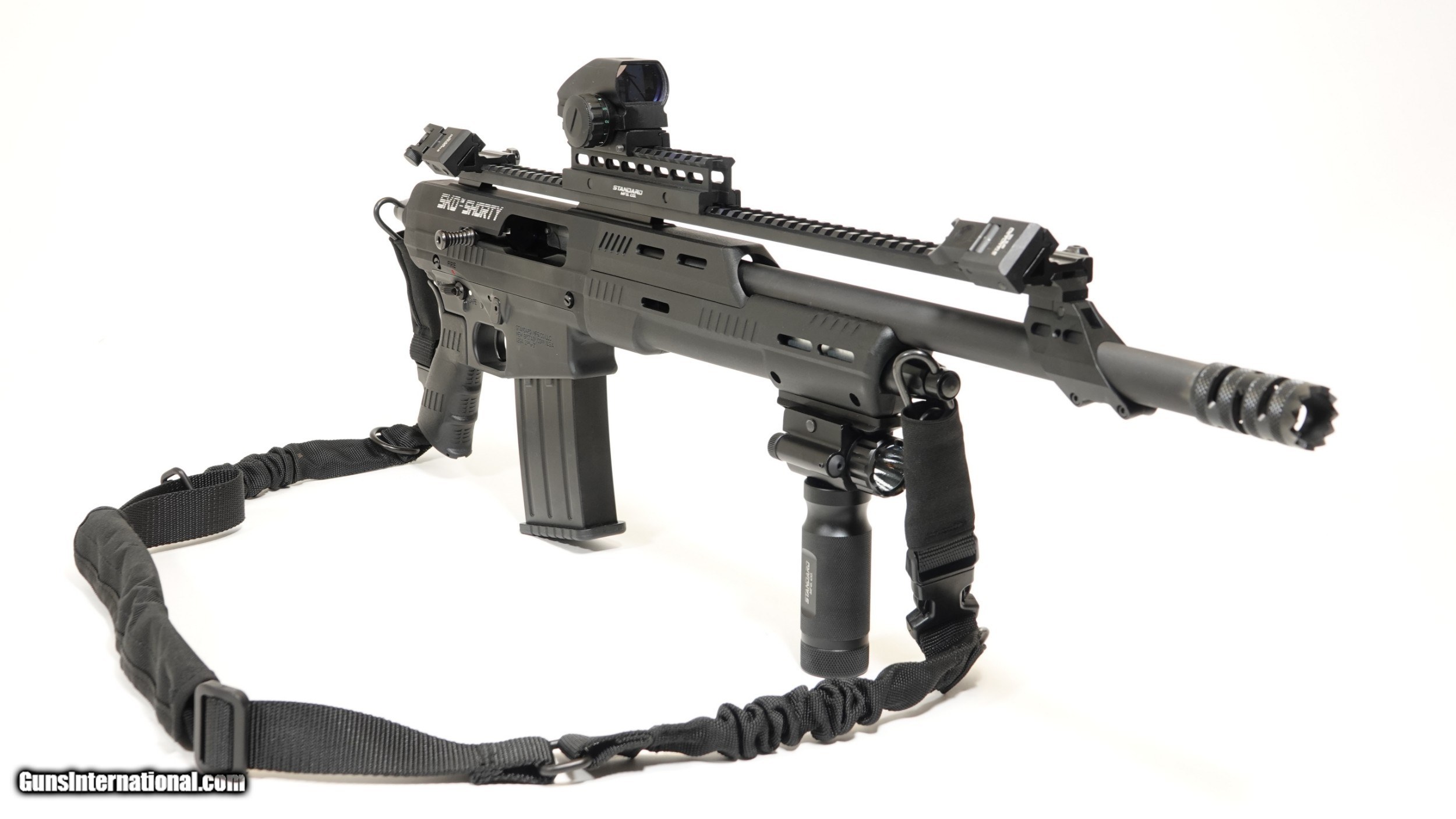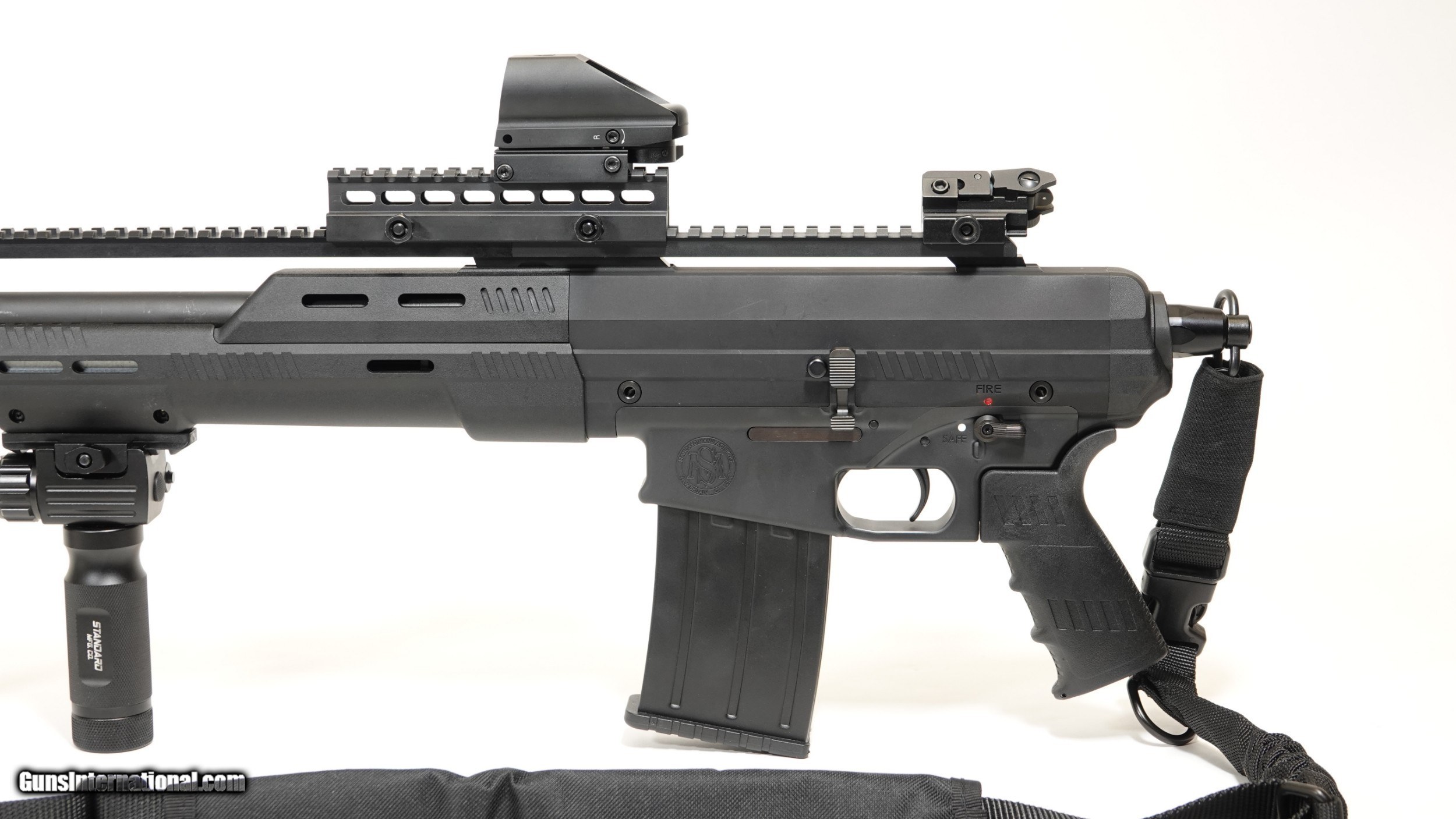 Description: Standard Manufacturing’s SKO Shorty, proudly made in the USA, offers superior firepower due to its fast semi-auto action and quick interchange magazines. It possesses the most reliable gas-operated system available with smooth and flawless operation across a variety of loads. And even has a bolt hold open after last round. Machined from 7075 aircraft-grade aluminum with the latest technology in CNC machining, then Mil-Spec hard anodized, the SKO Shorty is both lightweight and durable. Internal components are salt bath nitride coated for optimum lubricity. Notable features include an ambidextrous safety, familiar AR-style controls for an easy transition to this platform, and a threaded muzzle to accept a variety of choke tubes, door breachers, and accessories. The length is over 26” and has an 18 5/8” barrel made from 4140 steel that accepts both 2 ¾” and 3” shotshells; which can be loaded in the included 5 round magazine with optional 2, 5, or 10 round magazines available. Large 22” picatinny top rail which provides ample room for optics, lasers, and illumination devices. **PLEASE NOTE: This item MUST be shipped to Licensed Firearms Dealer. We will contact you for a copy of the FFL that you would like to use to transfer this firearm. ** Specs: Caliber: 12 Gauge Overall Length: 28 ¾” Weight (w/out mag): 7.14 lbs. Barrel: 18 7/8”, chambered for 2 ¾” and 3” shells Chokes: Tru-Choke thread pattern Capacity: 5 round magazine; optional 2, 5, 10 round mags available Action: Gas operated semi-automatic Material: Receivers machined from aircraft grade 7075 aluminum; Mil-Spec hard anodized Controls: Ambidextrous Safety, AR-style mag and bolt release Grip: Polymer; accepts most AR-style grips Forend: Composite material with slots for MOE and bolt on rails; INCLUDES forward vertical grip The Works Package includes: Reflex Sight CXHD113 Aluminum Tactical Grip with Red Laser & Flashlight Flip up Iron AR-15 Style Backup Sights 1” High 13 Slot Riser 45° Offset Sight Mounts 2 Point Black Tactical Sling 1” Swivel Set Front Mounting Rail with Screw Door Buster Door Breaching Chokes (DP1990 Stiletto Chokes available for an additional $75) * The accessories do not come assembled onto the SKO Shorty. We offer assembly at an additional charge of $175.00 * THE SKO SHORTY IS UNAVAILABLE TO PURCHASE IN THE STATES OF NEW YORK AND CALIFORNIA. $25.00 shipping $1,100 SOLD |