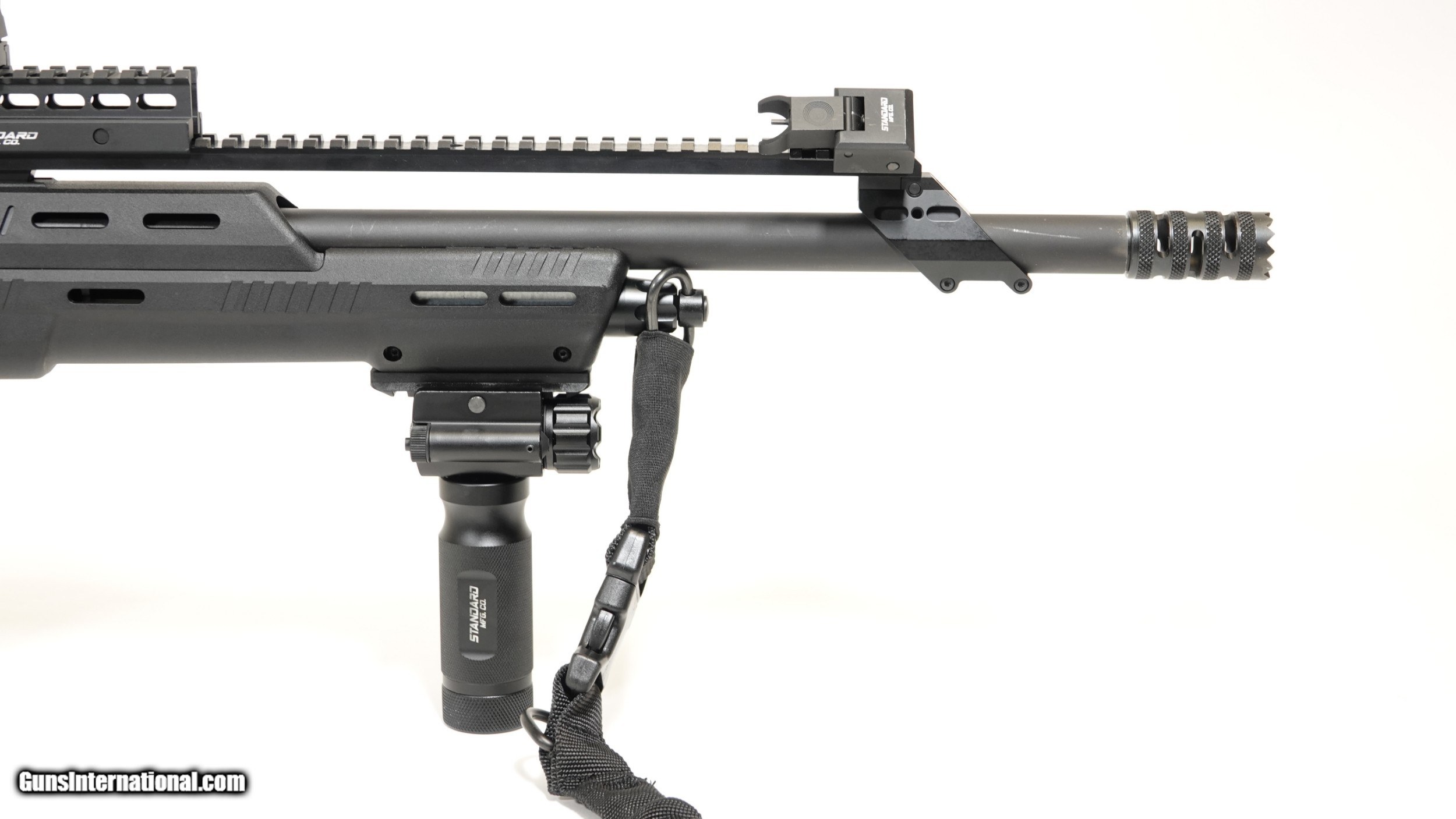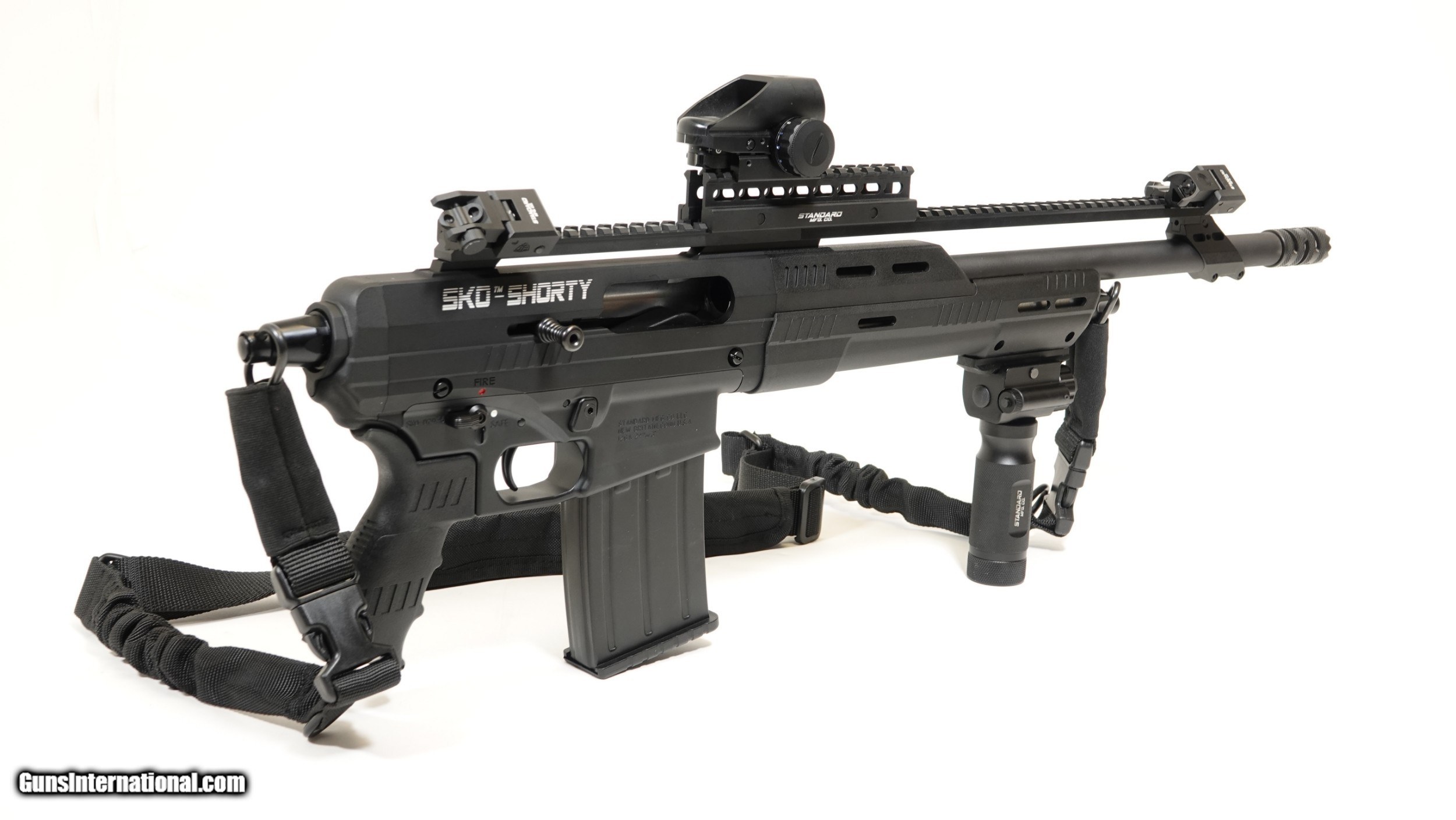 Description: Standard Manufacturing’s SKO Shorty, proudly made in the USA, offers superior firepower due to its fast semi-auto action and quick interchange magazines. It possesses the most reliable gas-operated system available with smooth and flawless operation across a variety of loads. And even has a bolt hold open after last round. Machined from 7075 aircraft-grade aluminum with the latest technology in CNC machining, then Mil-Spec hard anodized, the SKO Shorty is both lightweight and durable. Internal components are salt bath nitride coated for optimum lubricity. Notable features include an ambidextrous safety, familiar AR-style controls for an easy transition to this platform, and a threaded muzzle to accept a variety of choke tubes, door breachers, and accessories. The length is over 26” and has an 18 5/8” barrel made from 4140 steel that accepts both 2 ¾” and 3” shotshells; which can be loaded in the included 5 round magazine with optional 2, 5, or 10 round magazines available. Large 22” picatinny top rail which provides ample room for optics, lasers, and illumination devices. **PLEASE NOTE: This item MUST be shipped to Licensed Firearms Dealer. We will contact you for a copy of the FFL that you would like to use to transfer this firearm. ** Specs: Caliber: 12 Gauge Overall Length: 28 ¾” Weight (w/out mag): 7.14 lbs. Barrel: 18 7/8”, chambered for 2 ¾” and 3” shells Chokes: Tru-Choke thread pattern Capacity: 5 round magazine; optional 2, 5, 10 round mags available Action: Gas operated semi-automatic Material: Receivers machined from aircraft grade 7075 aluminum; Mil-Spec hard anodized Controls: Ambidextrous Safety, AR-style mag and bolt release Grip: Polymer; accepts most AR-style grips Forend: Composite material with slots for MOE and bolt on rails; INCLUDES forward vertical grip The Works Package includes: Reflex Sight CXHD113 Aluminum Tactical Grip with Red Laser & Flashlight Flip up Iron AR-15 Style Backup Sights 1” High 13 Slot Riser 45° Offset Sight Mounts 2 Point Black Tactical Sling 1” Swivel Set Front Mounting Rail with Screw Door Buster Door Breaching Chokes (DP1990 Stiletto Chokes available for an additional $75) * The accessories do not come assembled onto the SKO Shorty. We offer assembly at an additional charge of $175.00 * THE SKO SHORTY IS UNAVAILABLE TO PURCHASE IN THE STATES OF NEW YORK AND CALIFORNIA. $25.00 shipping $1,100 SOLD |