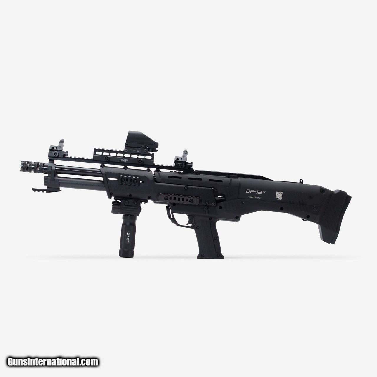 Description: Standard Manufacturing Company has raised the bar with this extraordinary shotgun that truly is one of kind that was manufactured in a state of the art facility. The innovative design and guaranteed functionality is well ahead of its time. Extreme detail has been a priority from conception through the production of these double barrel repeater shotguns. The first of its kind, a premium defense, double barreled, pump, 12 gauge shotgun that quickly fires 16 rounds. Designed for the most discerning shooters who demand extreme firepower and require consistent reliability. The stock has a QR code you can scan with your smart phone or tablet to down load the manual and other information. Please be sure and fill out the warranty card and send it to Standard Manufacturing. The spreader choke tubes are designed to shoot a devastating pattern at 25 yards. The choke tubes have Tru-Choke thread patterns. Some pictures show door breachers, these are sold separately. The DP-12 provides accessory rails and slots that allow you to customize it with your own accessories. Ergonomically designed to balance the weight of a loaded gun for quick and efficient handling with minimal recoil. Specs: Caliber: 12 Gauge Overall Length: 29.5" Weight (unloaded): 9 pounds 12 ounces Barrels: 2 x 18 7/8”, chambered for 2 ¾” or 3" shells Chokes: Both barrels include spreader choke tubes with Tru-Choke thread pattern Capacity: 14 rounds in magazine tubes + 2 in chambers - 16 total with indicator windows Action: pump action with two shots from single trigger, inline shell feeding Material: Machined from aircraft grade 7075 aluminum, Thermal coated receiver Controls: Ambidextrous safety, ambidextrous pump slide release Grip: Co-Molded non-slip rubber pistol grip, composite front vertical grip Stock: Synthetic stock Forend: Composite material with slots for MOE Rails Recoil Pad: Rubber with dual spring shock absorbing recoil mechanism Sling Points: Front sling attachment, sling swivel attachment on stock The Works Package #1 Includes: DP2001: Reflex Sight CXHD113 DP2004: Aluminum Tactical Grip with Red Laser & Flashlight DP2010: Flip up Iron AR-15 Style Backup Sights DP2011: 45° Offset Sight Mounts (2 required) DP2013: 1” High 8 Slot Riser DP2014: 4 piece MOE Rail Set DP2020: 2 Point Black Tactical Sling DP2024: 1” Swivel Set DP0209: Front Mounting Rail with Screw DP1999: Door Buster Door Breaching Chokes (DP1990 Stiletto Chokes available for an additional $75) Two Picatinny rails for accessories; seven slot rail on the bottom by the foregrip and a 13.75" 34 slot rail on top Choke tube wrench Heavy duty lock Instruction booklet and warranty card