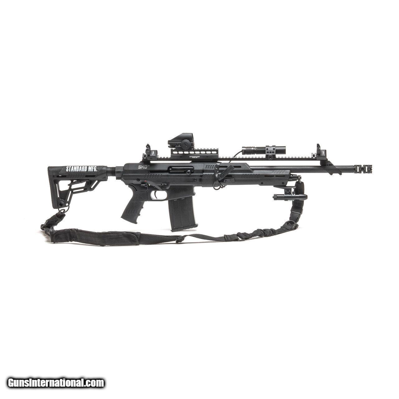 Description: Standard Manufacturing’s SKO shotgun, proudly made in the USA, offers superior firepower due to its fast semi-auto action and quick interchange magazines. It possesses the most reliable gas operated system available with smooth and flawless operation across a variety of loads. Machined from 7075 aircraft grade aluminum with the latest technology in CNC machining, then Mil-Spec hard anodized, the SKO Shorty is both lightweight and durable. Internal components are salt bath nitride coated for optimum lubricity. Notable features include an ambidextrous safety, familiar AR-style controls for an easy transition to this platform, and a threaded muzzle to accept a variety of choke tubes, door breachers, and accessories. The length is over 26” and has an 18 5/8” barrel made from 4140 steel that accepts both 2 ¾” and 3” shot shells; which can be loaded in the included 5 round magazine with optional 2, 5, or 10 round magazines available. Large 22” picatinny top rail which provides ample room for optics, lasers, and illumination devices. **PLEASE NOTE: This item MUST be shipped to Licensed Firearms Dealer. We will contact you for a copy of the FFL that you would like to use to transfer this firearm. ** Specs: Caliber: 12 Gauge Overall Length: 38” Weight (w/out mag): 7 lbs. 10 oz. Barrel: 18 7/8”, chambered for 2 ¾” and 3” shells Chokes: Tru-Choke thread pattern Capacity: 5 round magazine; optional 2, 5, 10 round mags available Action: Gas operated semi-automatic Material: Receivers machined from aircraft grade 7075 aluminum; Mil-Spec hard anodized Controls: Ambidextrous Safety, AR-style mag and bolt release Grip: Polymer; accepts most AR-style grips Stock: 6-position buttstock; accepts any Mil-Spec buttstock Forend: Composite material with slots for MOE and bolt on rails The Works Package includes: Reflex Sight CXHD113 Aluminum Tactical Grip with Red Laser & Flashlight Flip up Iron AR-15 Style Backup Sights 1” High 13 Slot Riser 4 piece MOE Rail Set 2 Point Black Tactical Sling 1” Swivel Set Front Mounting Rail with Screw Door Buster Door Breaching Chokes (DP1990 Stiletto Chokes available for an additional $75) $1500 * The accessories do not come assembled onto the SKO. We offer assembly at an additional charge of $175.00 * THE SKO IS UNAVAILABLE TO PURCHASE IN THE STATES OF NEW YORK, CALIFORNIA AND CONNECTICUT. $25 shipping SOLD |
