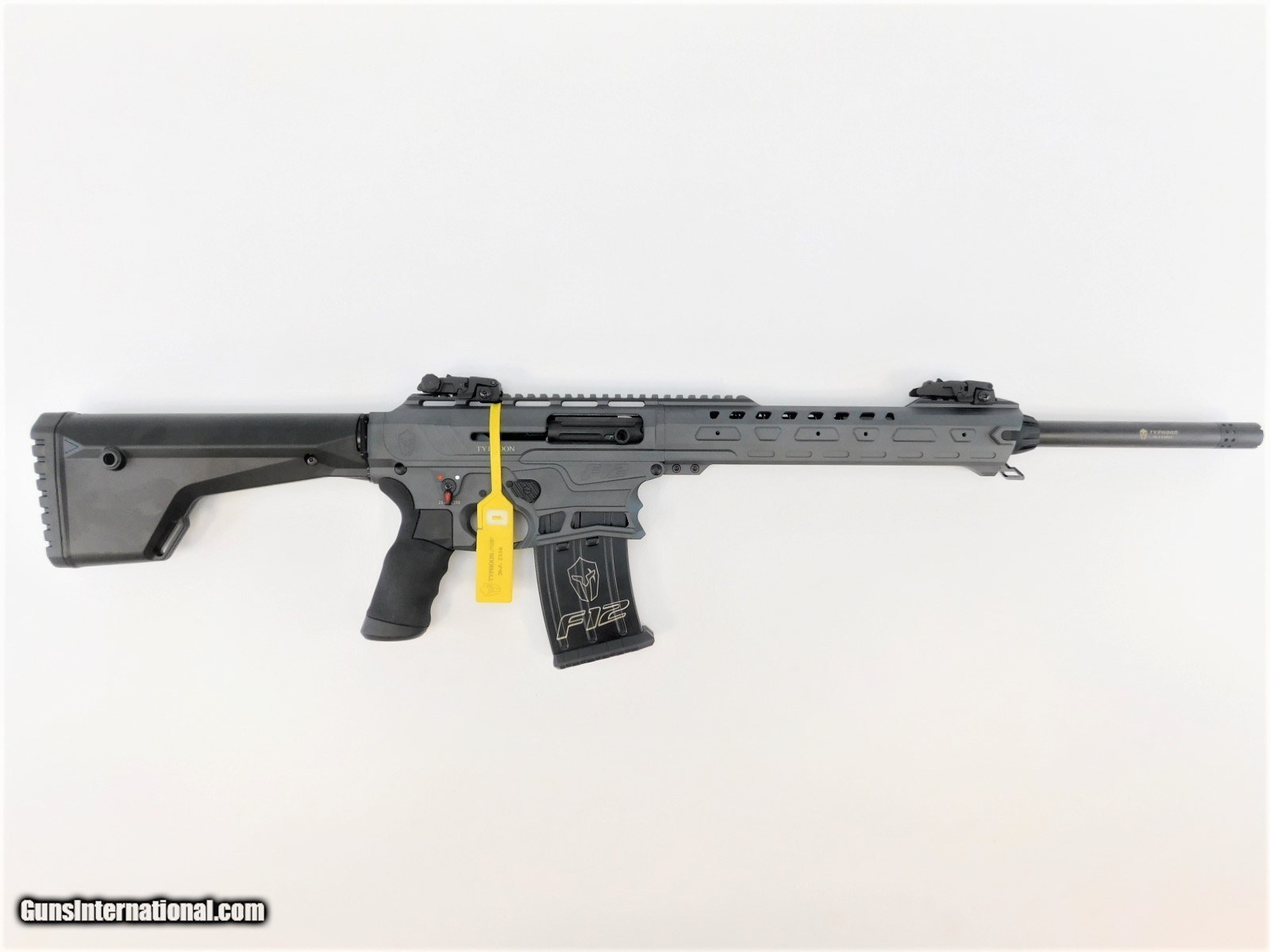 Description: BRAND NEW IN THE BOX AND READY TO SHIP! BUY IT NOW!! Manufacturer: Typhoon Defense Model: F12 Grey Classic SKU: F120501C Caliber: 12 Gauge - 3" Chamber System: Gas Operated Semi-Automatic Capacity: (3) 5 Round Magazines Barrel Length: 18.5" 4140 Full Steel Smooth Chrome Lined, Heat Shield Color: Sniper Grey Cerakote Material: T6 7075 Hardened Aluminum on Upper and Lower Receiver Forend: T7 Series Aluminum Chokes: Benelli Mobile Choke Threads, 3 Chokes, choke wrench and case included (#1, #3 modified, #5 Skeet) Stock: Fixed Pistol Grip: Rubber Over-Molded Hand Guard: (Short) Sport with Picatinny Rail on Top - MLOK on Bottom Side of Hand Guard Charging Handle: Advanced Oversized Sights: Polymer Flip-Up Overall Length: 38" Weight: 8.2 lbs All new Typhoon Defense F12 Grey Classic: The Typhoon F12 is hands down the best magazine shotgun ever made. Years in the making, there is no detail that has been ignored. Built on the AR-15 platform, the F12 has great familiarity with anyone who has used an AR style rifle. The attention to detail in the billet upper and lower receiver is unmatched. With all the different styles, options and accessories offered the F12 is truly customizable to fit your every need. Unlike many other manufacturers we include flip up sights, slings and magazines in the box with the gun making it ready to use right out of the box. Once you get to feel an F12 shotgun in your hands for yourself you will see our craftsmanship and quality are absolutely the best on the market today. We believe in the durability of the F12 and back it up with a no hassle LIFETIME WARRANTY. Additional Features: - Trigger: Advanced Flat Blade Trigger - Sling Mounts: QD inserts in Stock Both Left and Right - Latch Plate: Reversible Sling Mount Latch Plate - Mag Release: Large Textured Button, Ejects Magazine - Saftey: Ambidextrous Saftey Switch - Bolt Release: Large Enhanced Lever - Gas Block: Adjustable for Heavy and Light Loads - Sling: Two Point Bungee Sling KNOW YOUR LOCAL AND STATE LAWS!! ORDERS WILL ONLY BE ACCEPTED FROM US RESIDENTS OF THE LOWER 48 STATES, ALASKA AND HAWAII. OUR FFL CLASS DOES NOT ALLOW FOR THE EXPORT OF FIREARMS, THEREFORE WE CANNOT SHIP OUT OF THE US. IF YOU ARE INTERESTED IN PURCHASING THIS ITEM, PLEASE COMPLETE YOUR ORDER BY REFERRING TO THE "SELLER'S INFORMATION" ABOVE. SOLD |